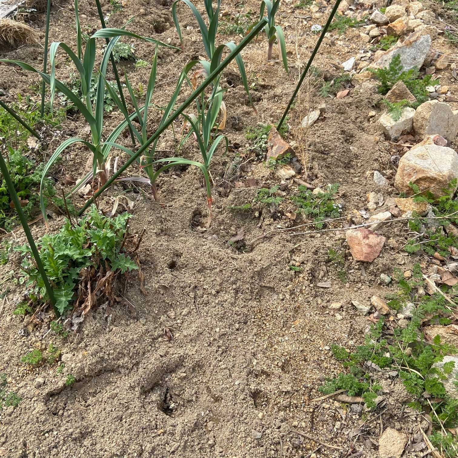ニンニクが水仙などを避けて掘ると聞いてましたが、ホントです😵アリウムは無事