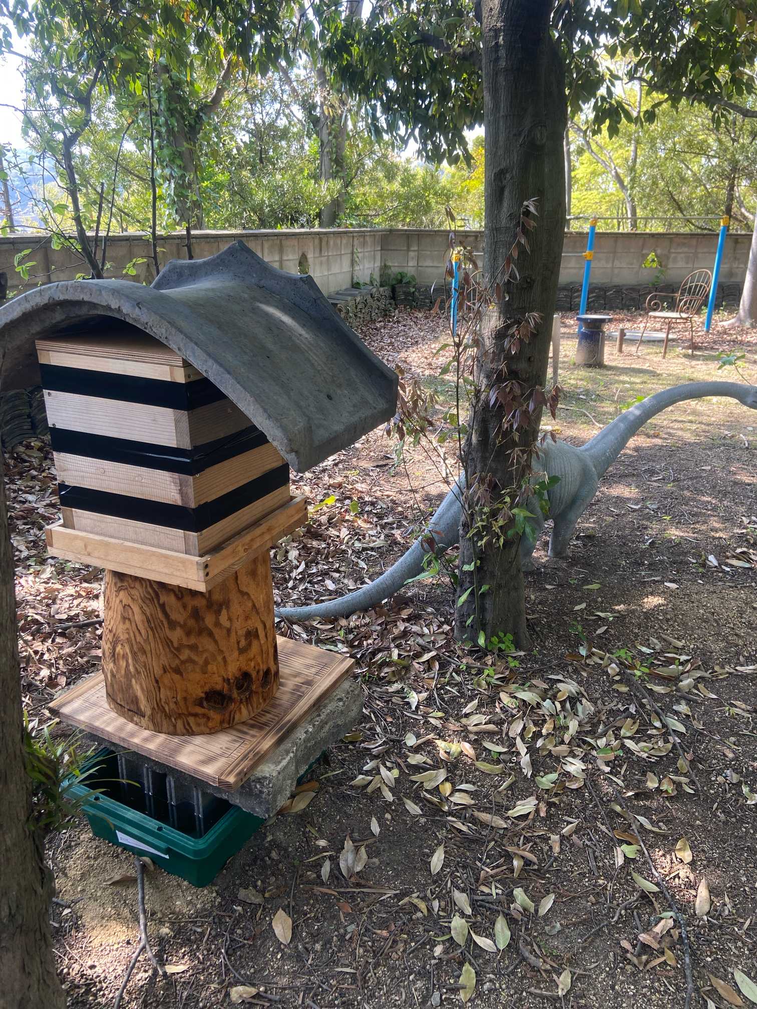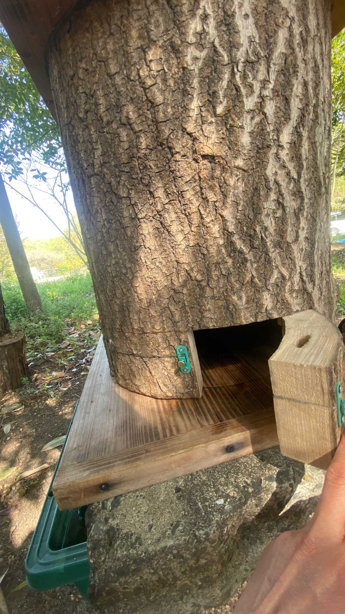 この隙間を🐝が忙しそうに出たり入ったり。近づいて座ると前は沢山出てきたのですが、慣れた?あんまり出てきてくれなくて。