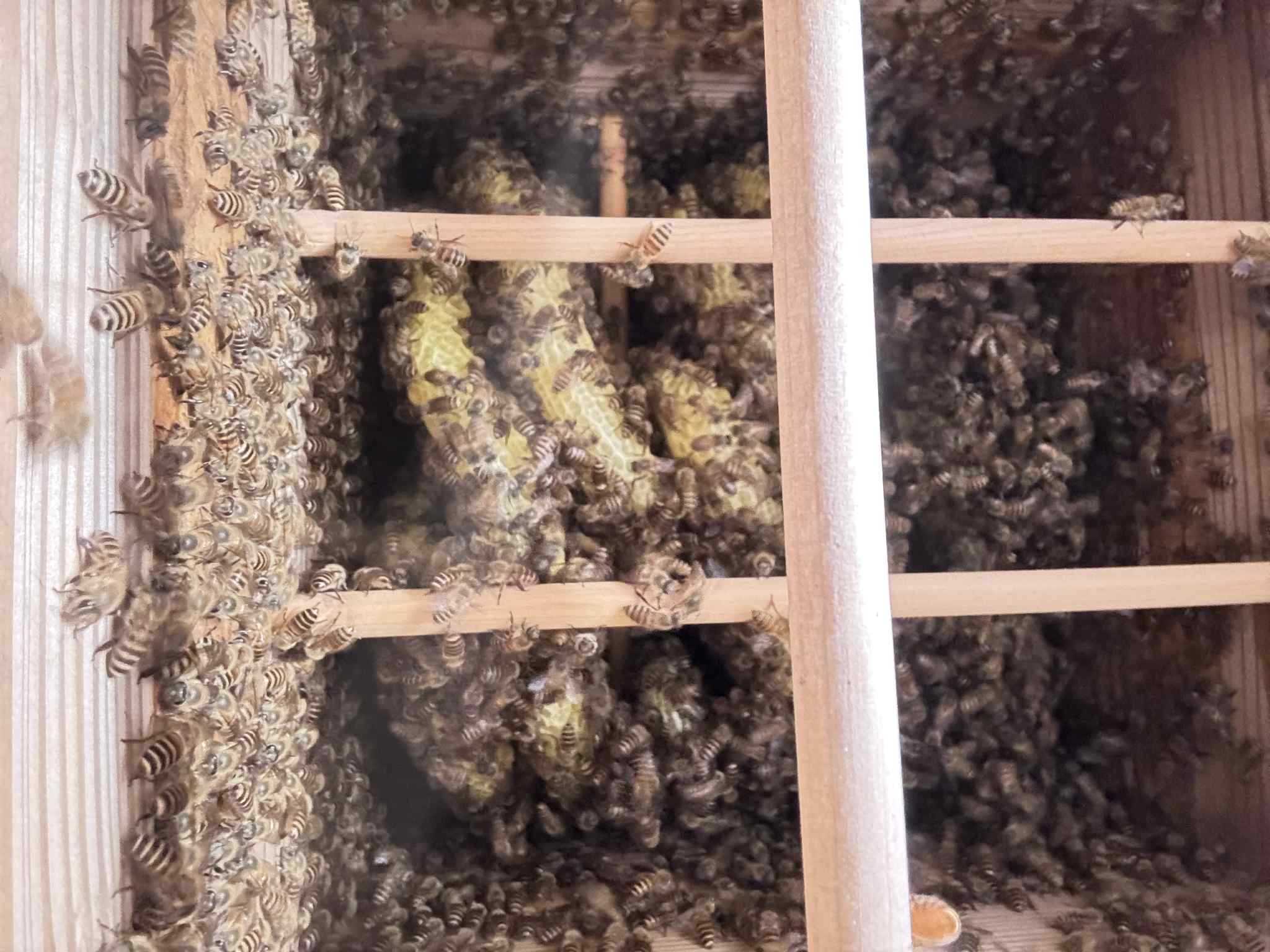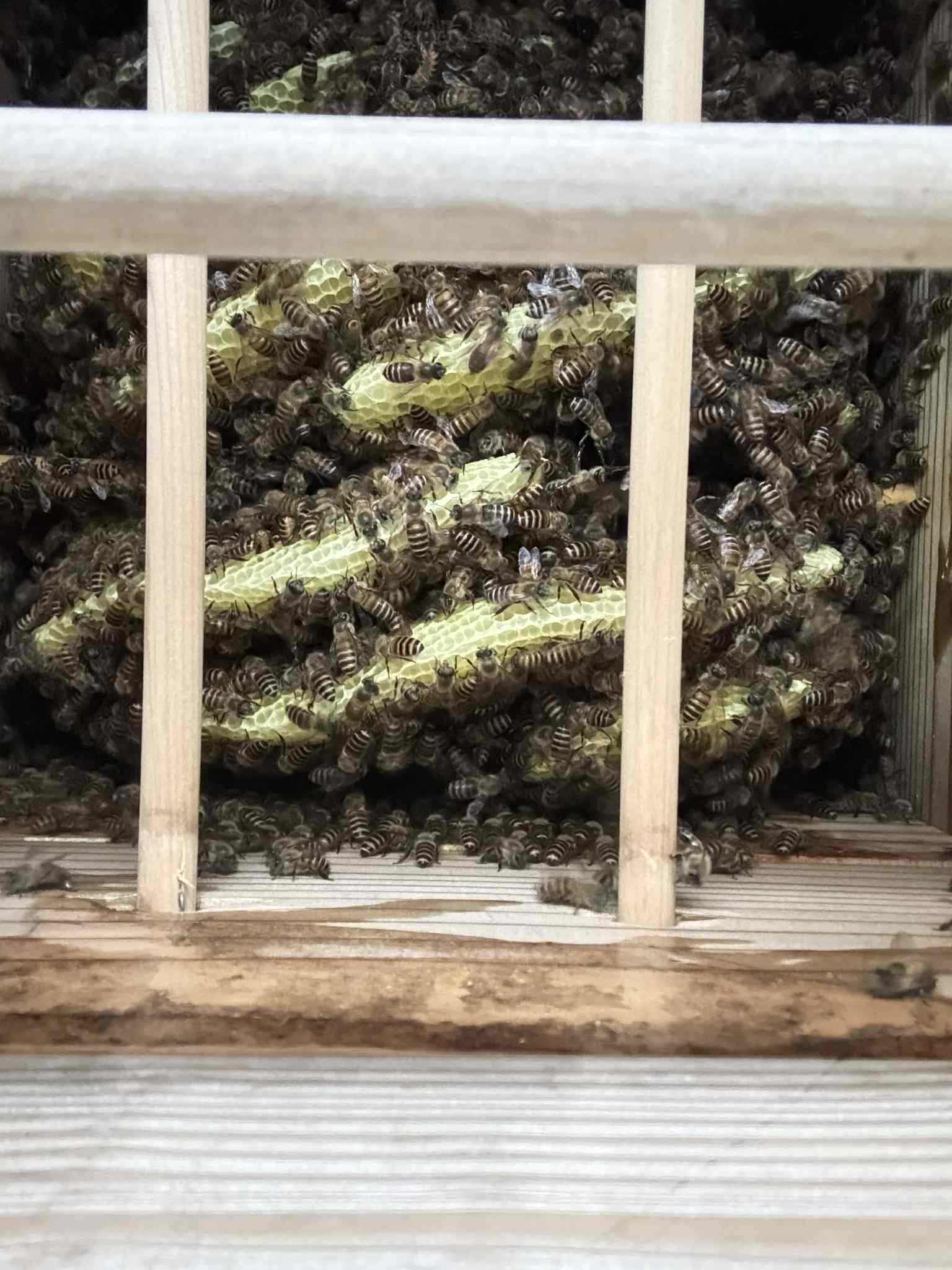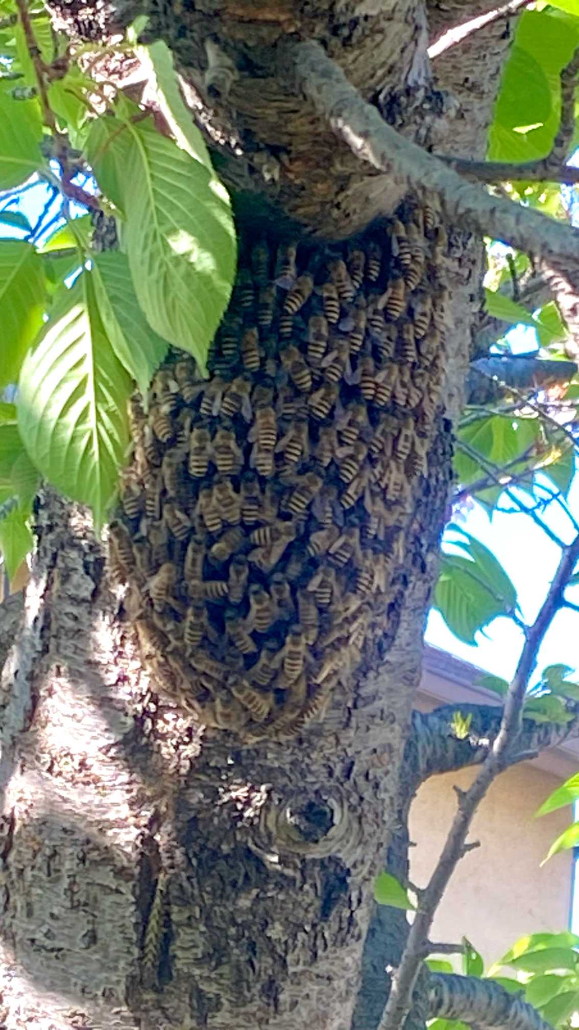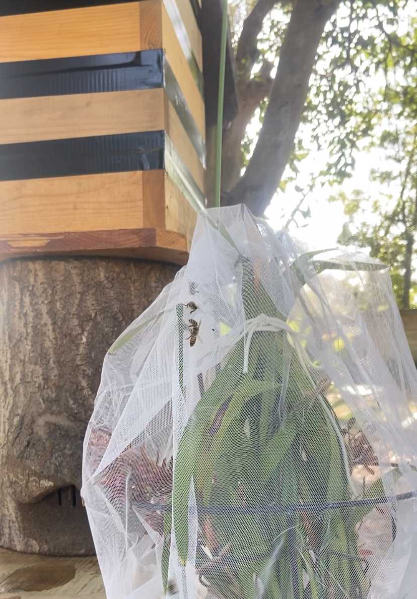 ネット中に飛んできたニホンミツバチが沢山で‼️