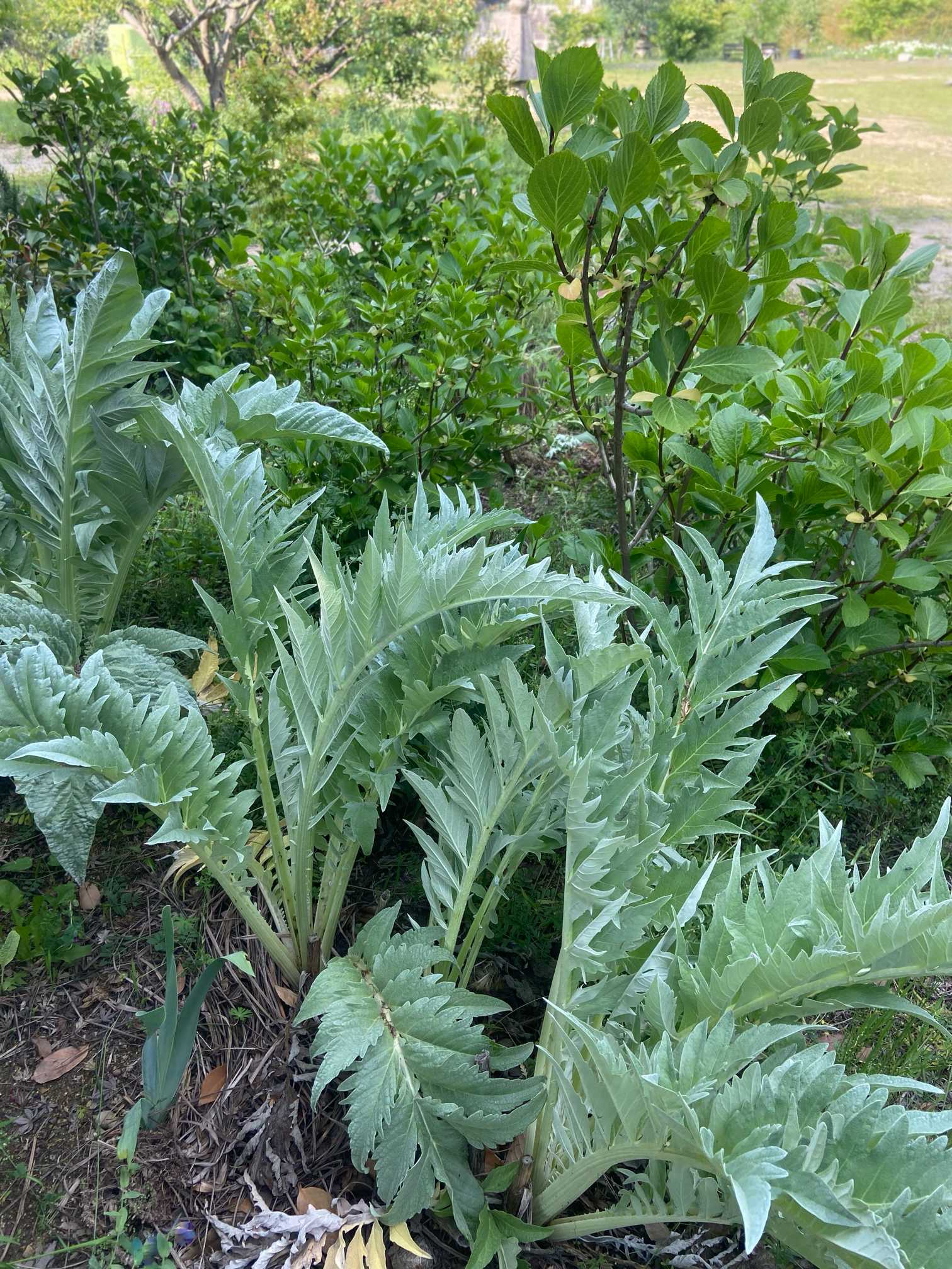 ハーブコーナーにレモングラスを植えました。アーティチョーク採種した種を蒔いたもの発芽確認🌱
