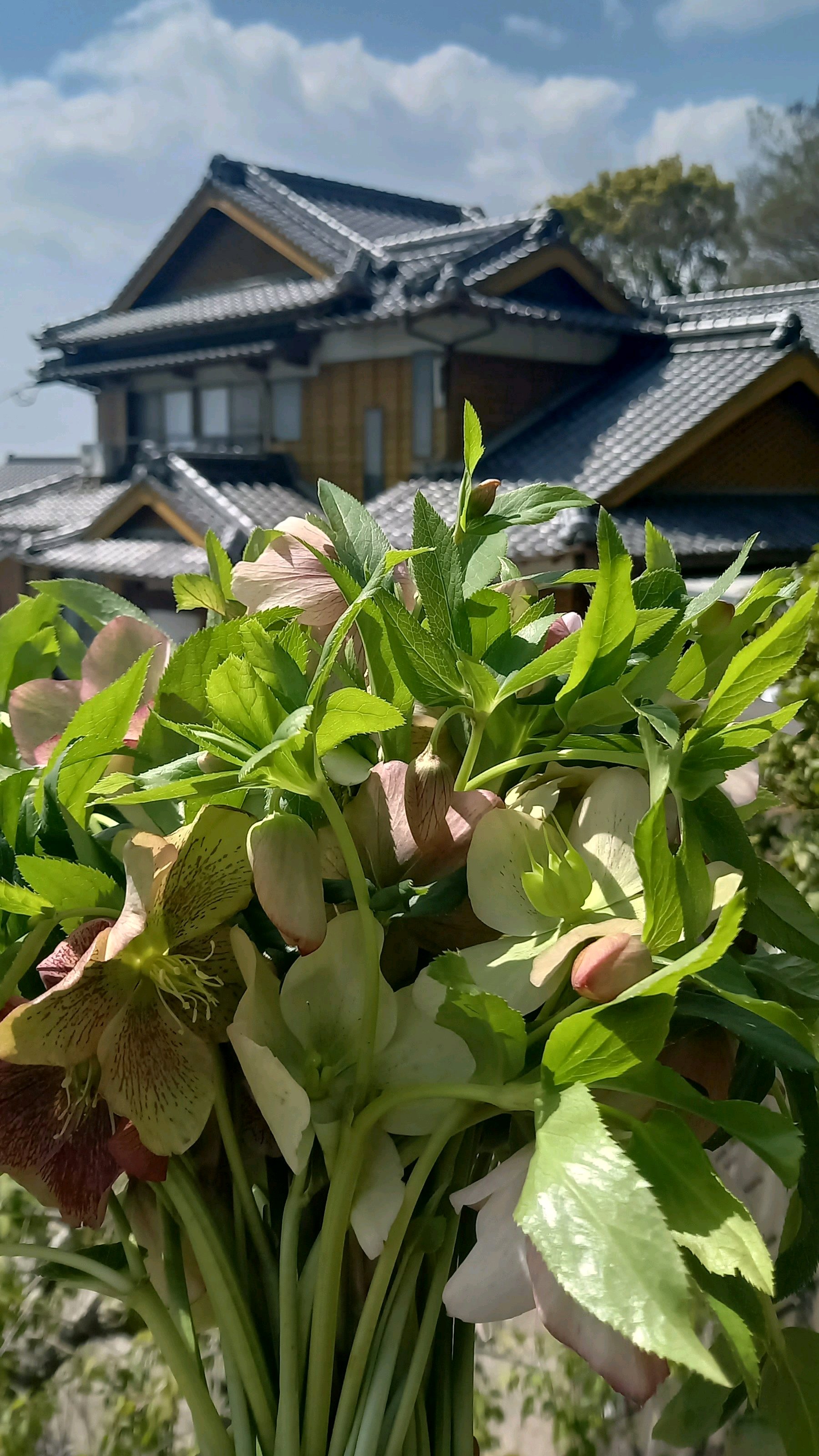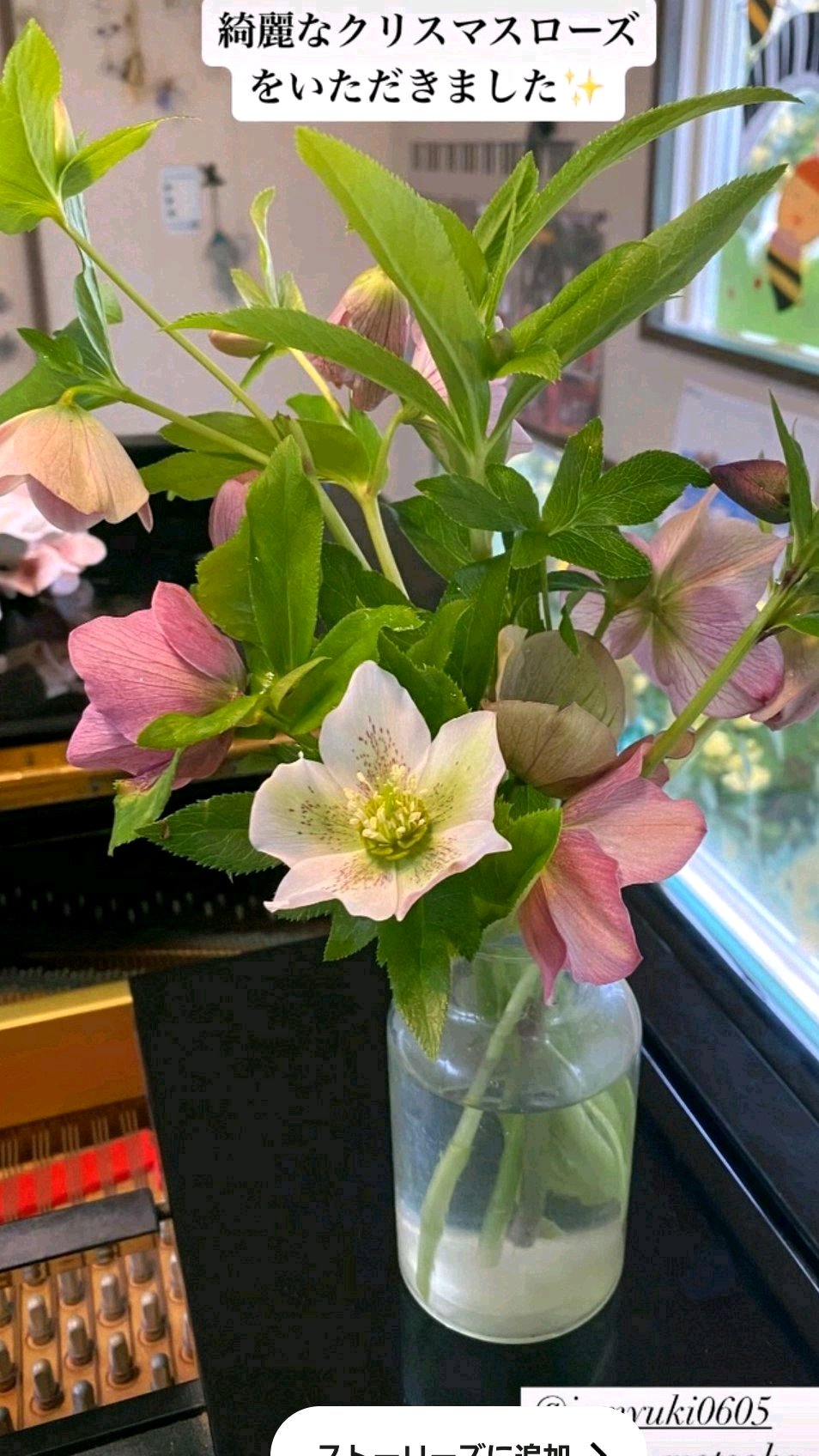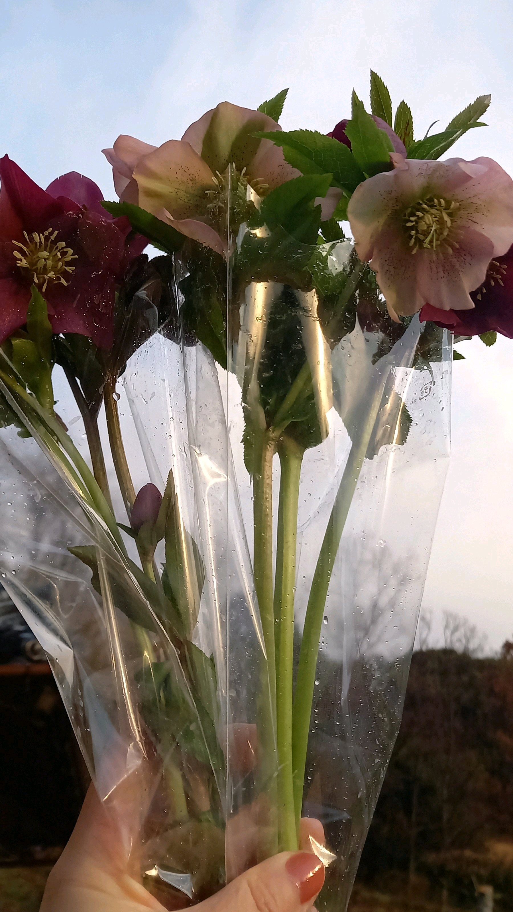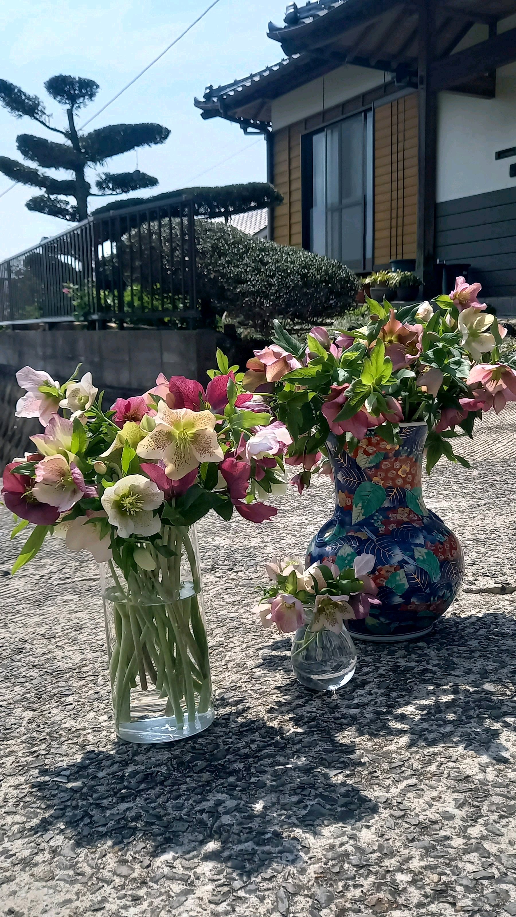 庭に僅かに残っていた、クリスマスローズを生花でプレゼント💐