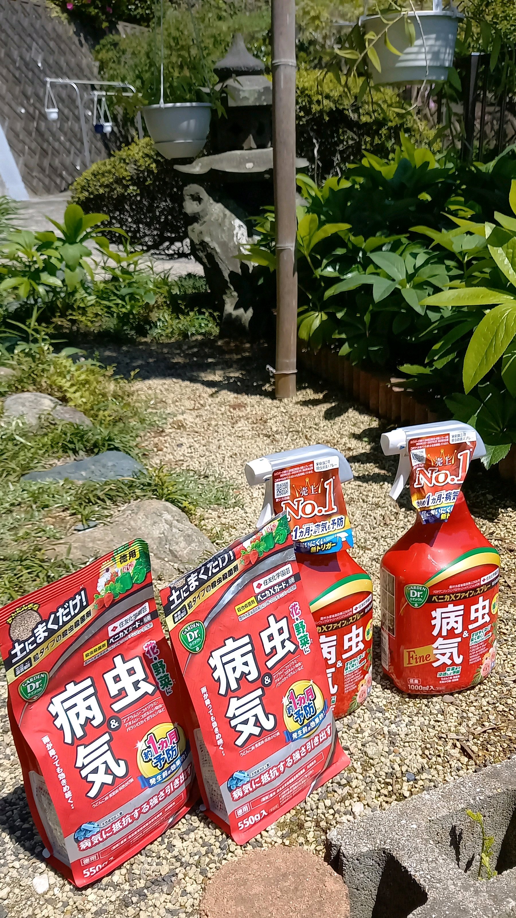古株整理をしながら、薬の散布開始🍀