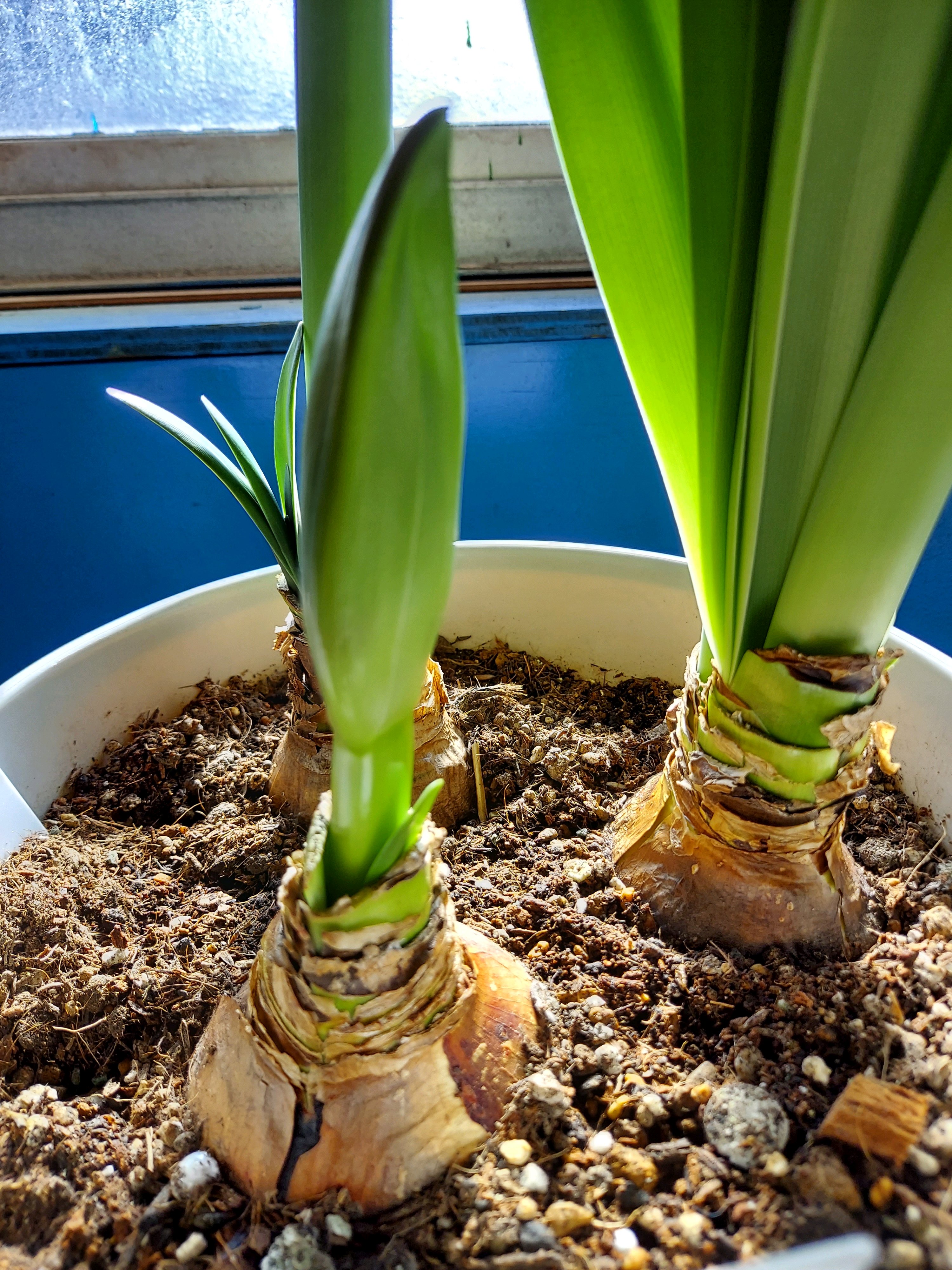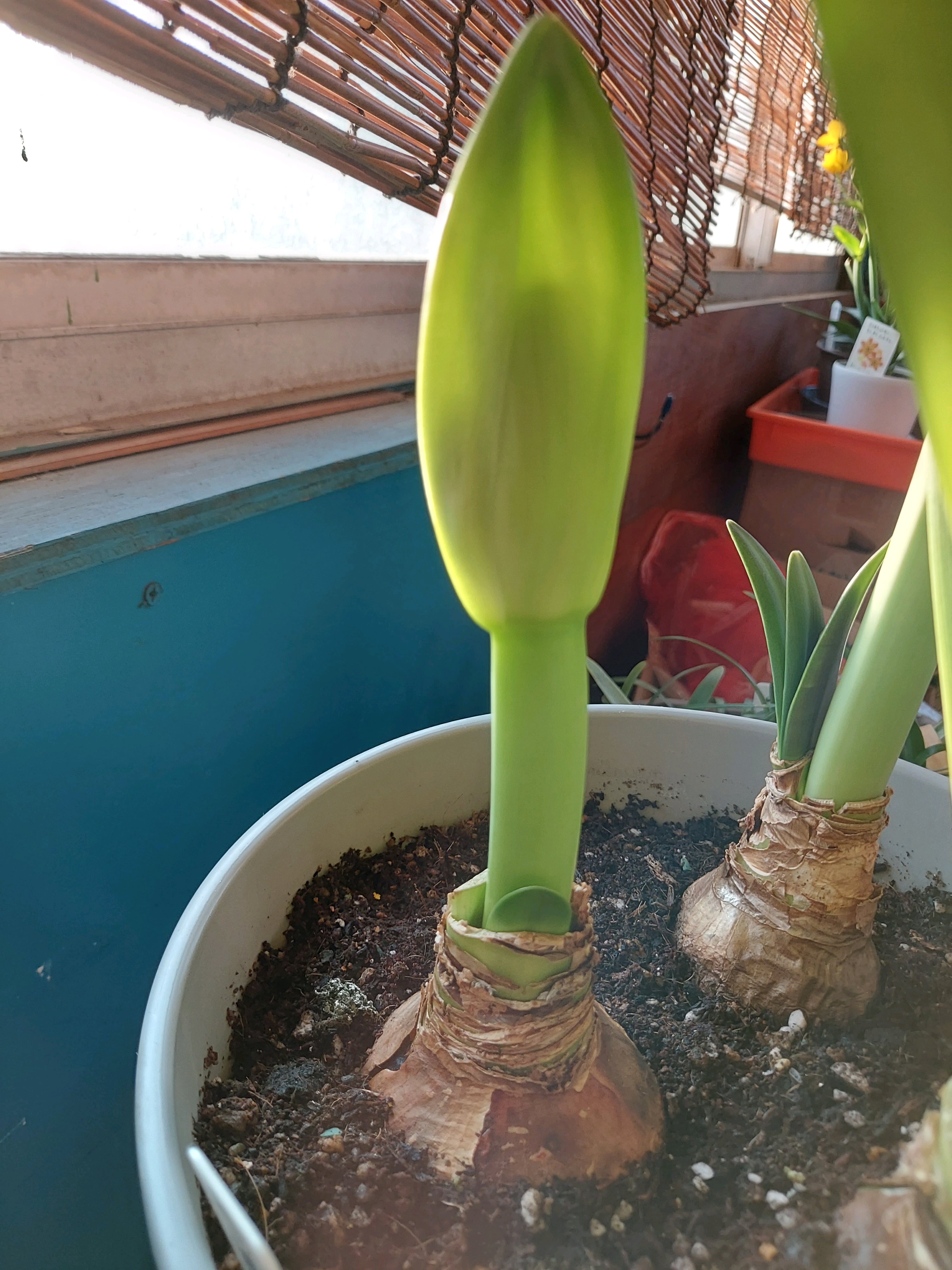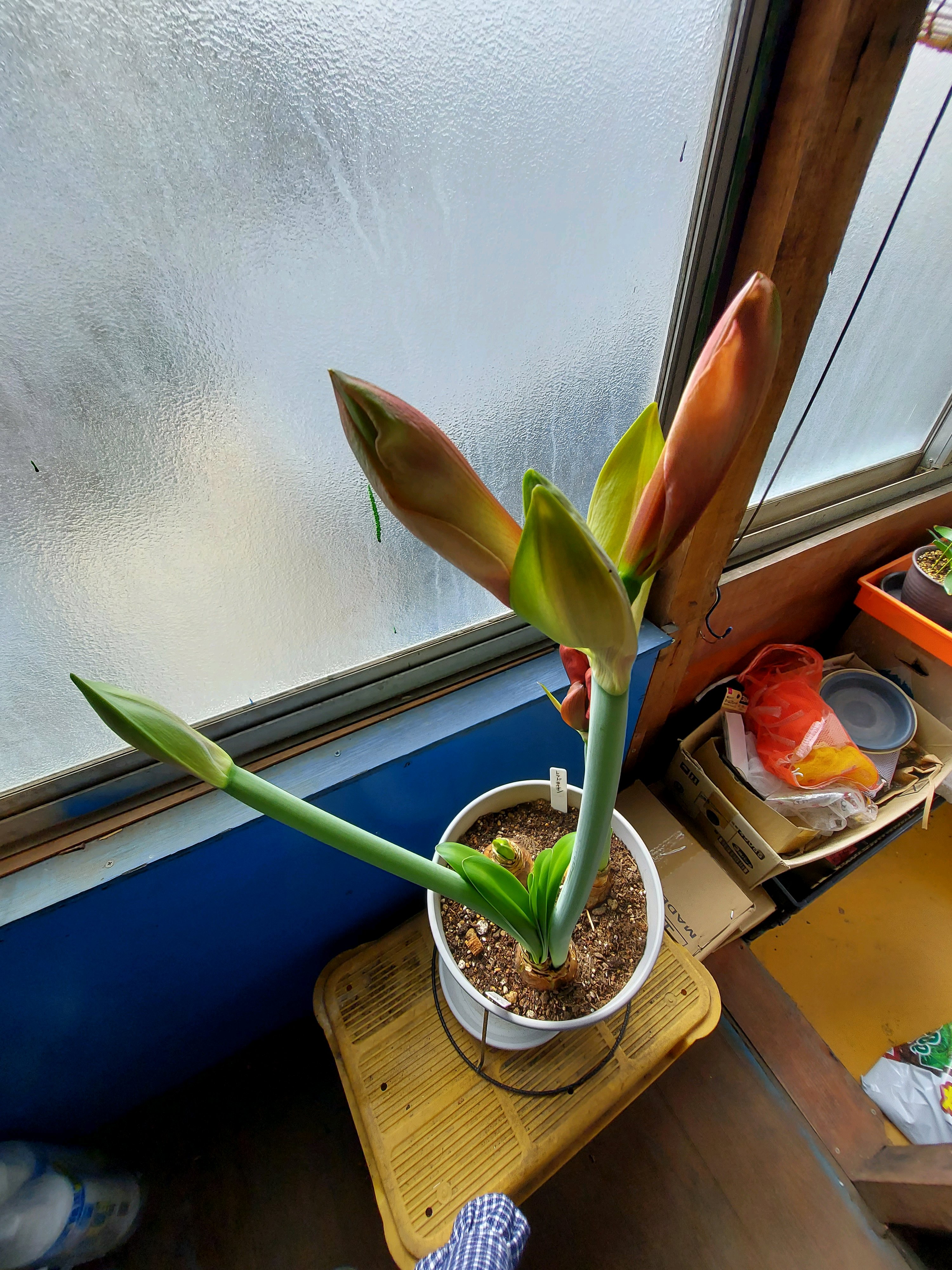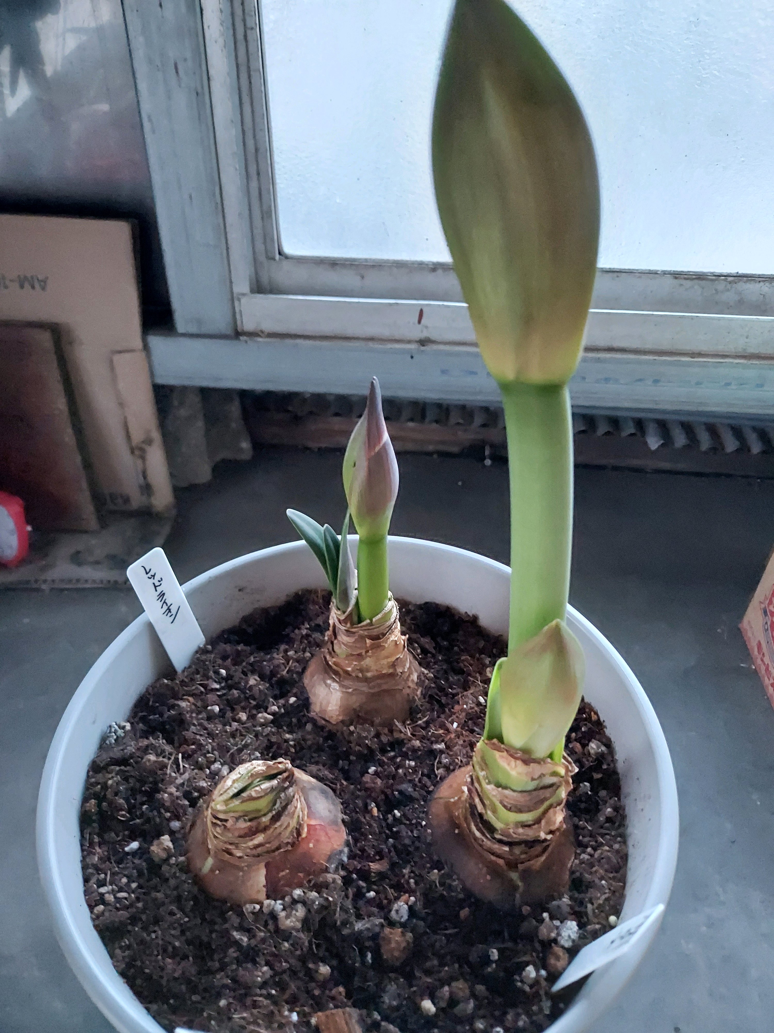 花芽がでないので4月10日に球根の底をカットしてみました。翌日、何か出てる~🎵