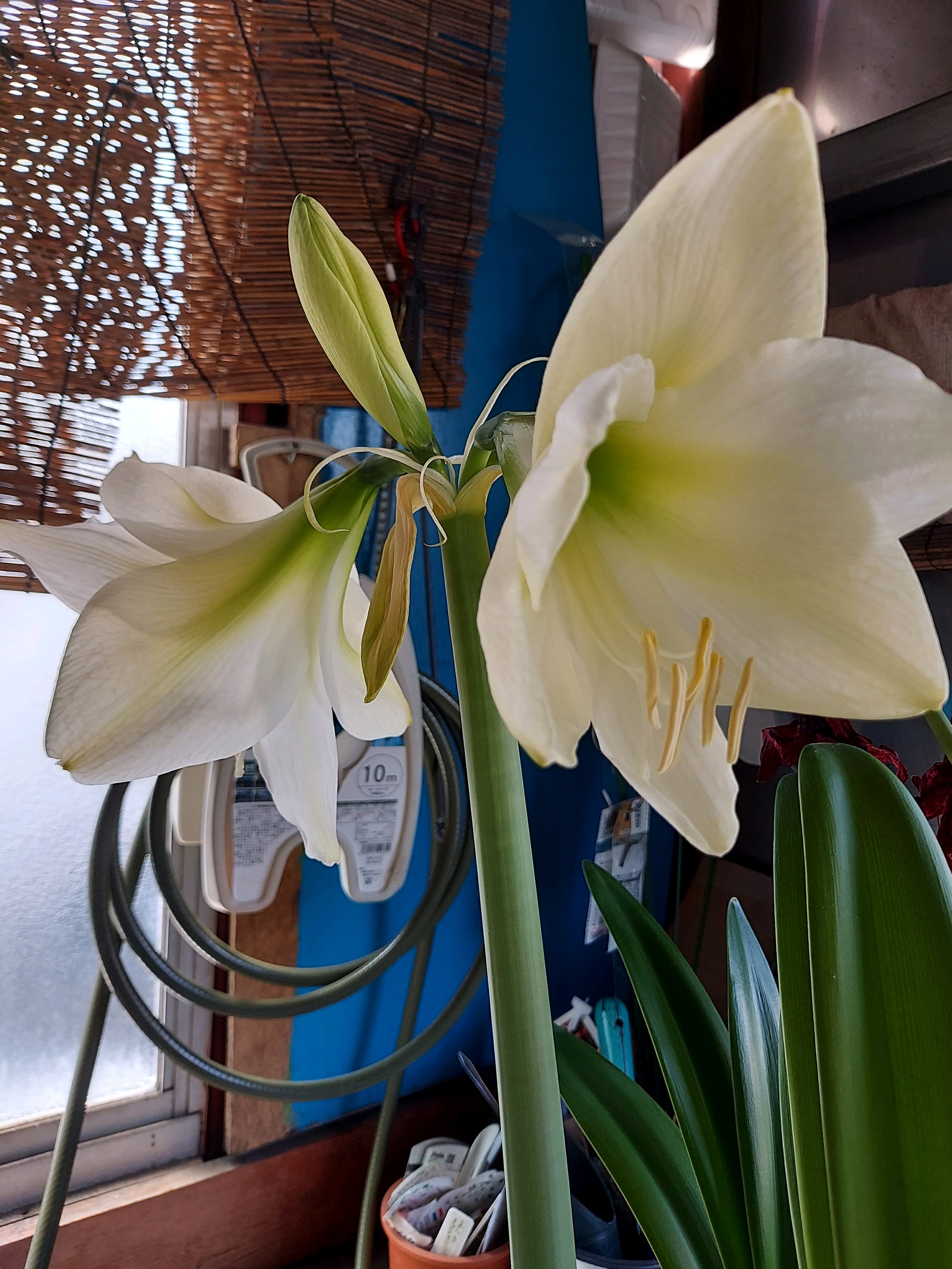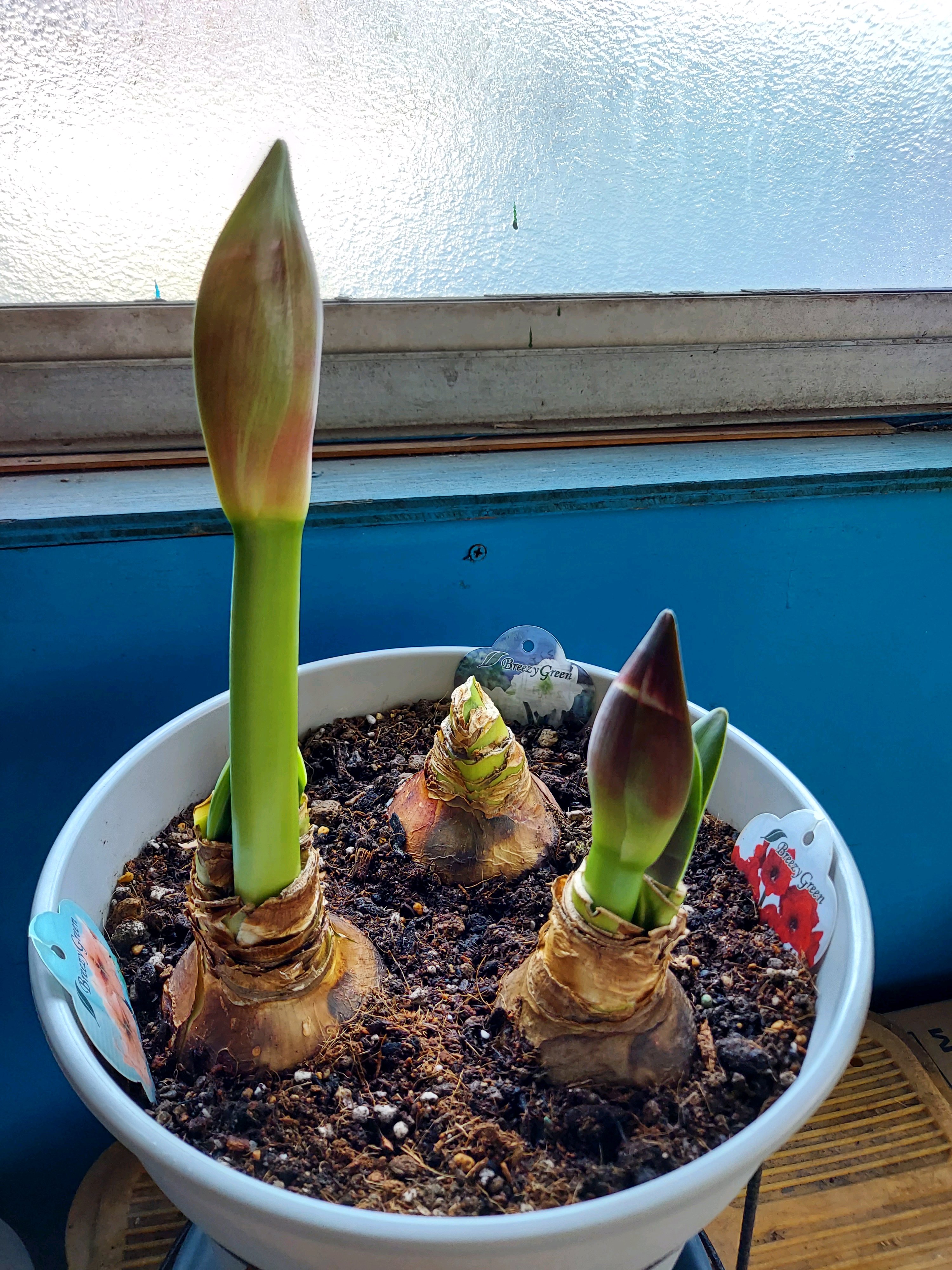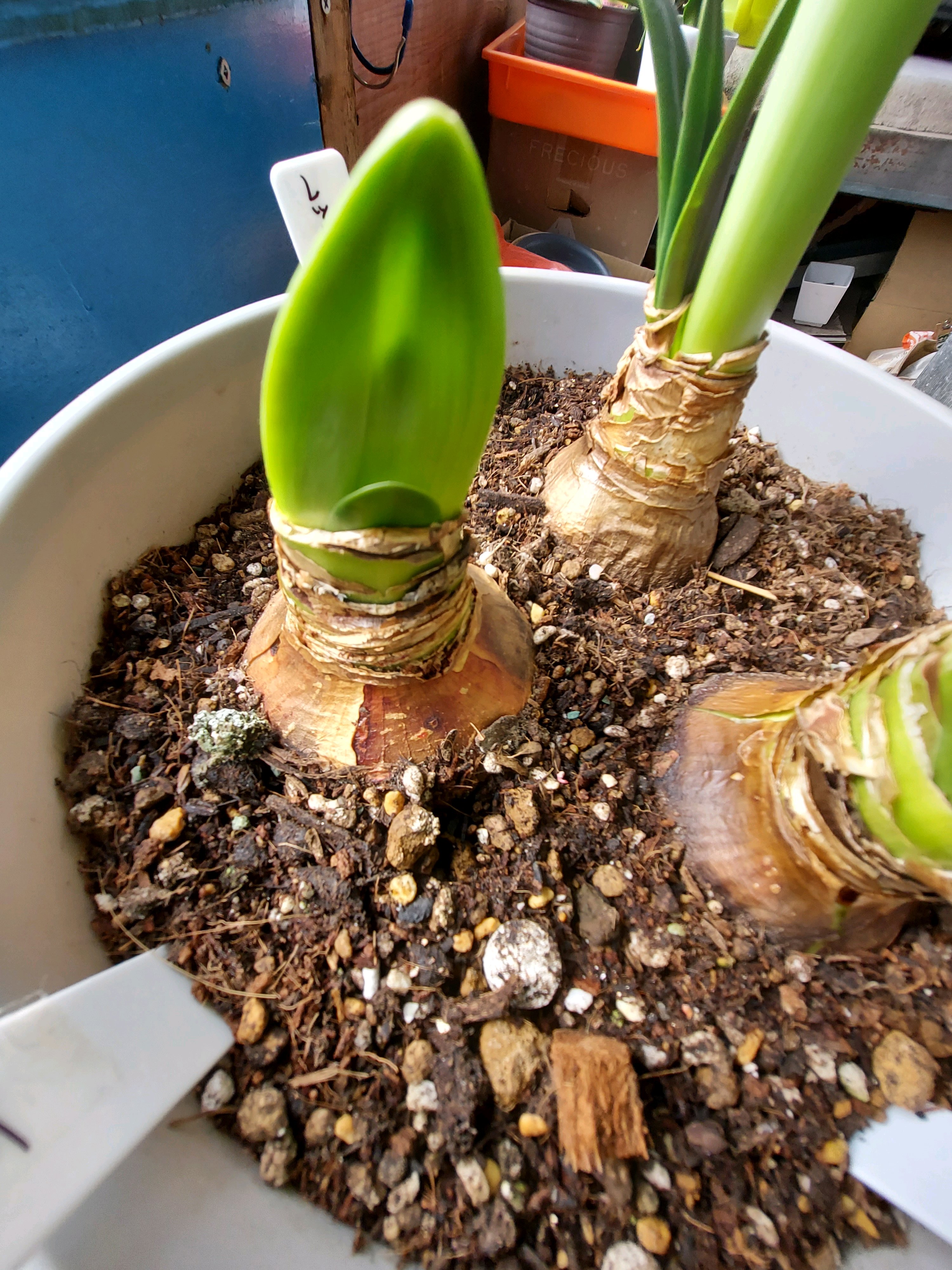 花芽がでないので4月10日に球根の底をカットしてみました。翌日、何か出てる~🎵