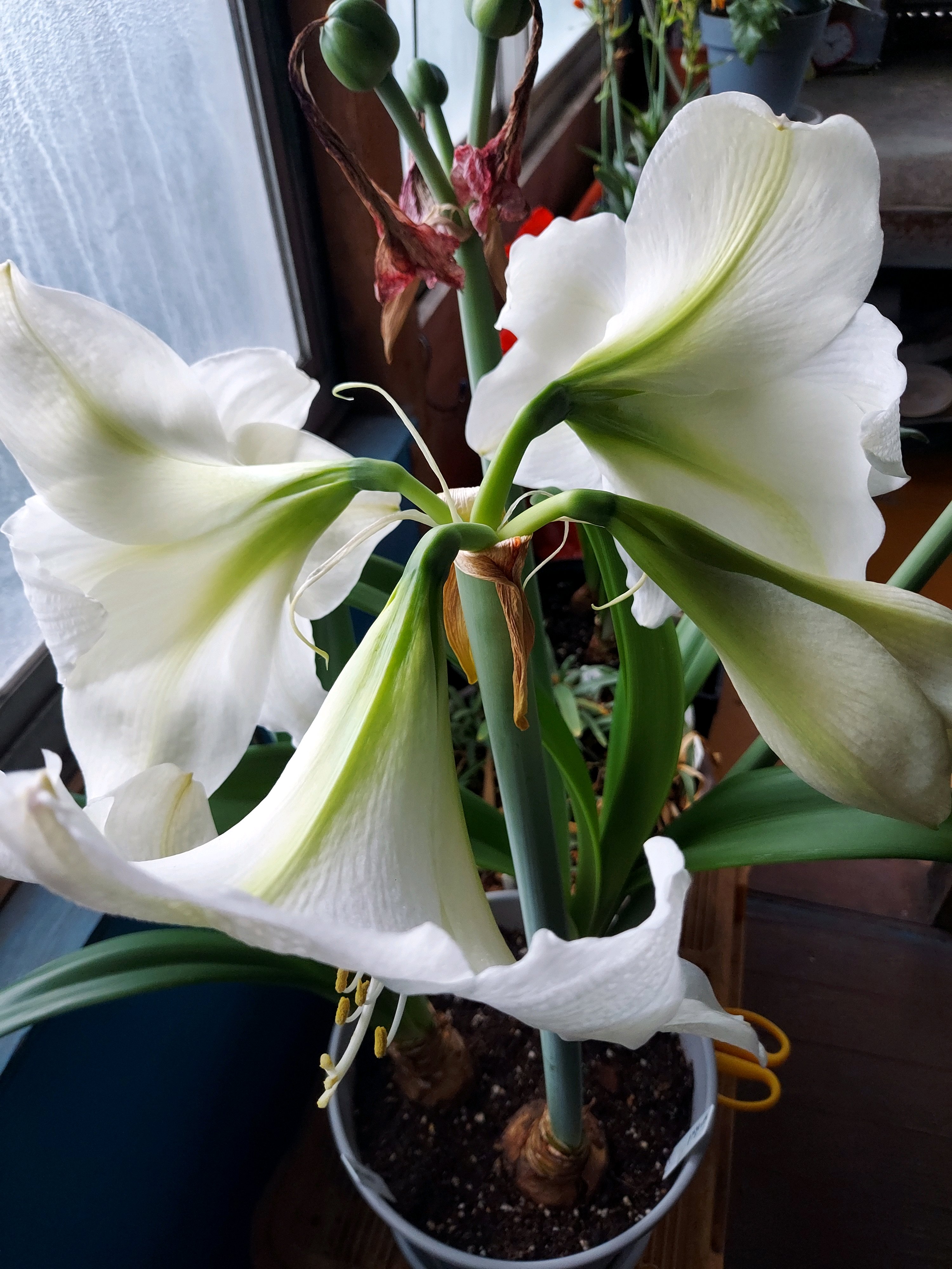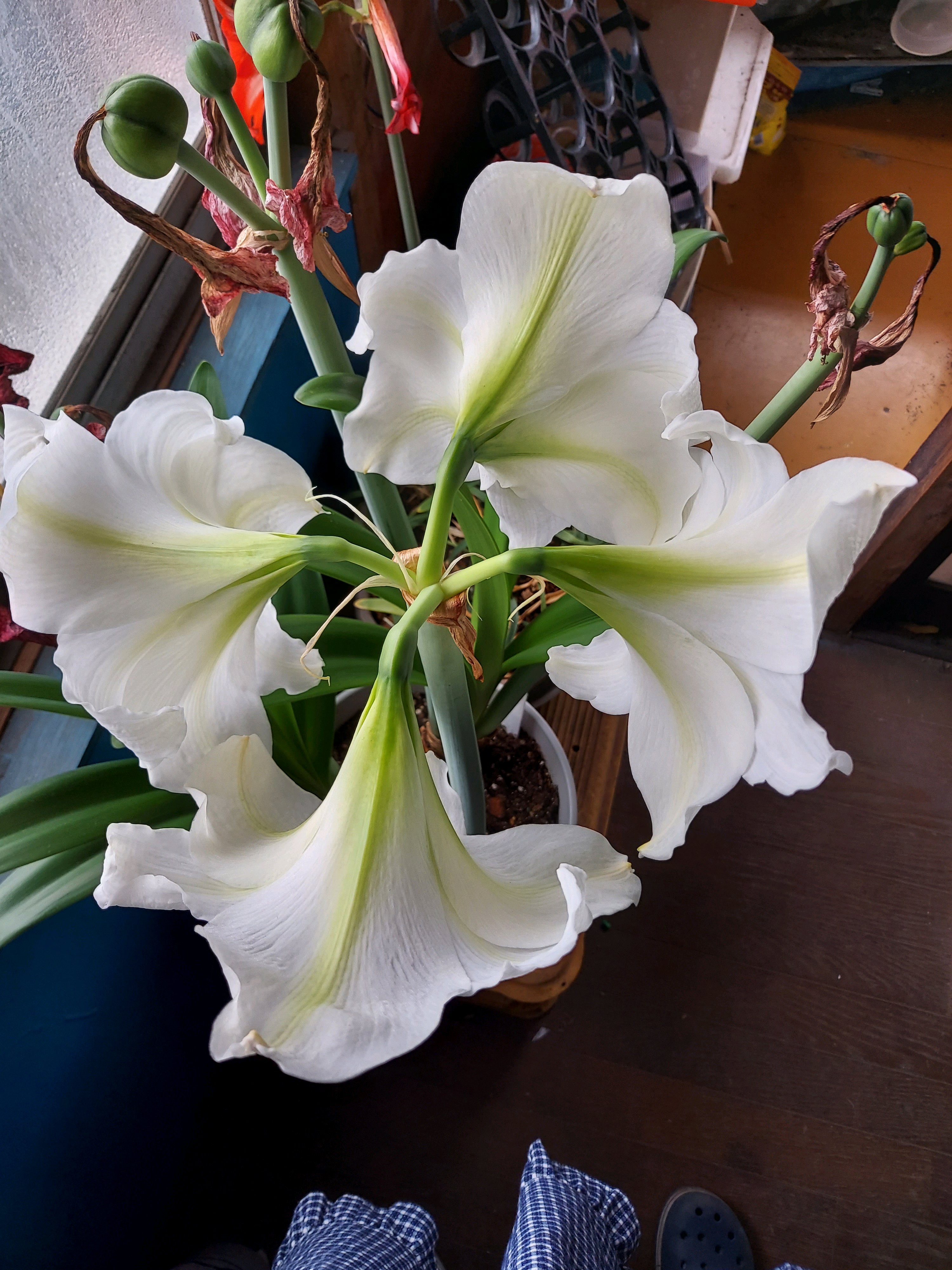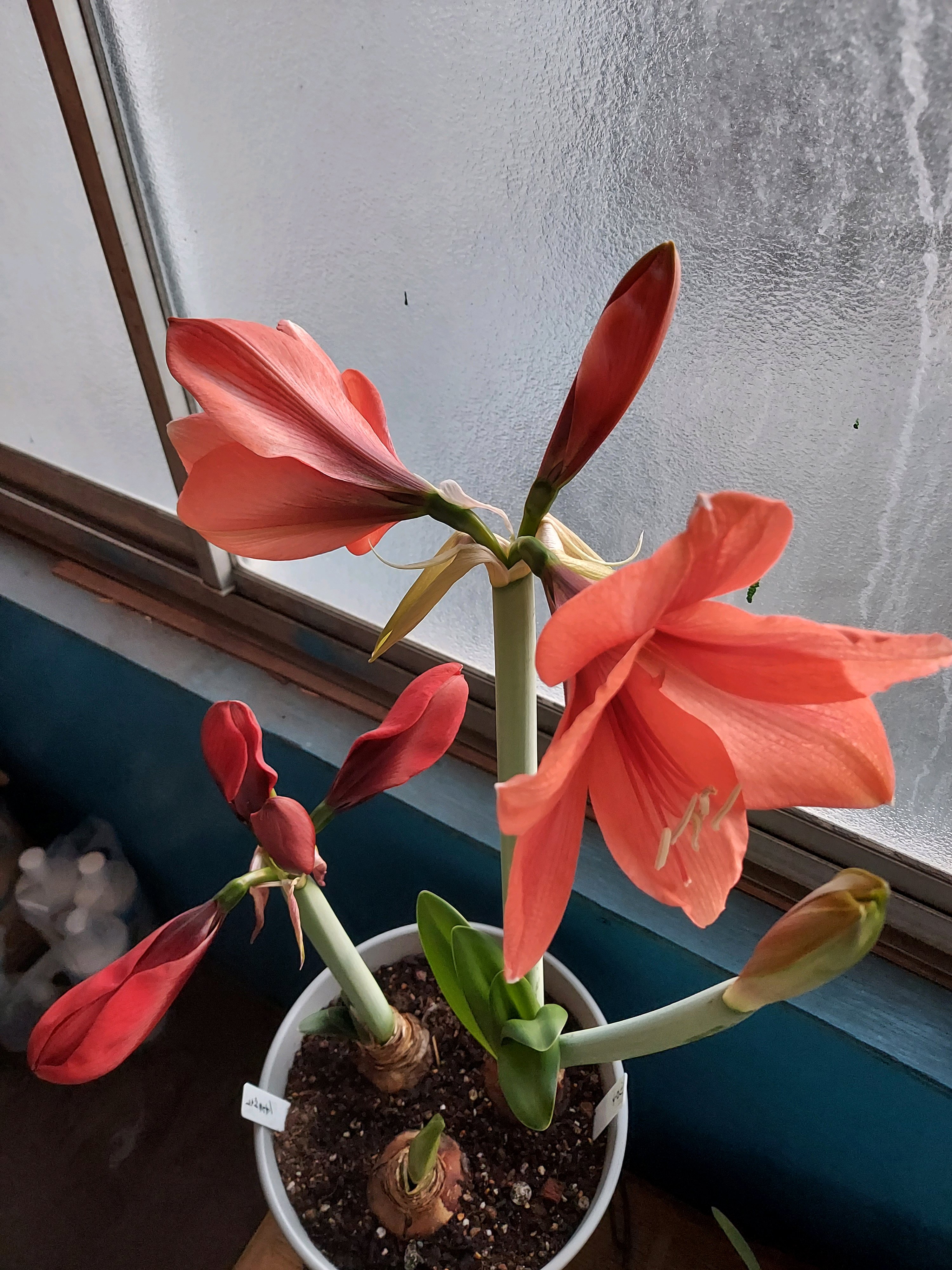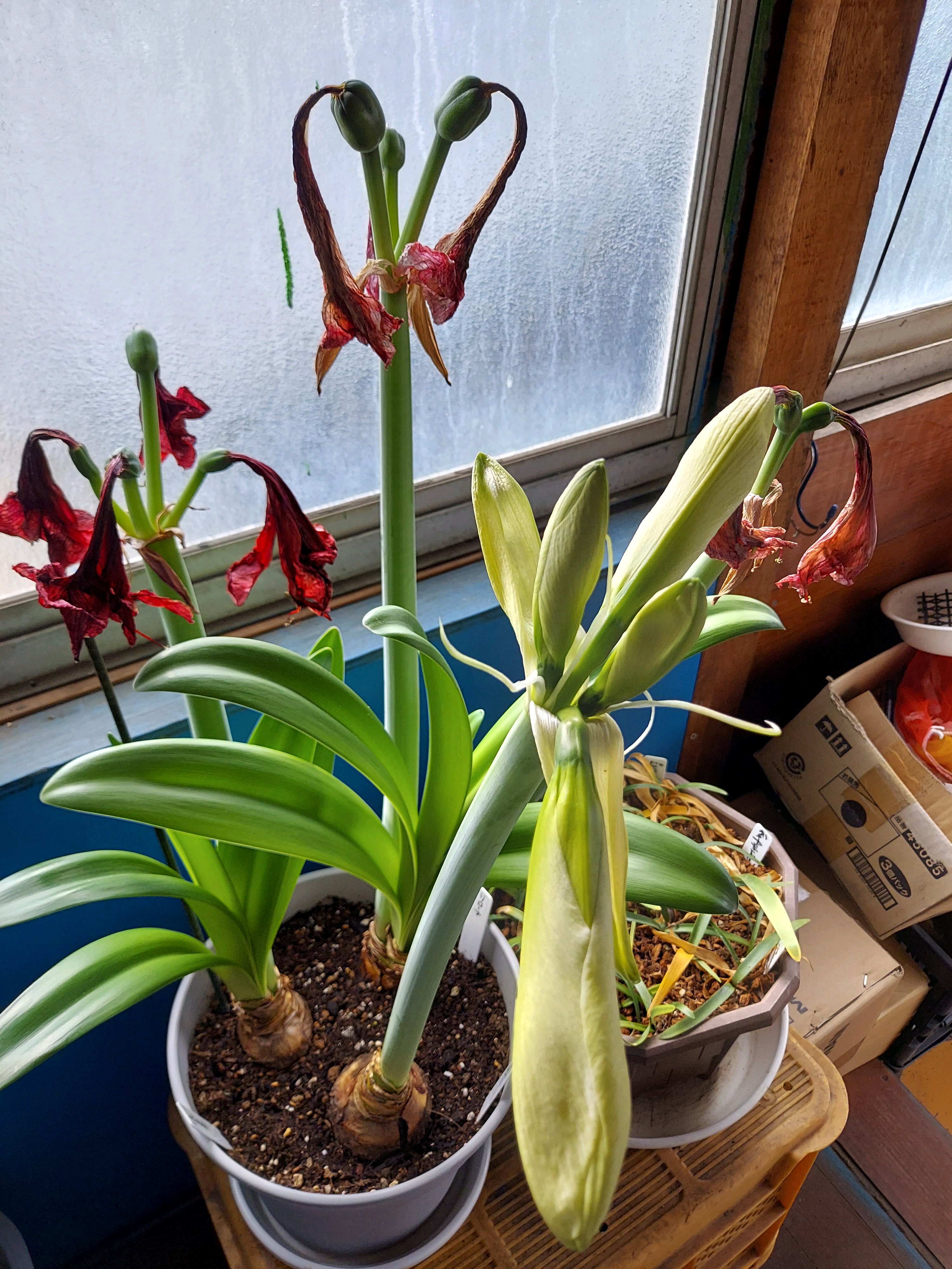 花芽がでないので4月10日に球根の底をカットしてみました。翌日、何か出てる~🎵