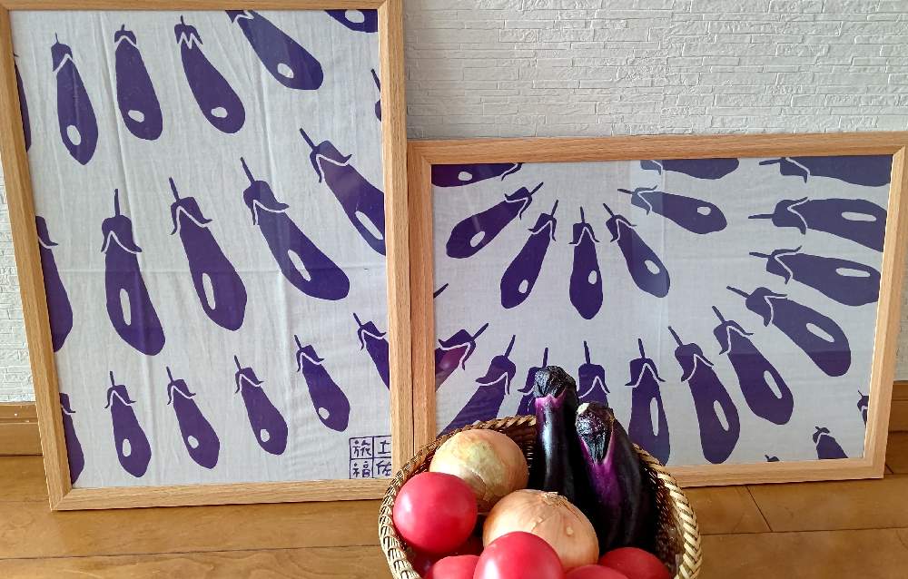 四国に旅した思い出に、土佐手ぬぐいの茄子🍆の。