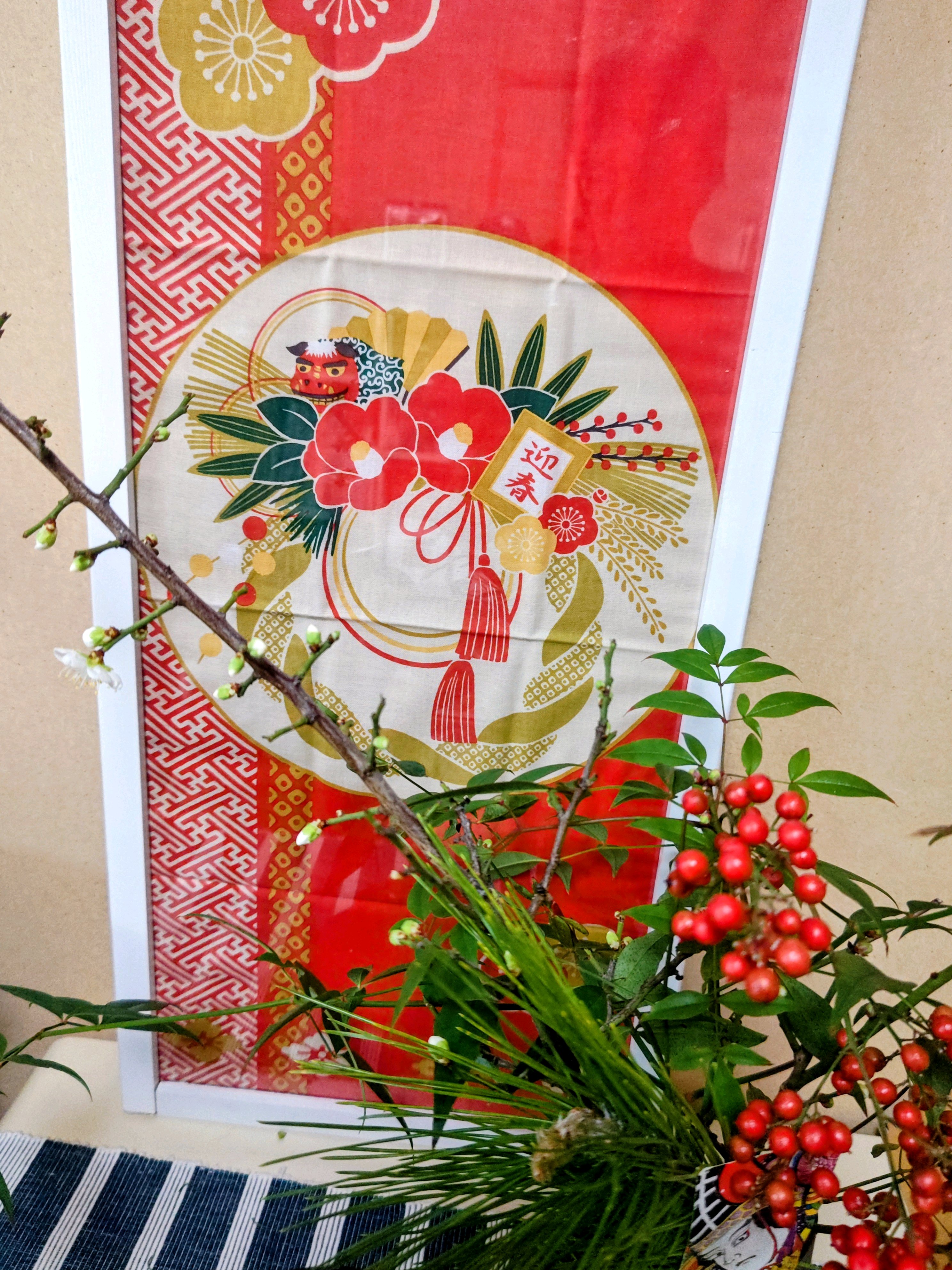 好きな柄の絵手ぬぐいを飾って、四季を感じる設え記録。
