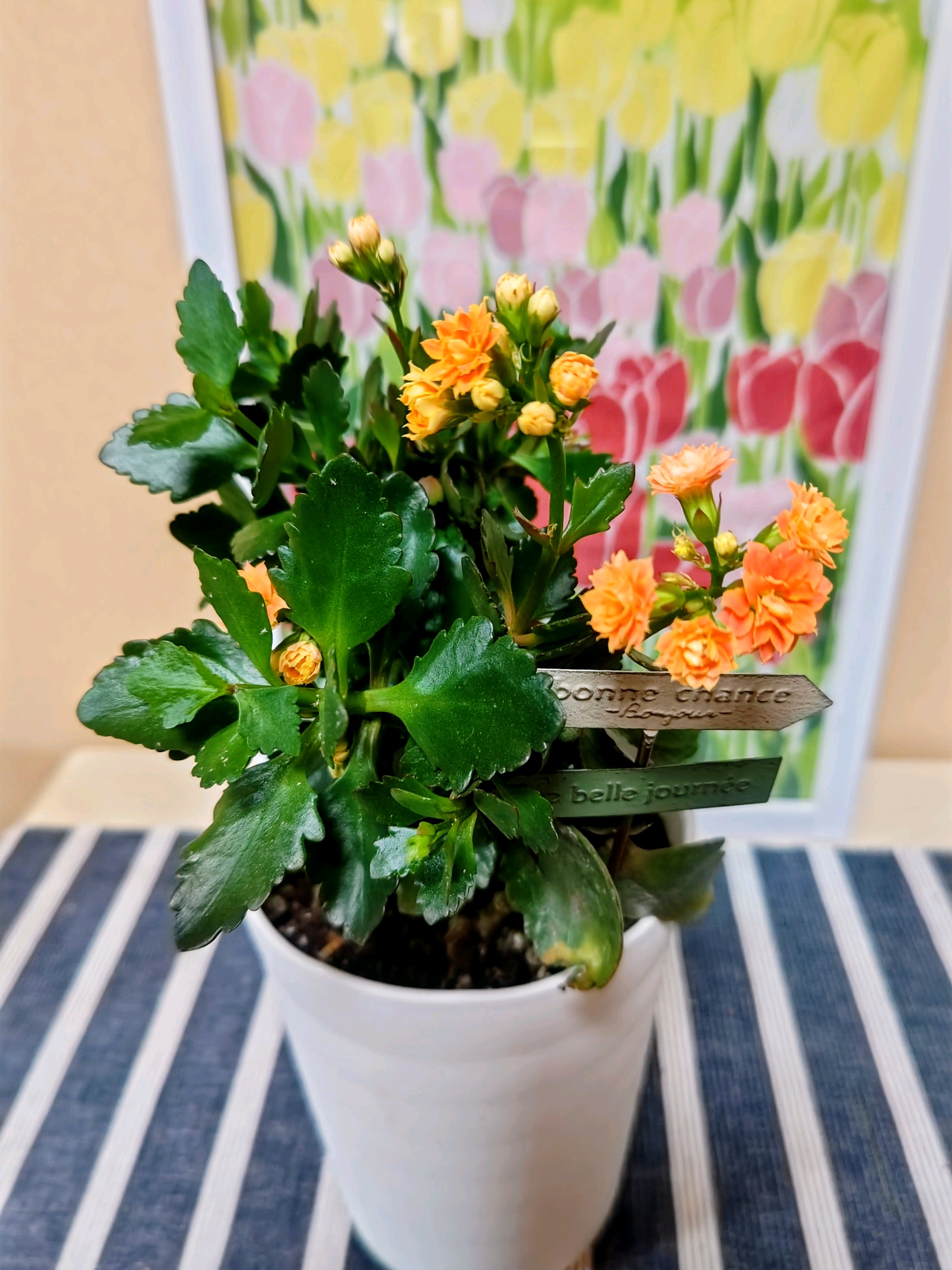 部屋に入れたカランコエも、咲きだしました。