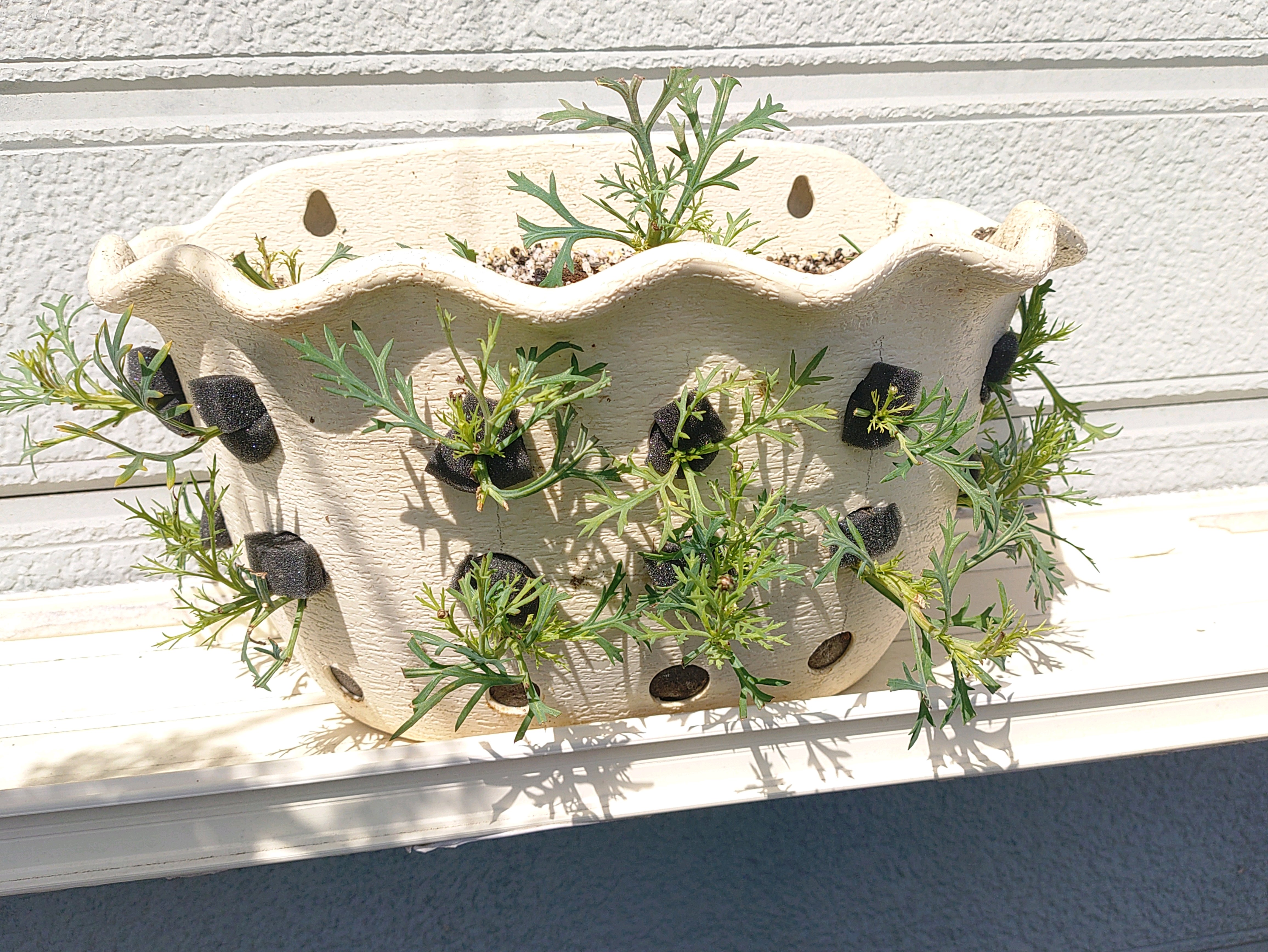 これは壁掛けプランターにギャザリング用の穴を開けた物