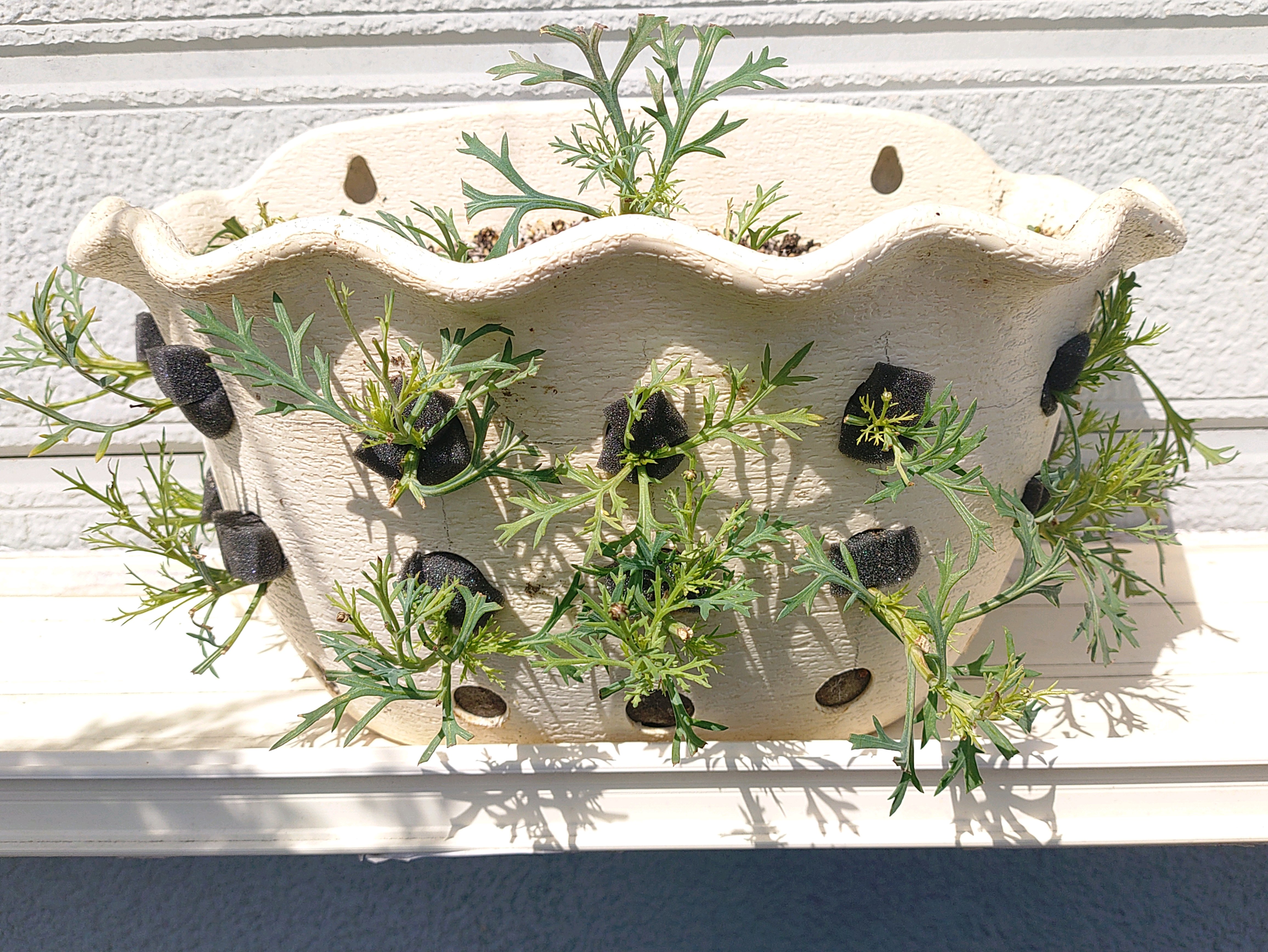 丸く見せるには サイドに定植するか スワッグ(真下)からの定植にて光屈折を利用してプランターポット全体が生茂る様にしないとなんだよね