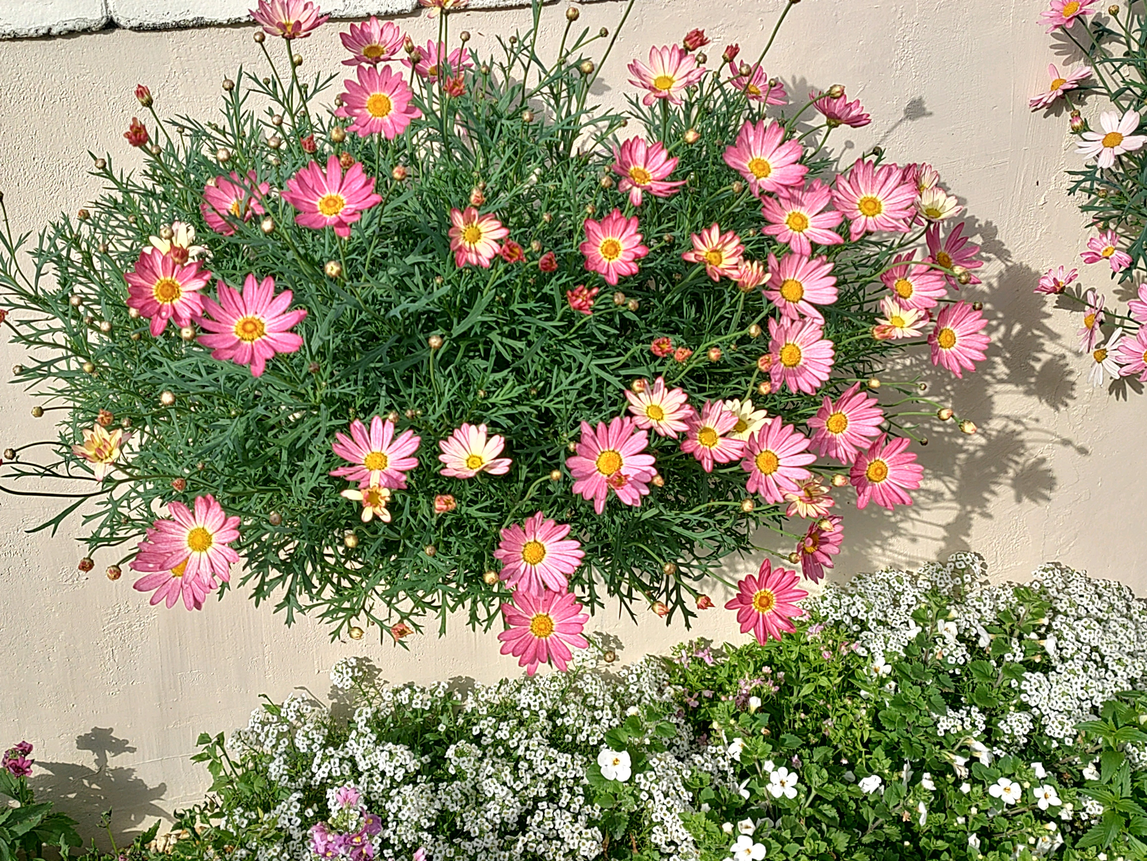 今年のウォールハンギング マーガレットは完成で 育成開花のスピードは 気温次第ですね