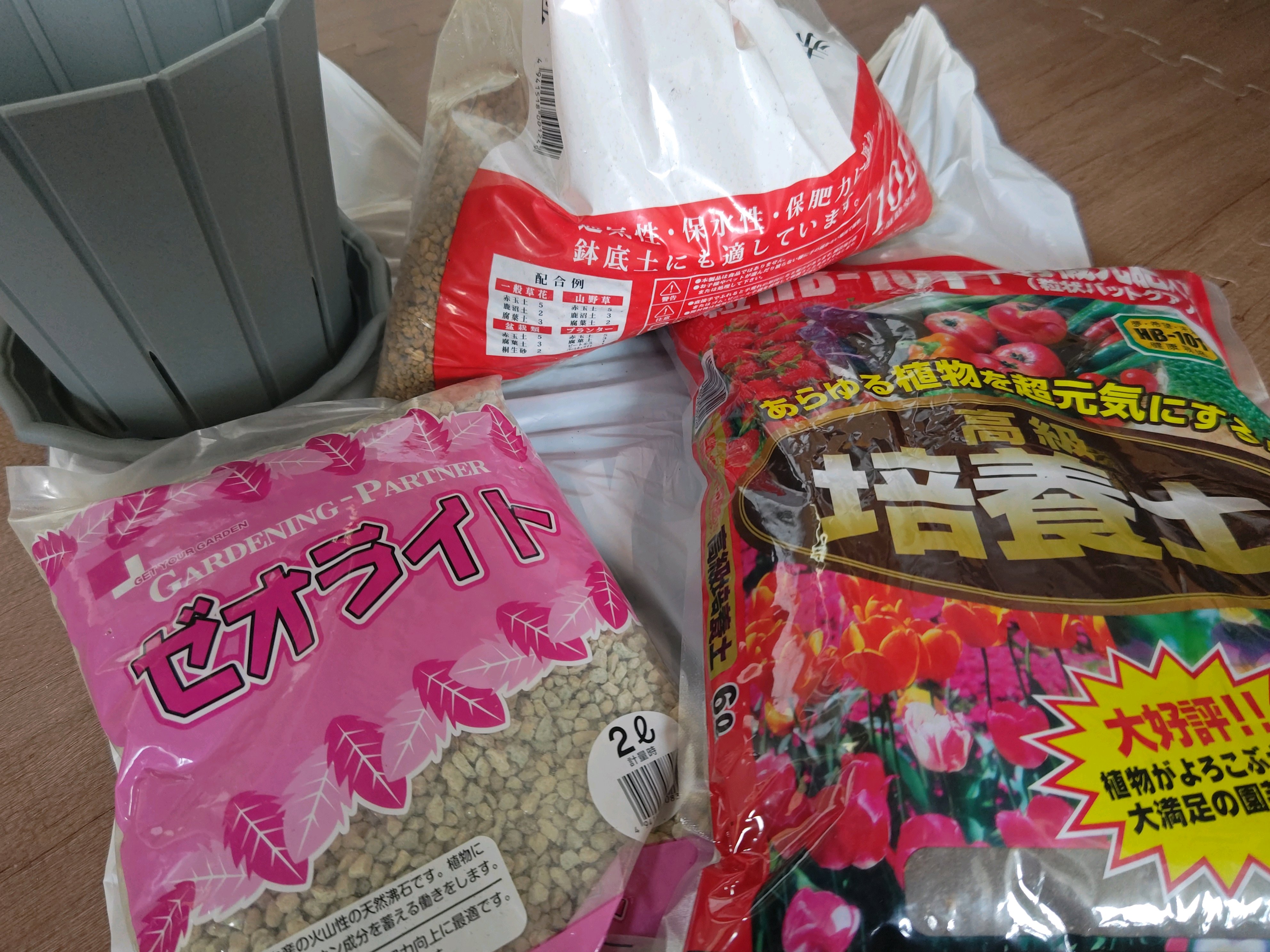 普通の培養土に、ゼオライト1割、赤玉土を3割混ぜてると。