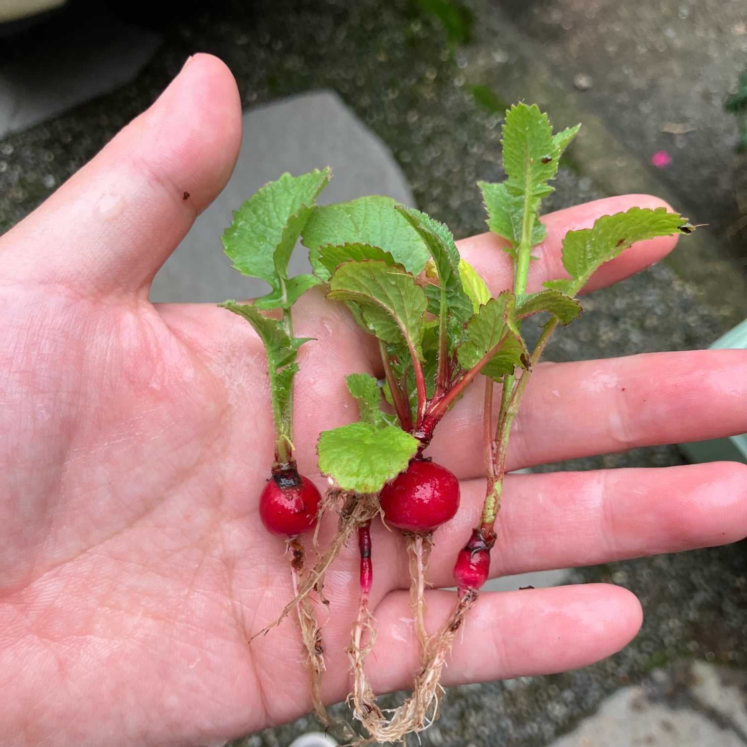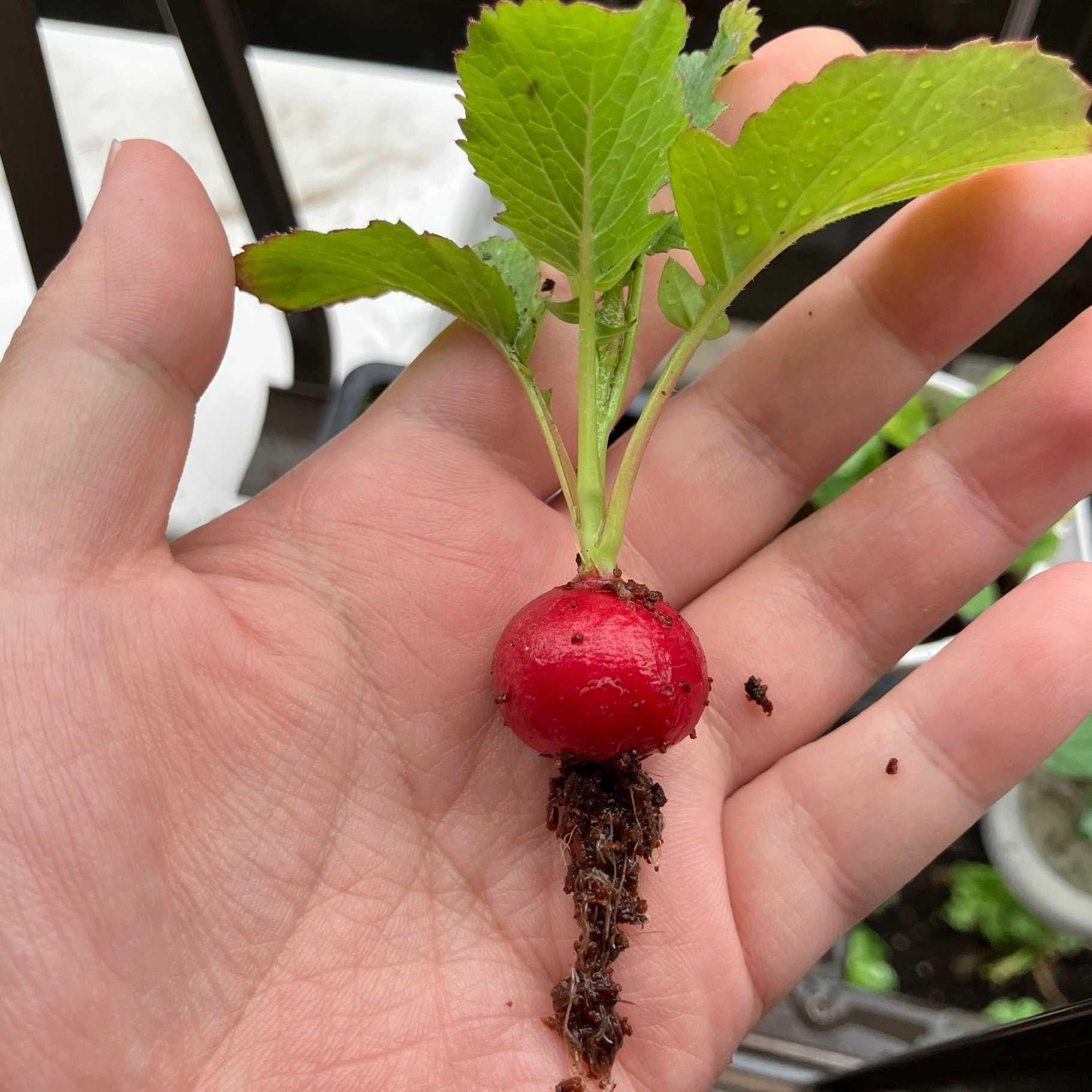 ラディッシュの中で大きいものを収穫し、その日の味噌汁に加えました。美味しかったです😋