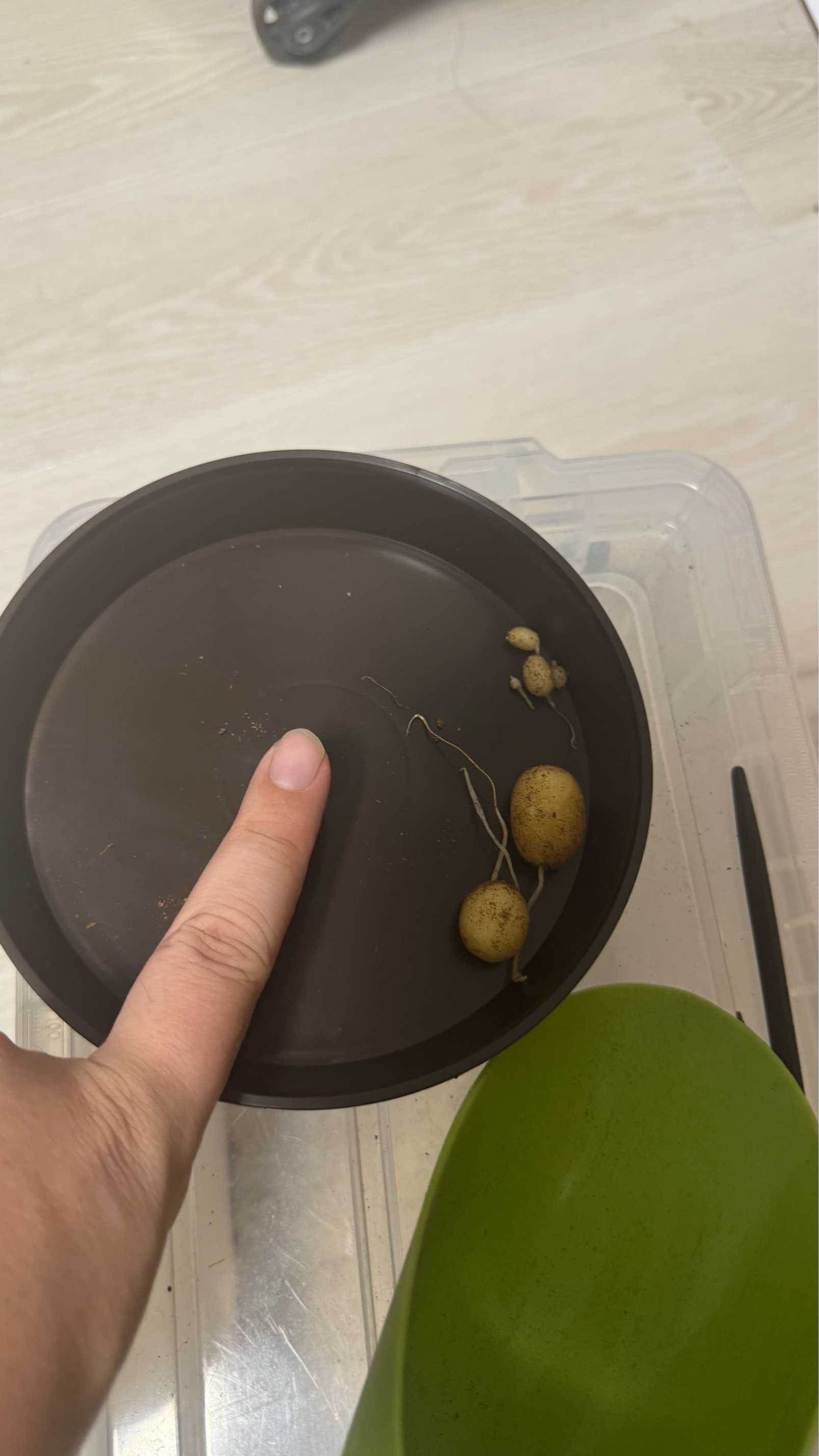 2025.07.21 家を空けることが多く枯らしてしまったのだけど、芋の赤ちゃんがついてました。