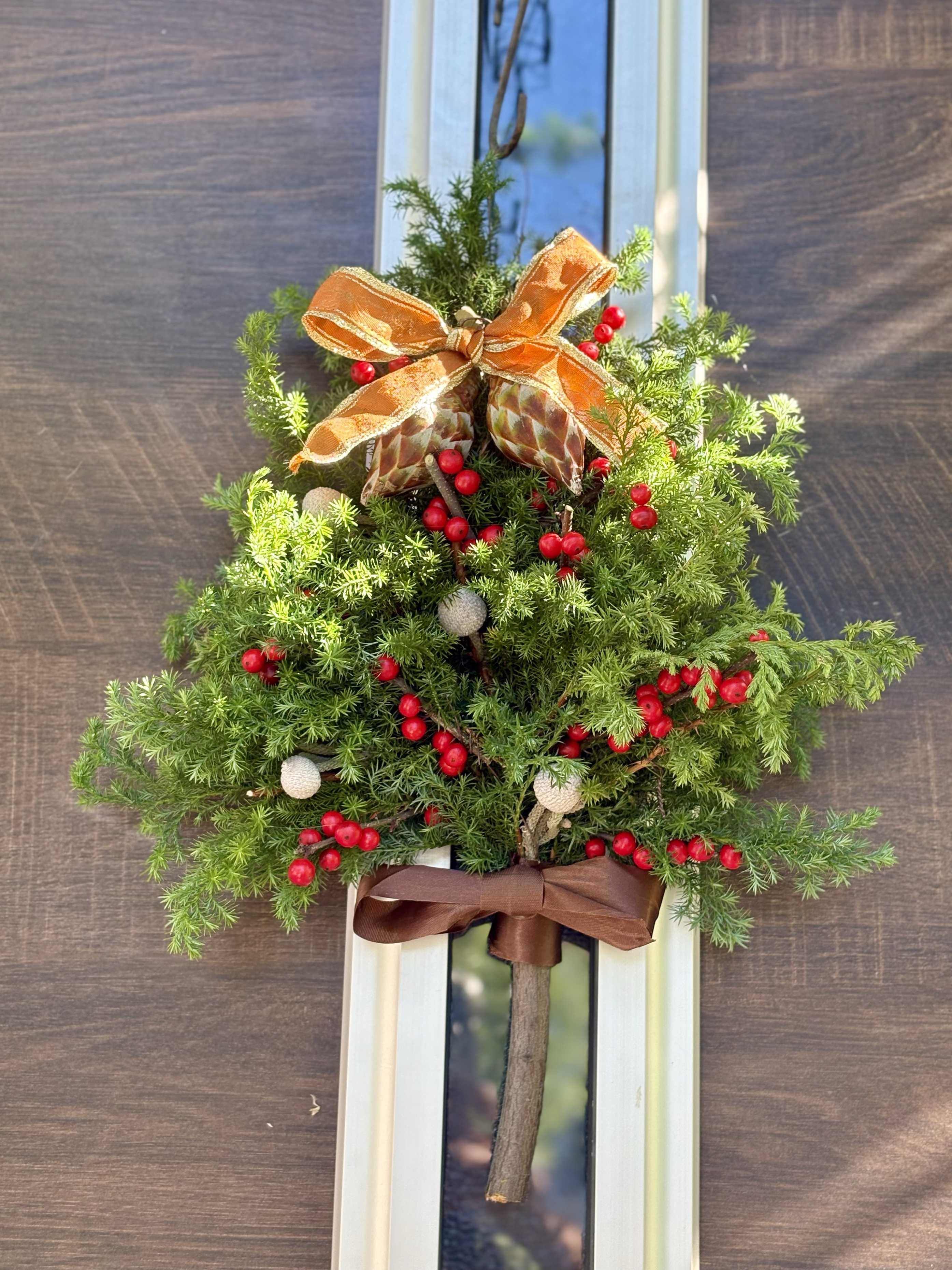オーナメントはウィンターベリーとブルニア