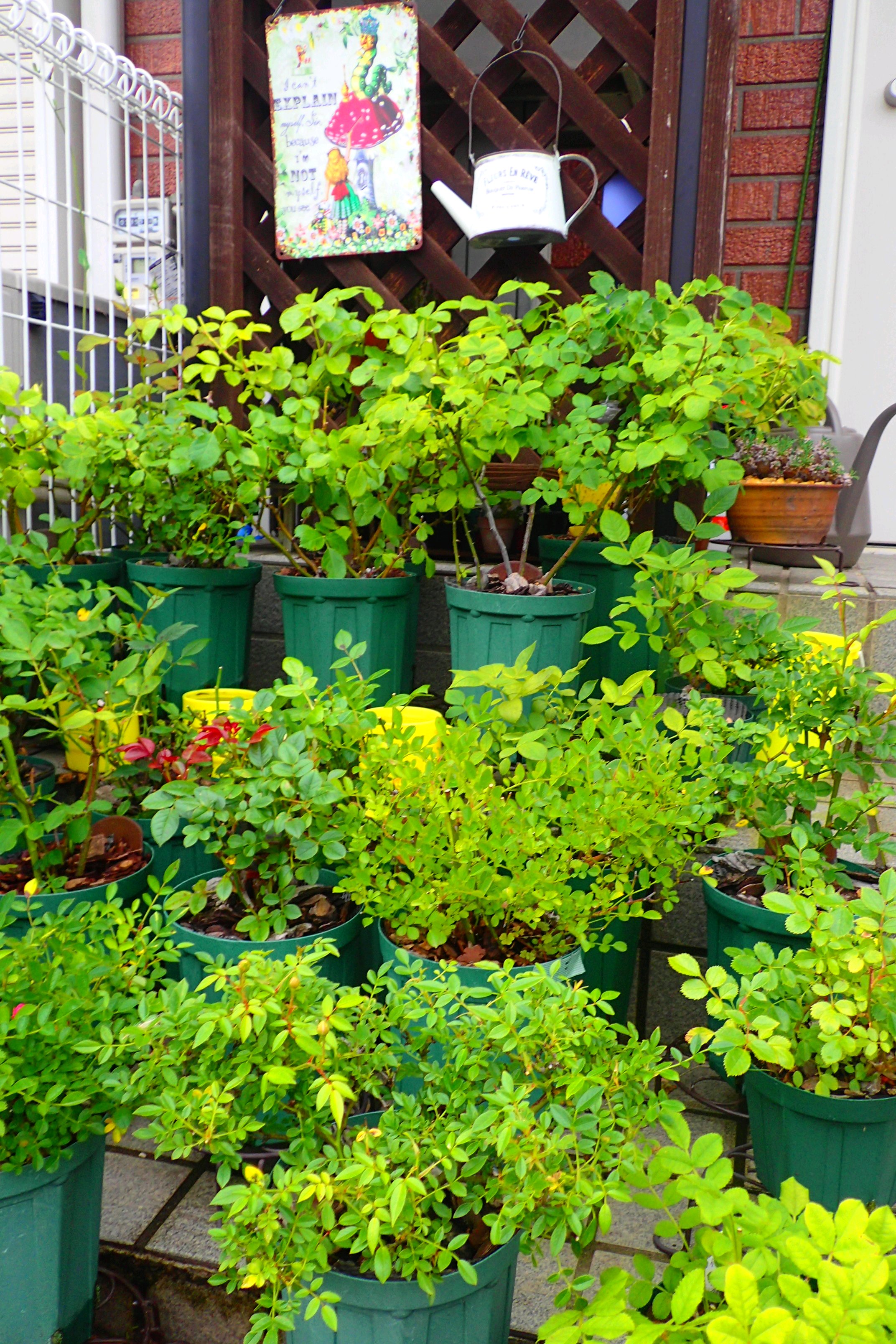 薔薇の鉢の間に