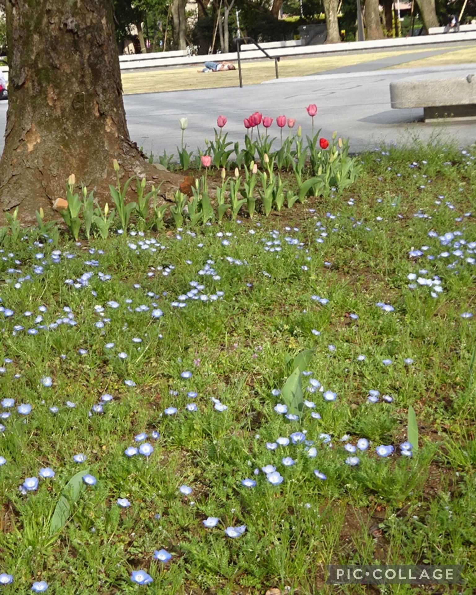 ネモフィラとチューリップ