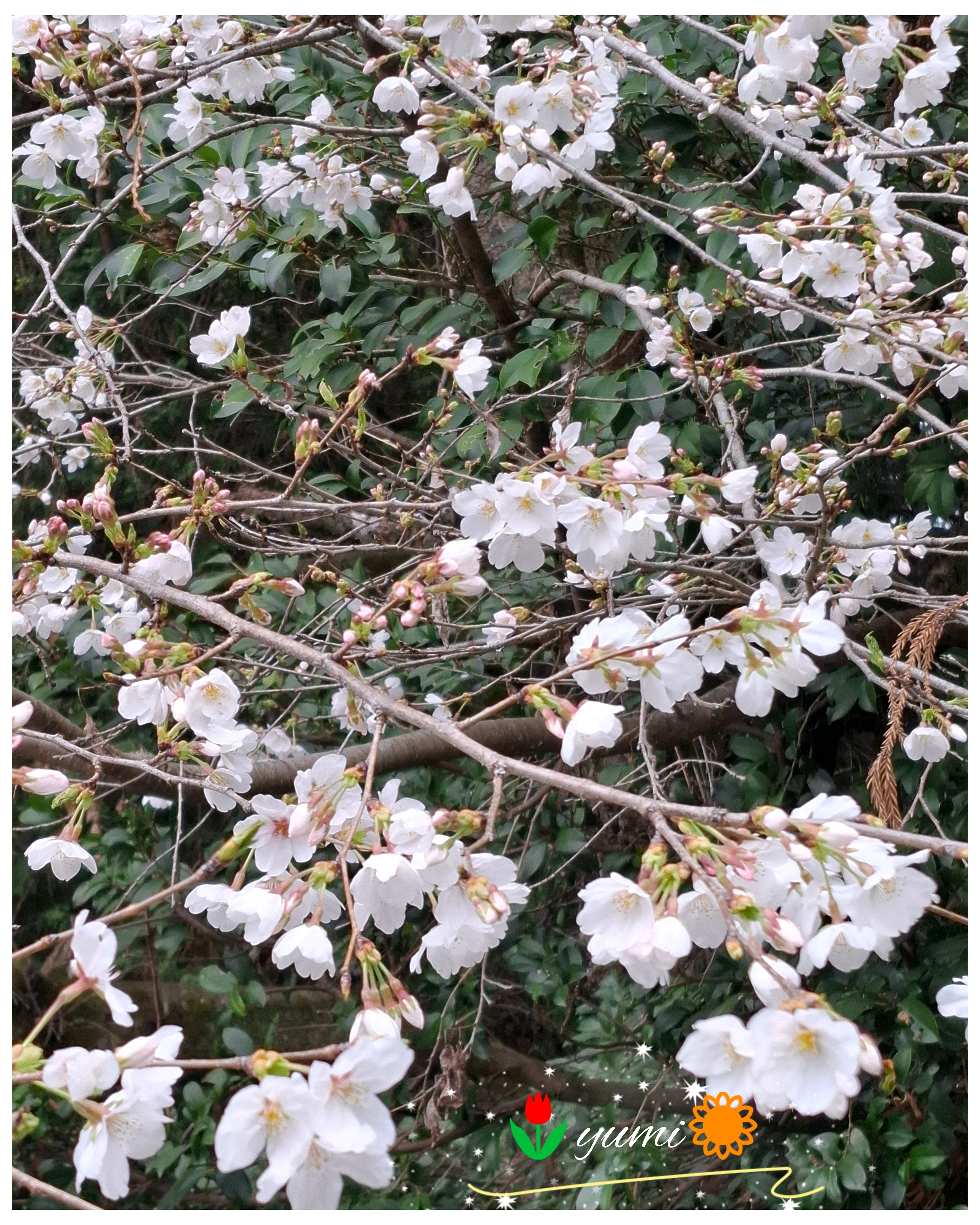 こちらにも何本かあるんだけど、どの木もまばらに咲いてる。