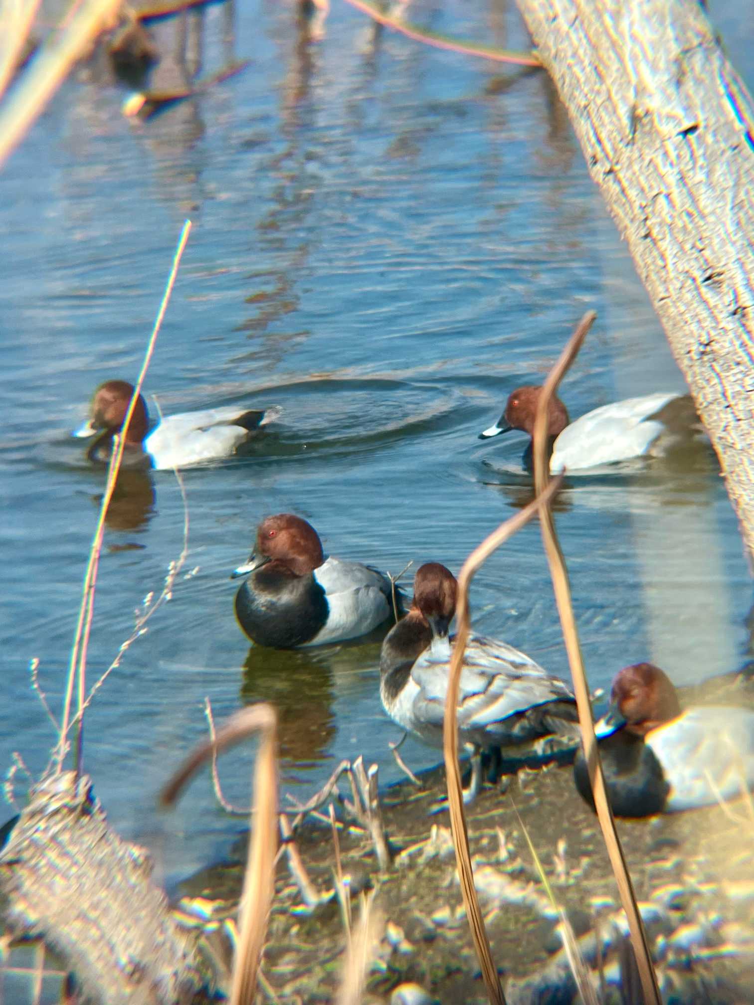 ホシハジロのグループ、、、水鳥たちもだいぶん数が減ってきました。
