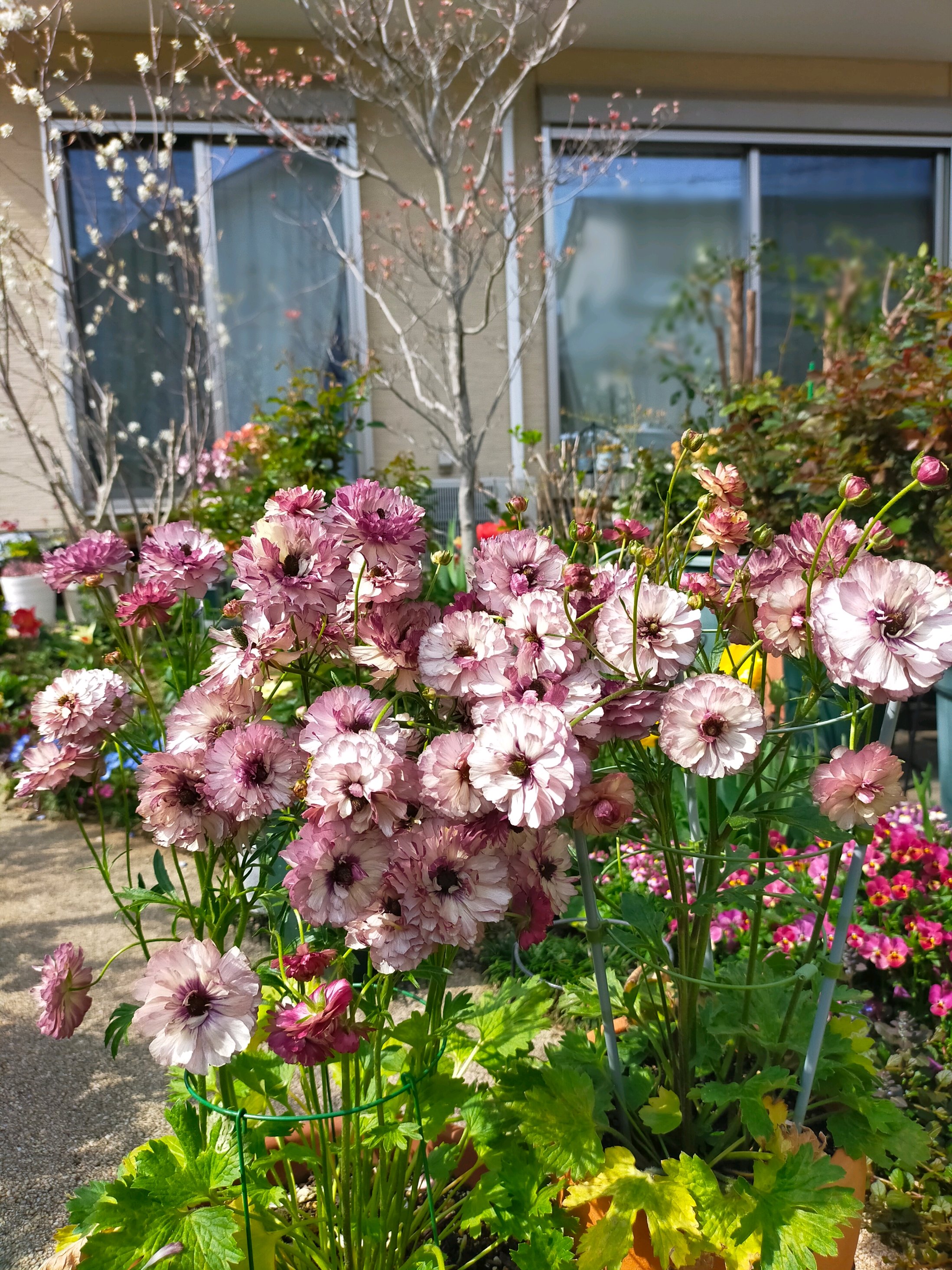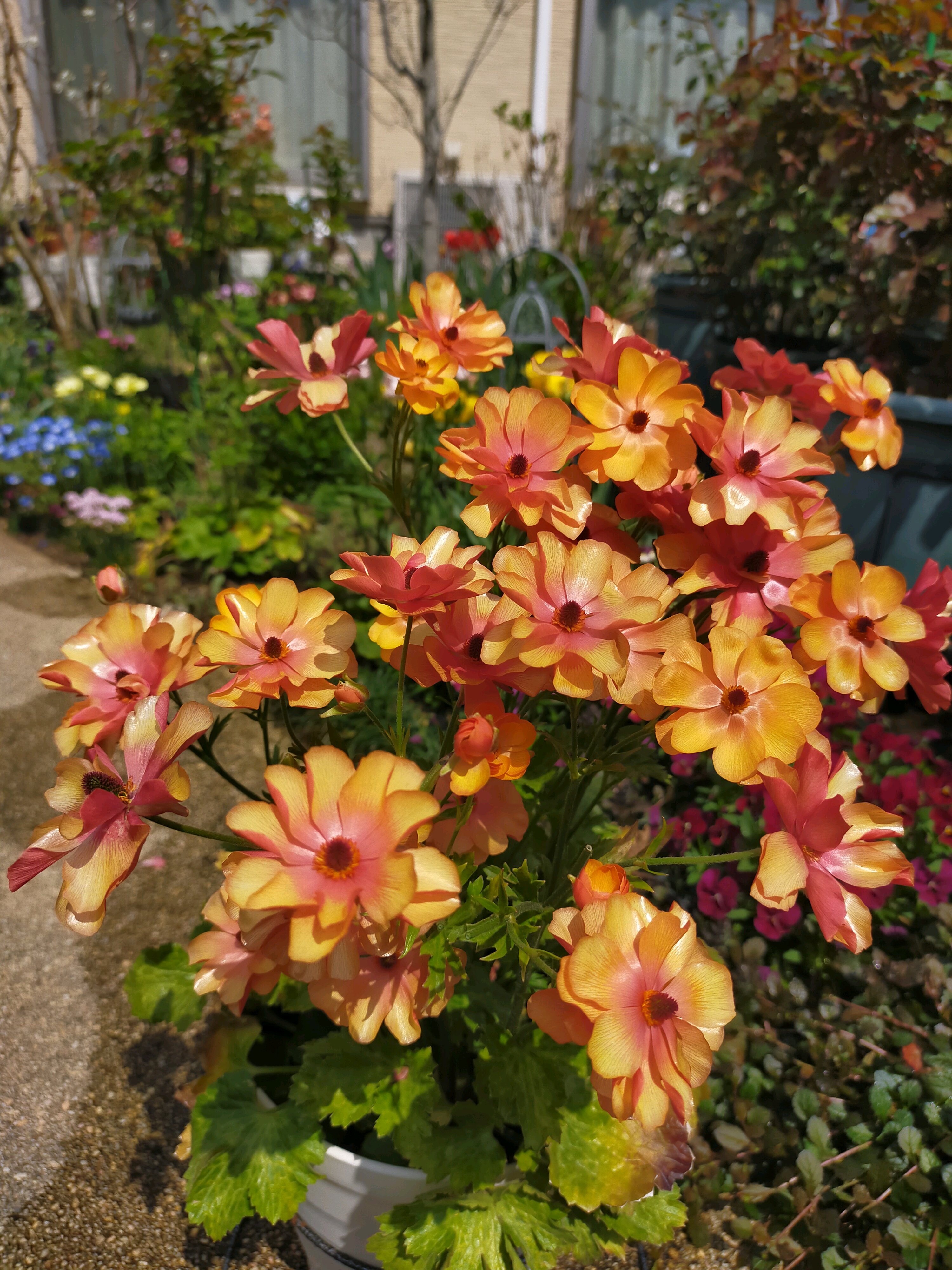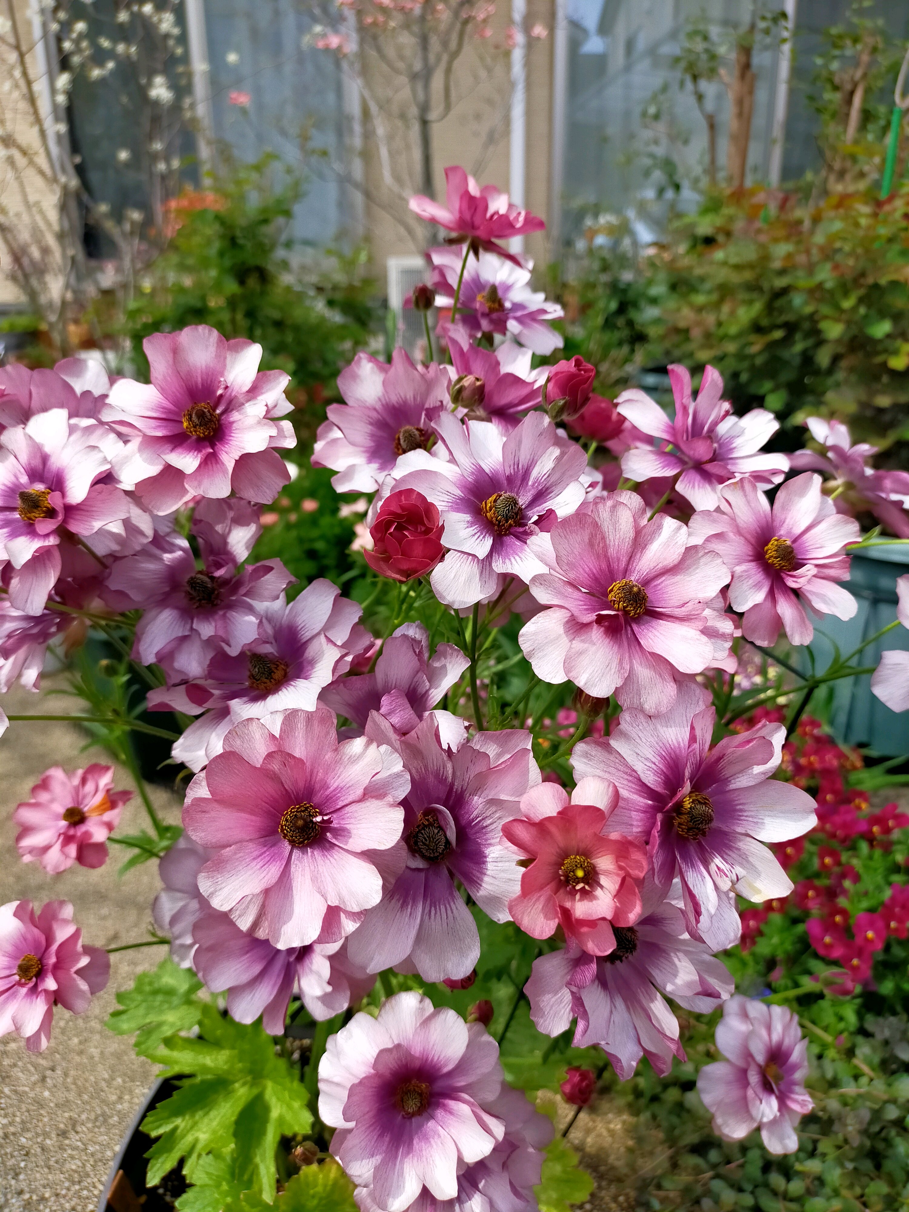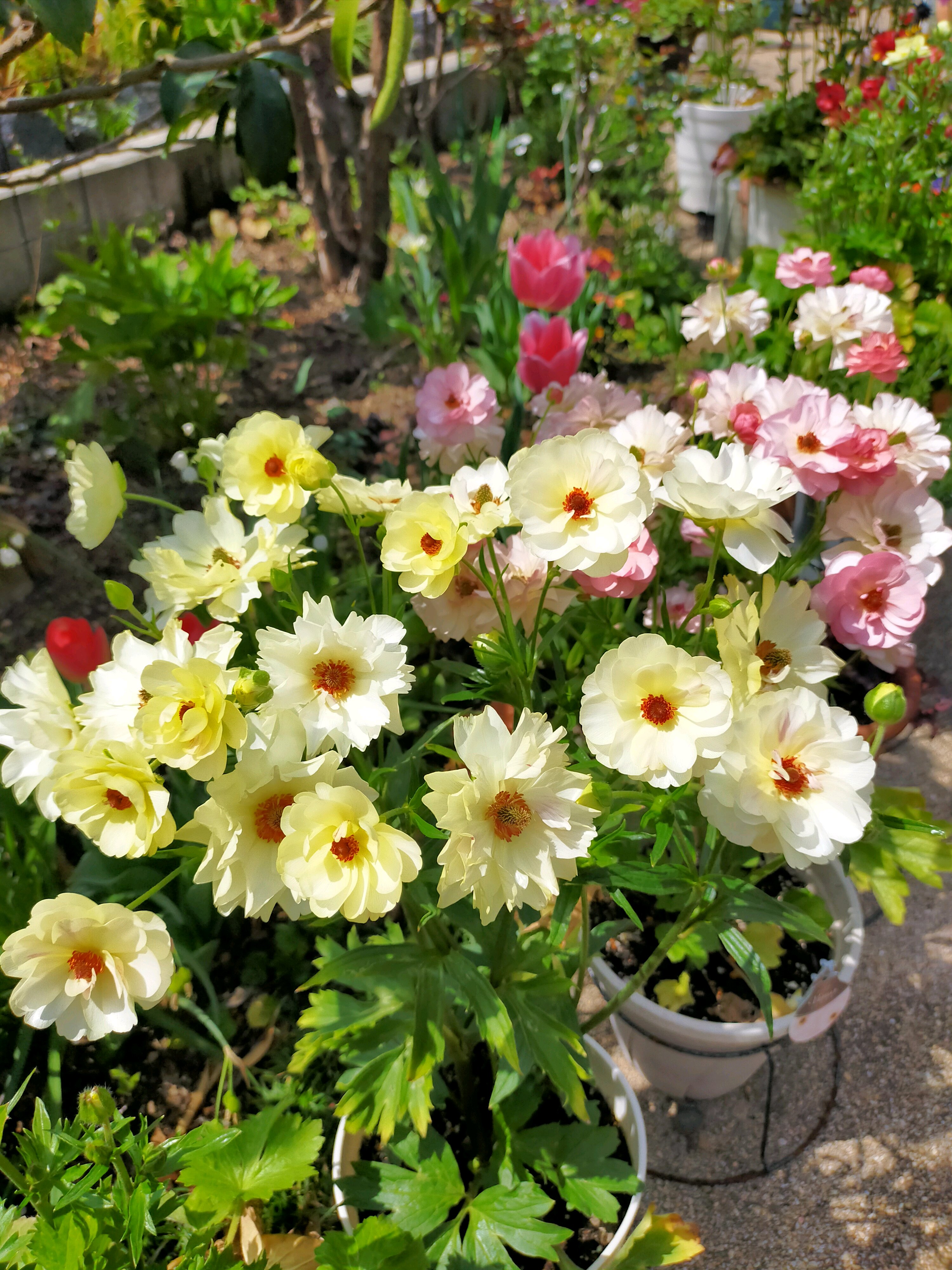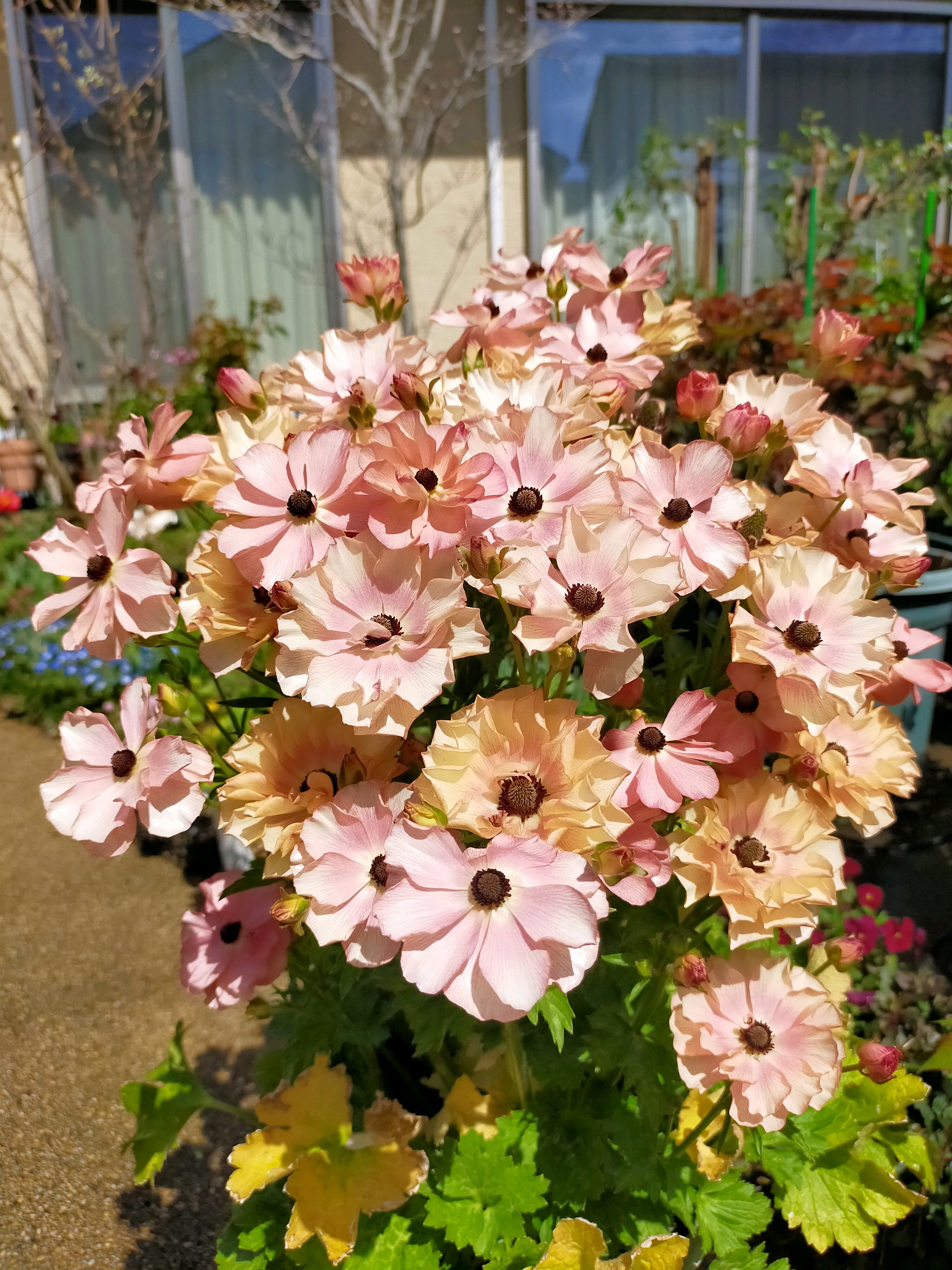 アプローチに集合してるラナンキュラスちゃんたちは、まるでお花屋さんデス😃