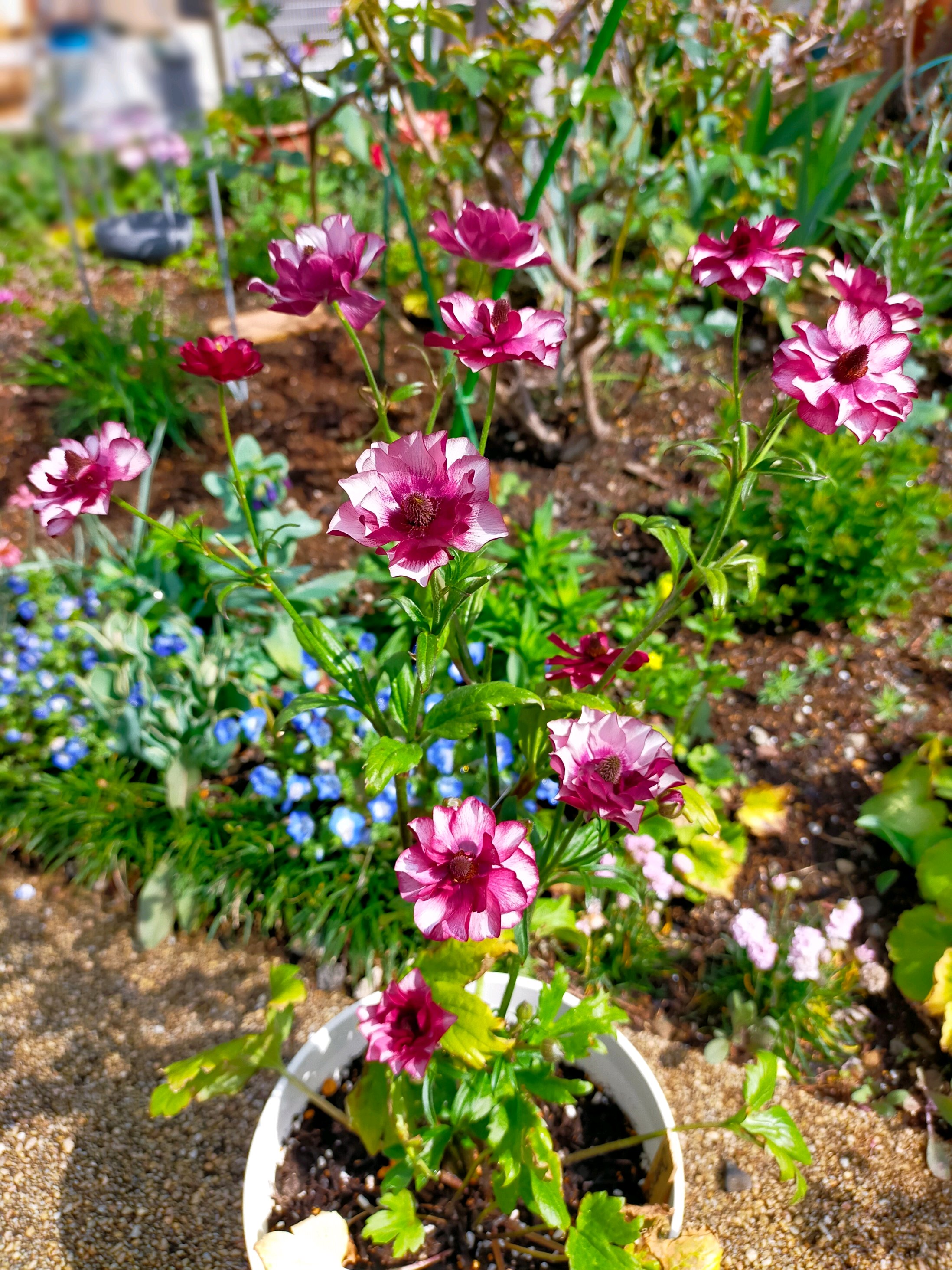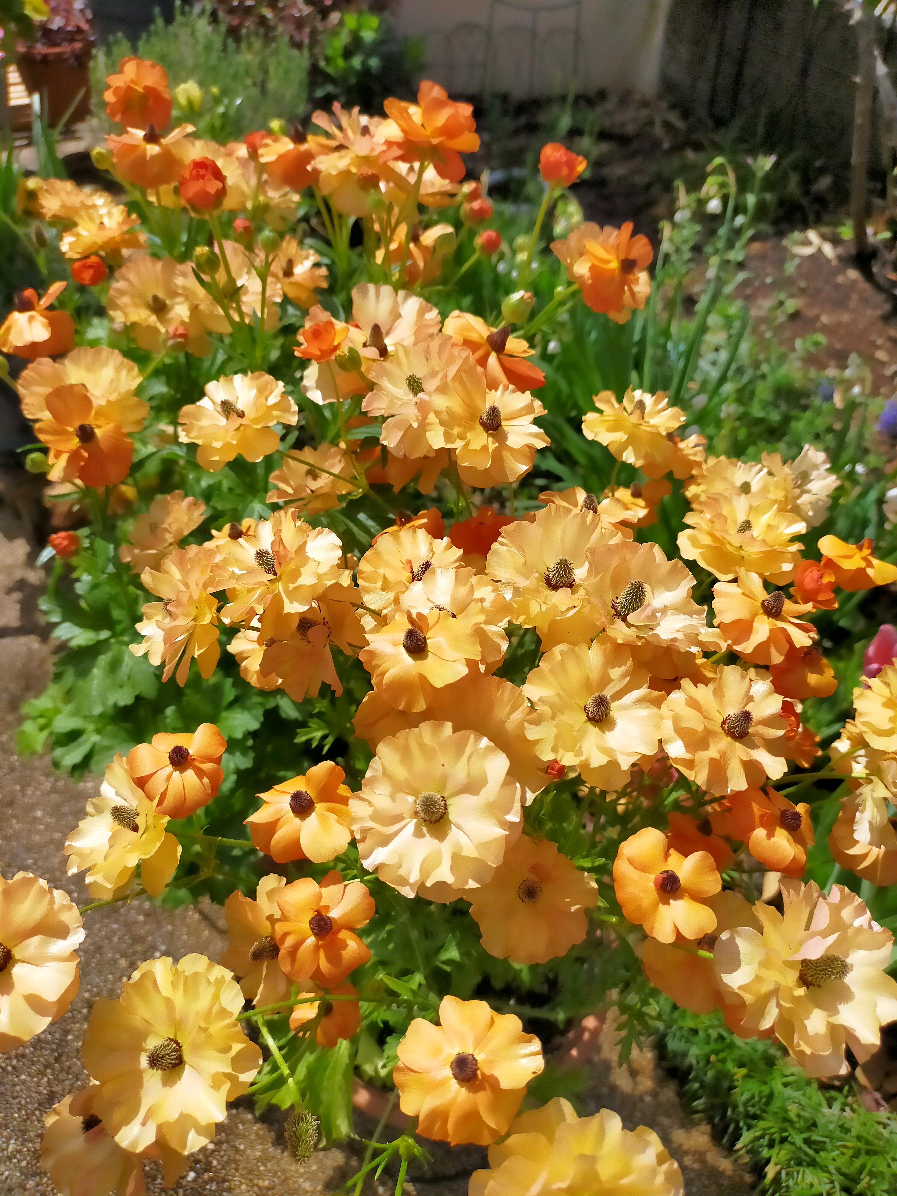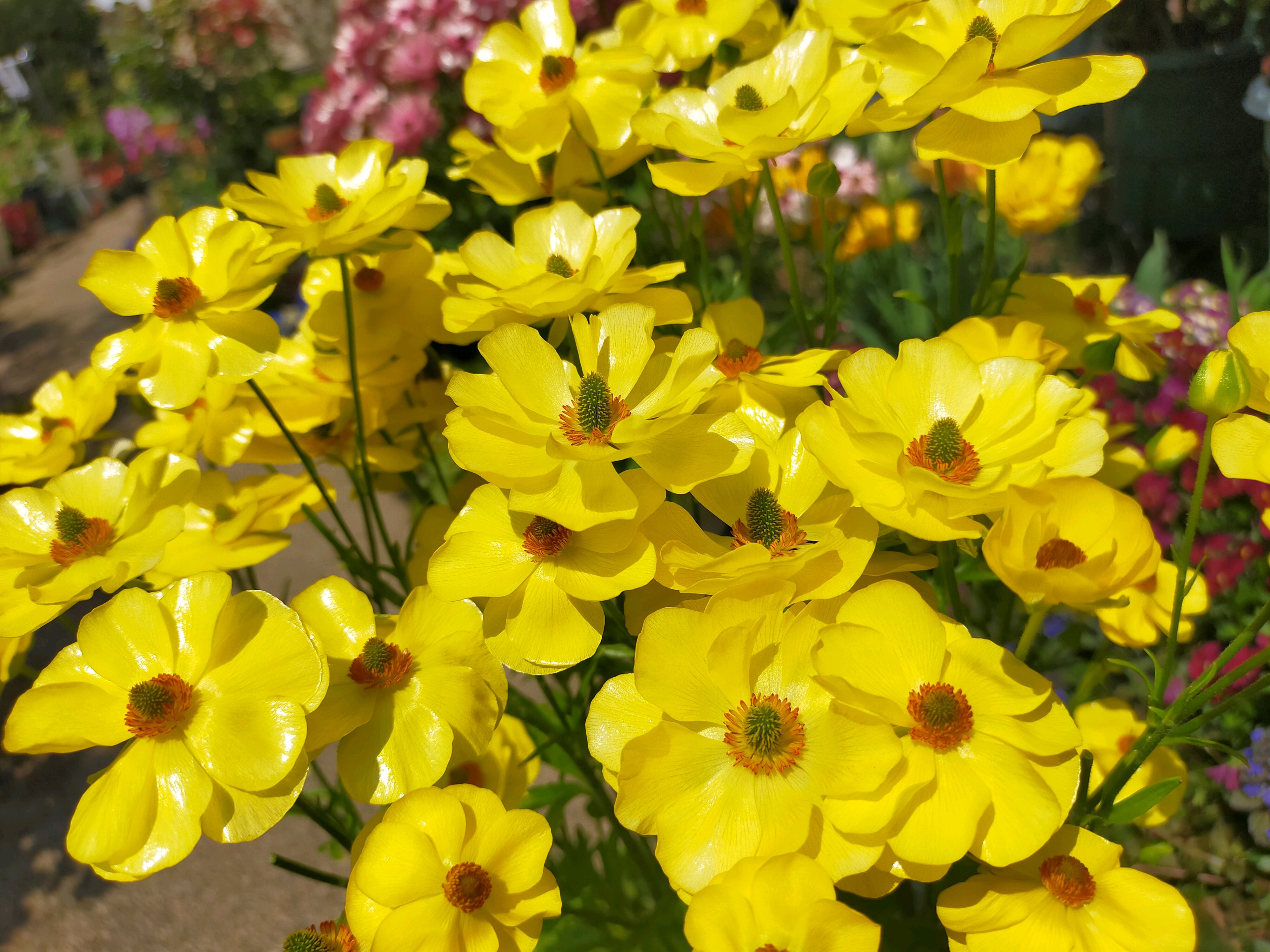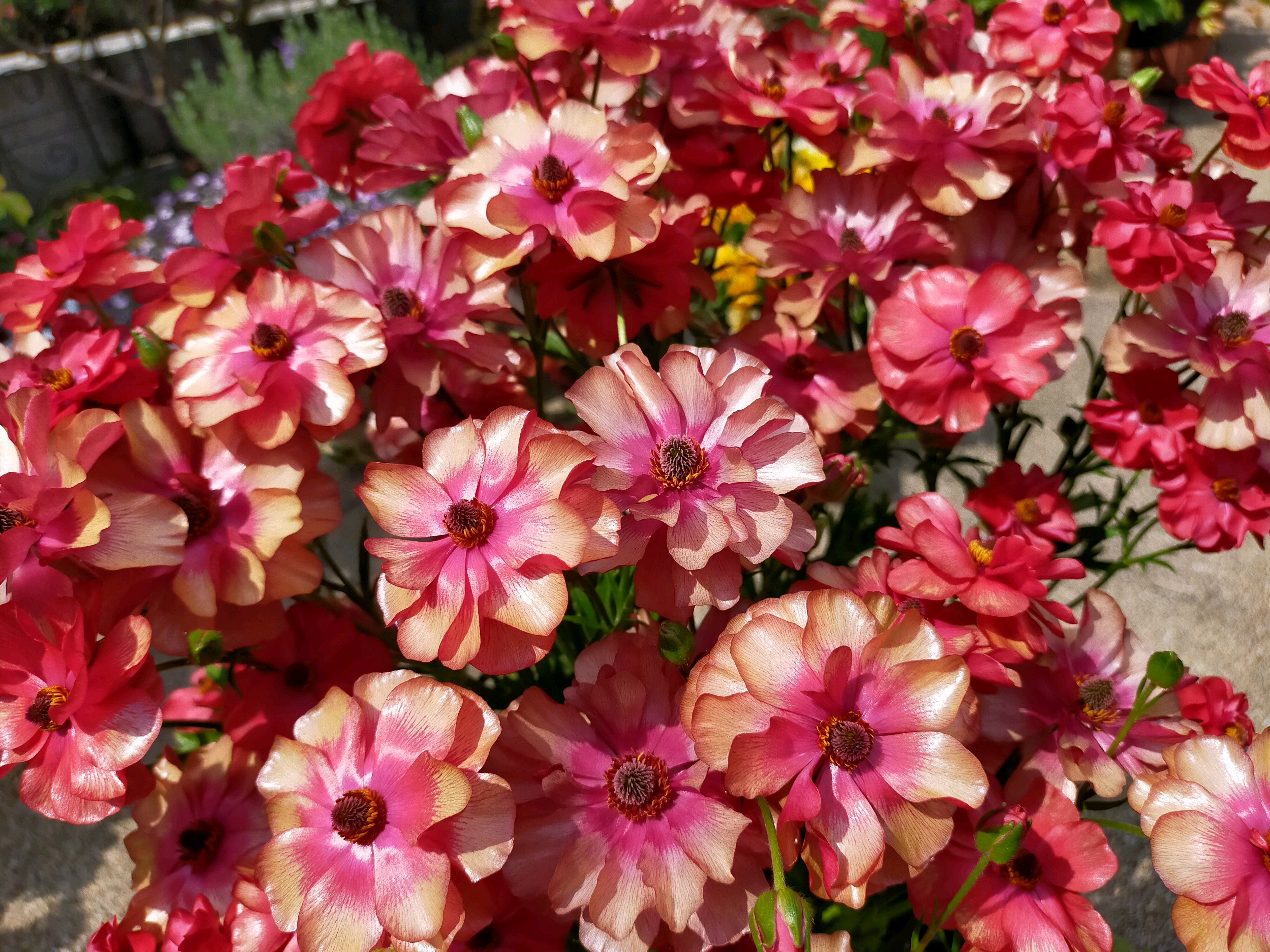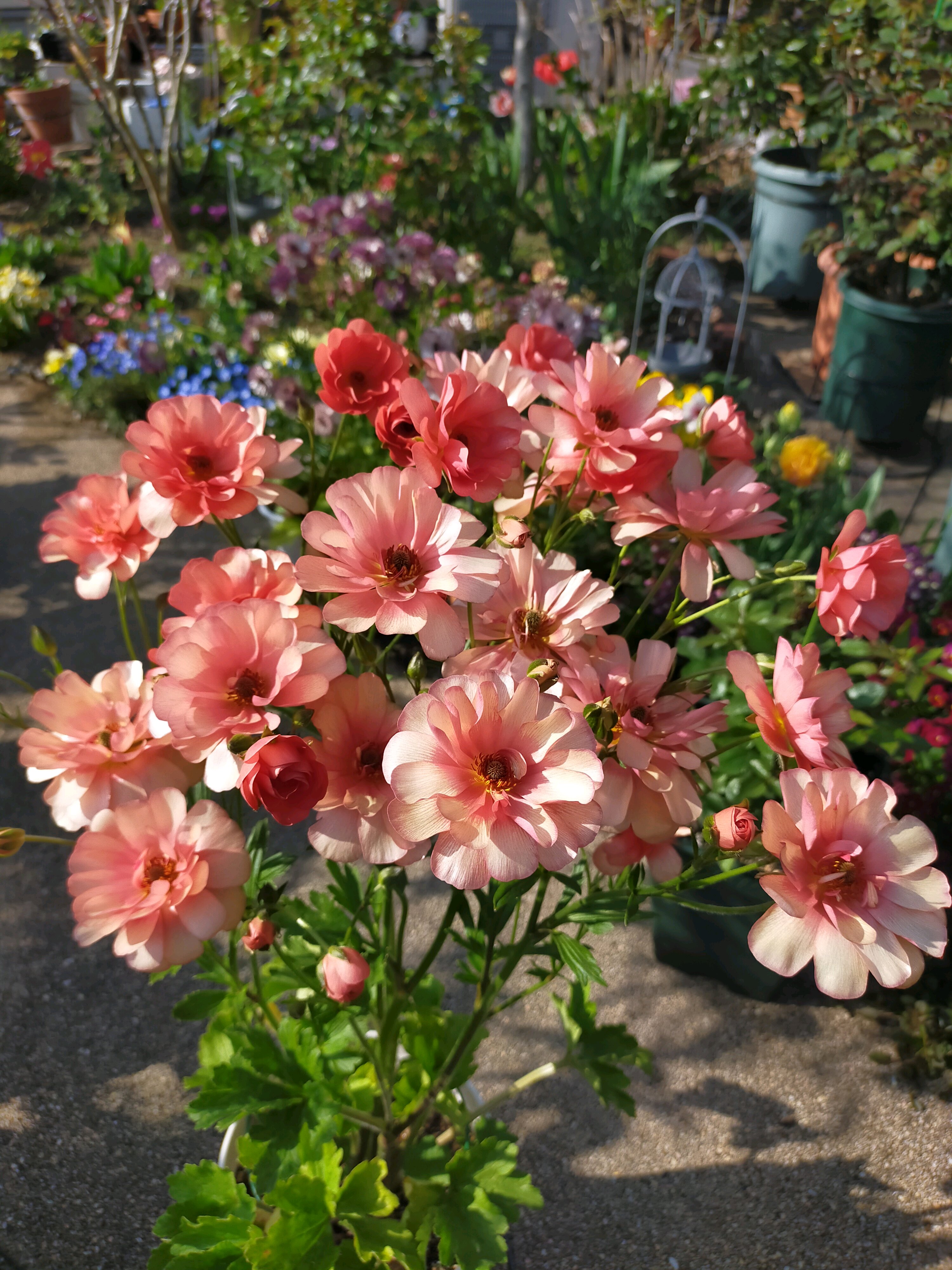 アプローチに集合してるラナンキュラスちゃんたちは、まるでお花屋さんデス😃