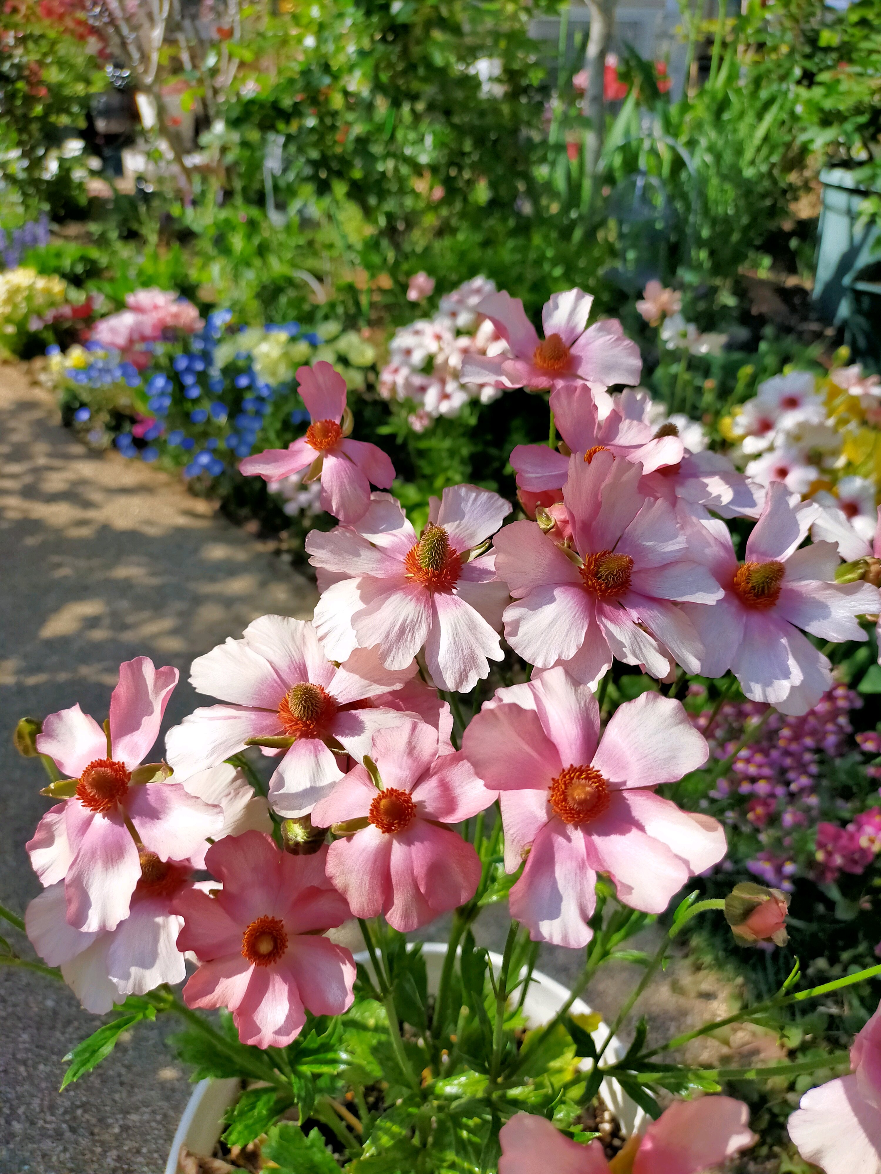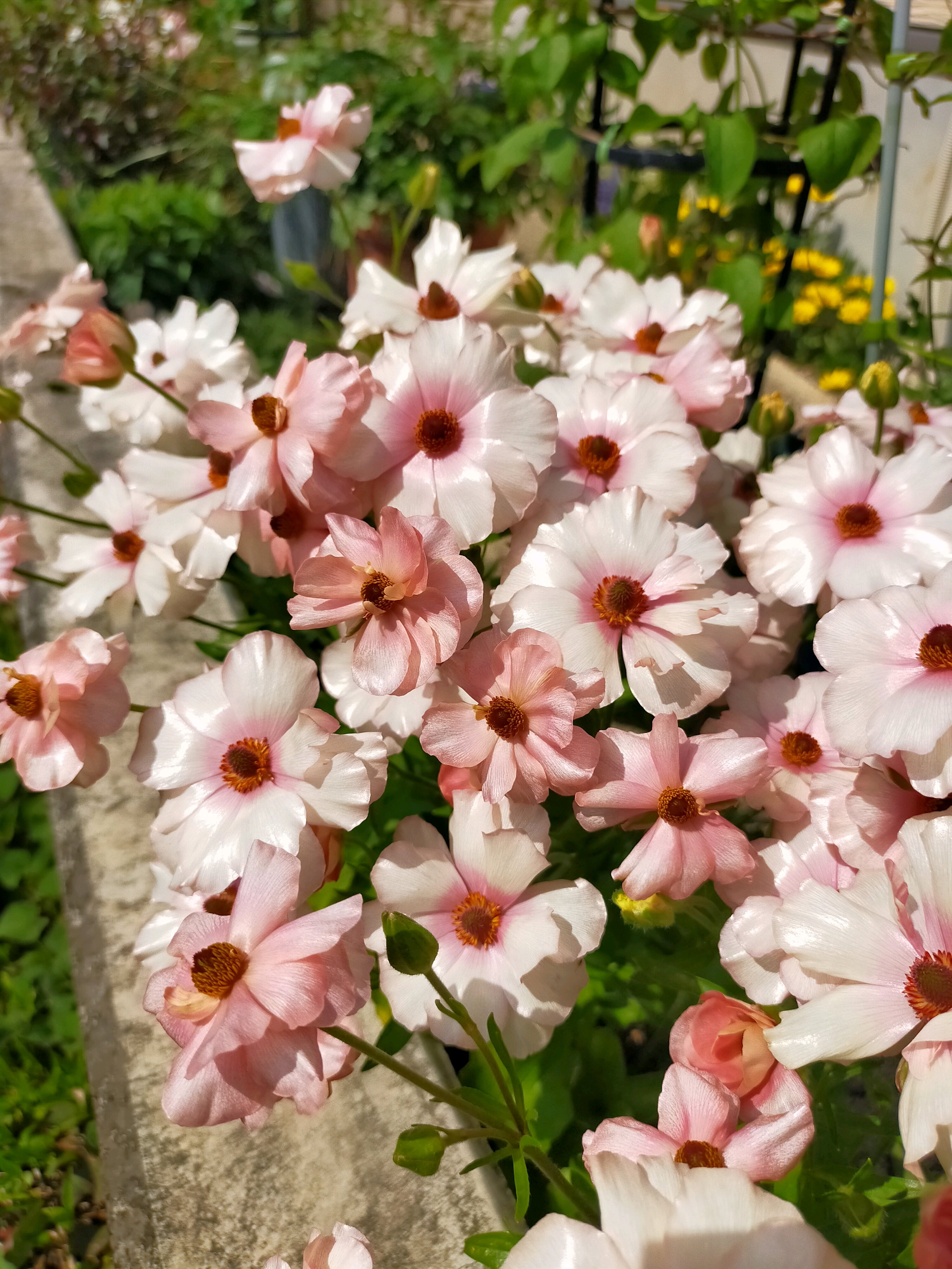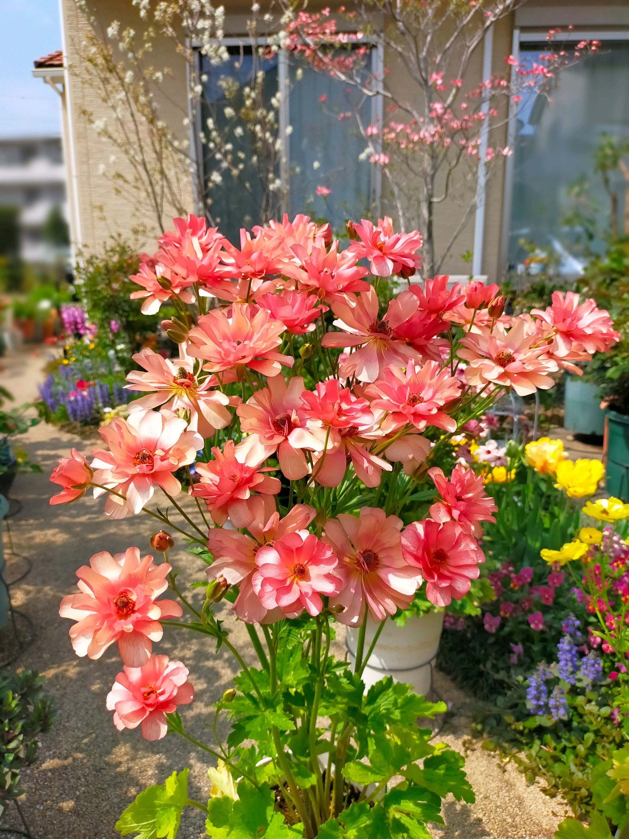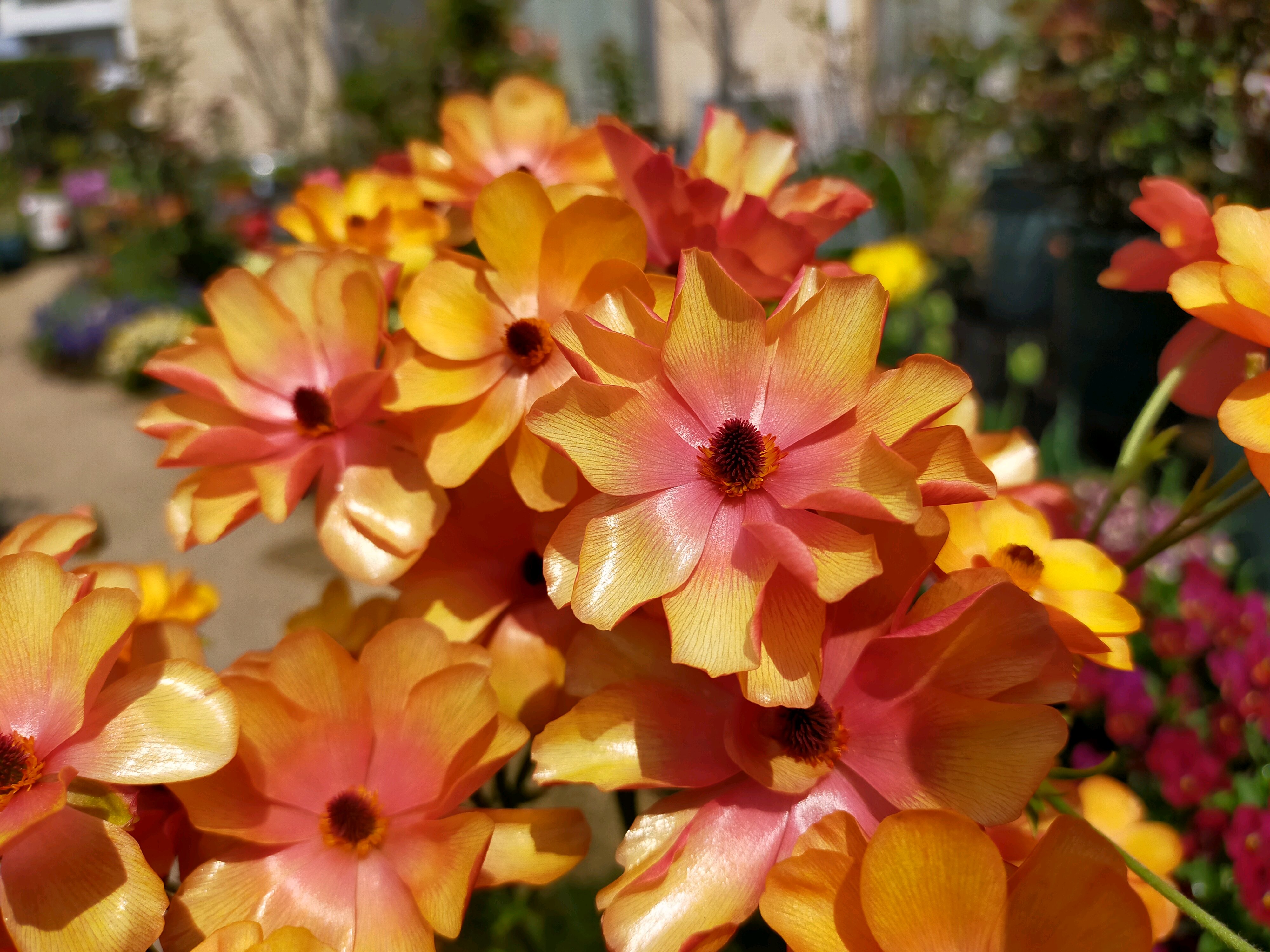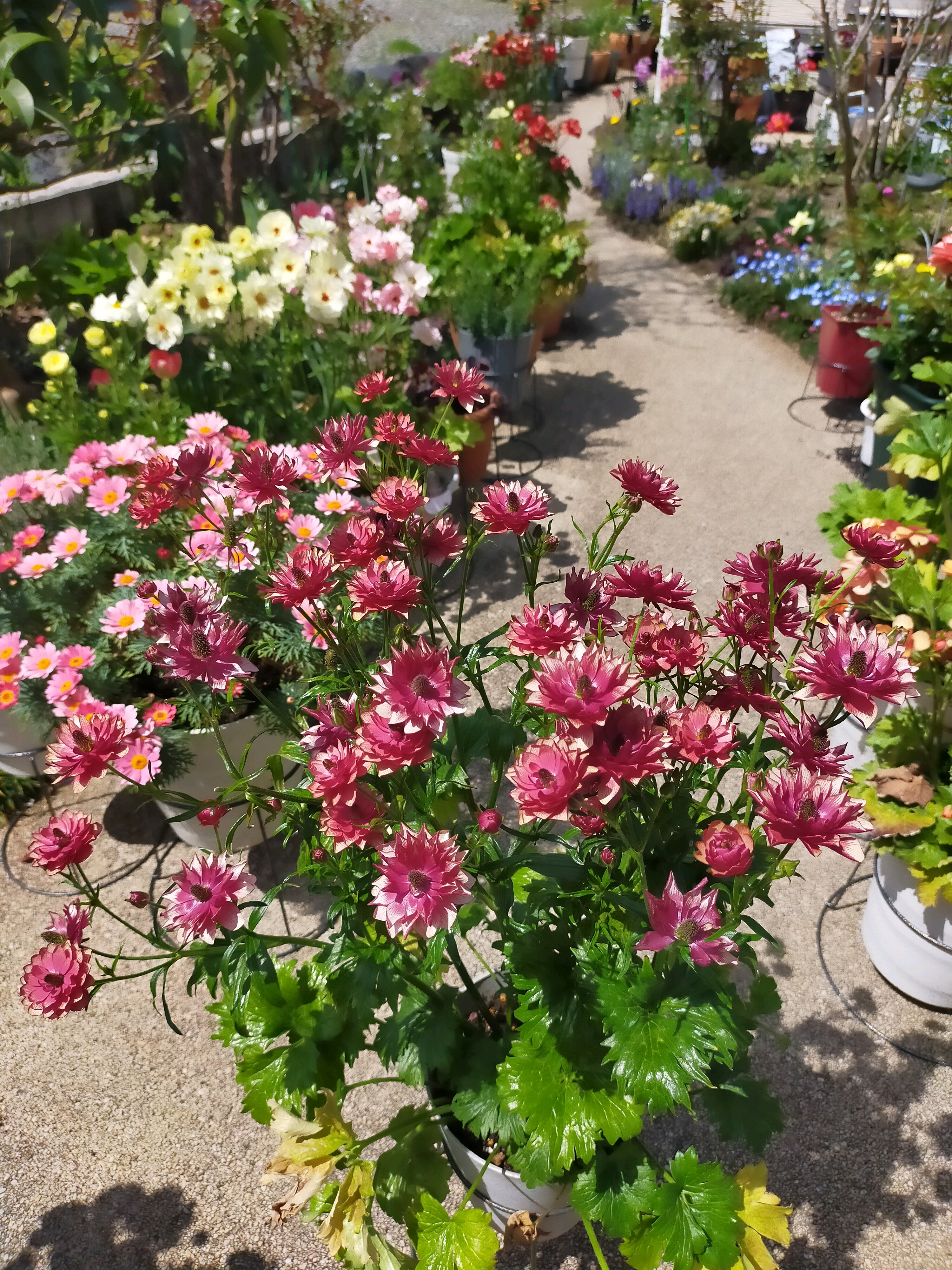アプローチに集合してるラナンキュラスちゃんたちは、まるでお花屋さんデス😃