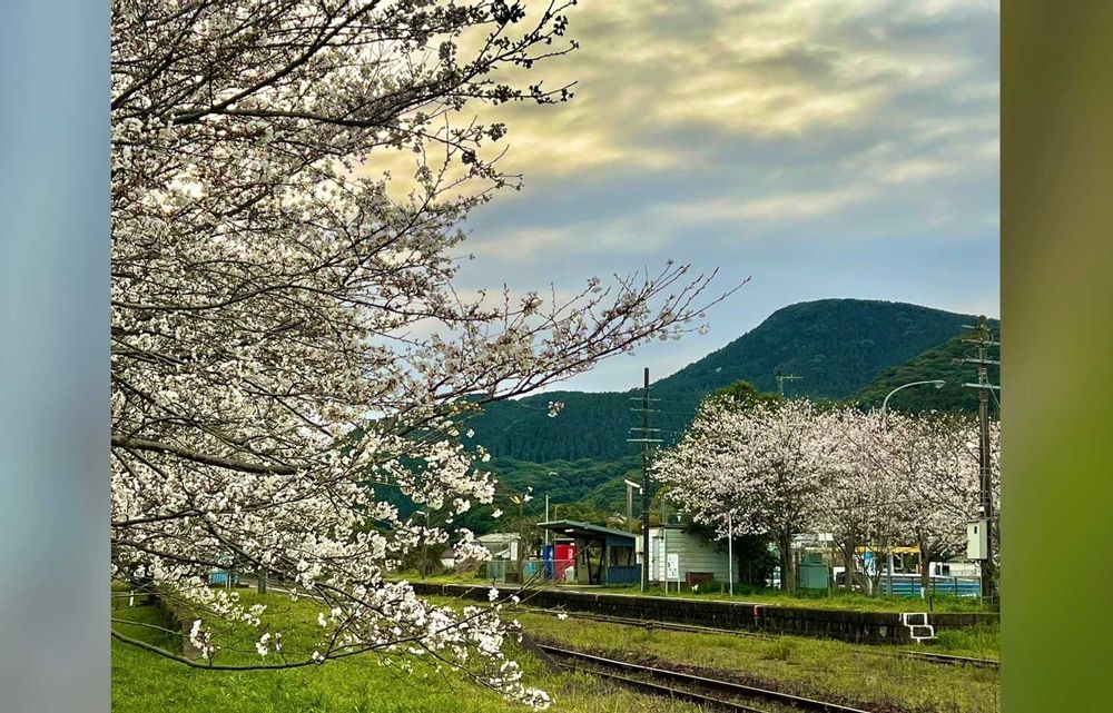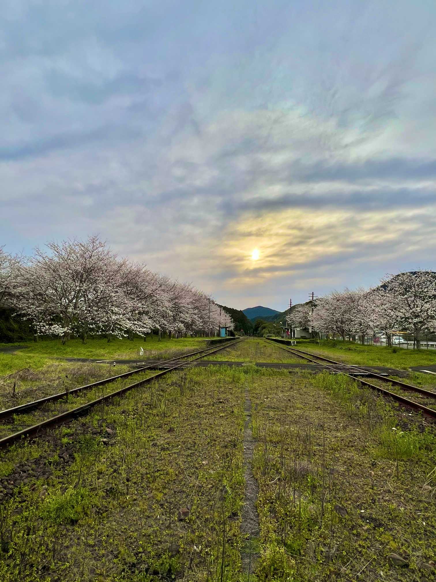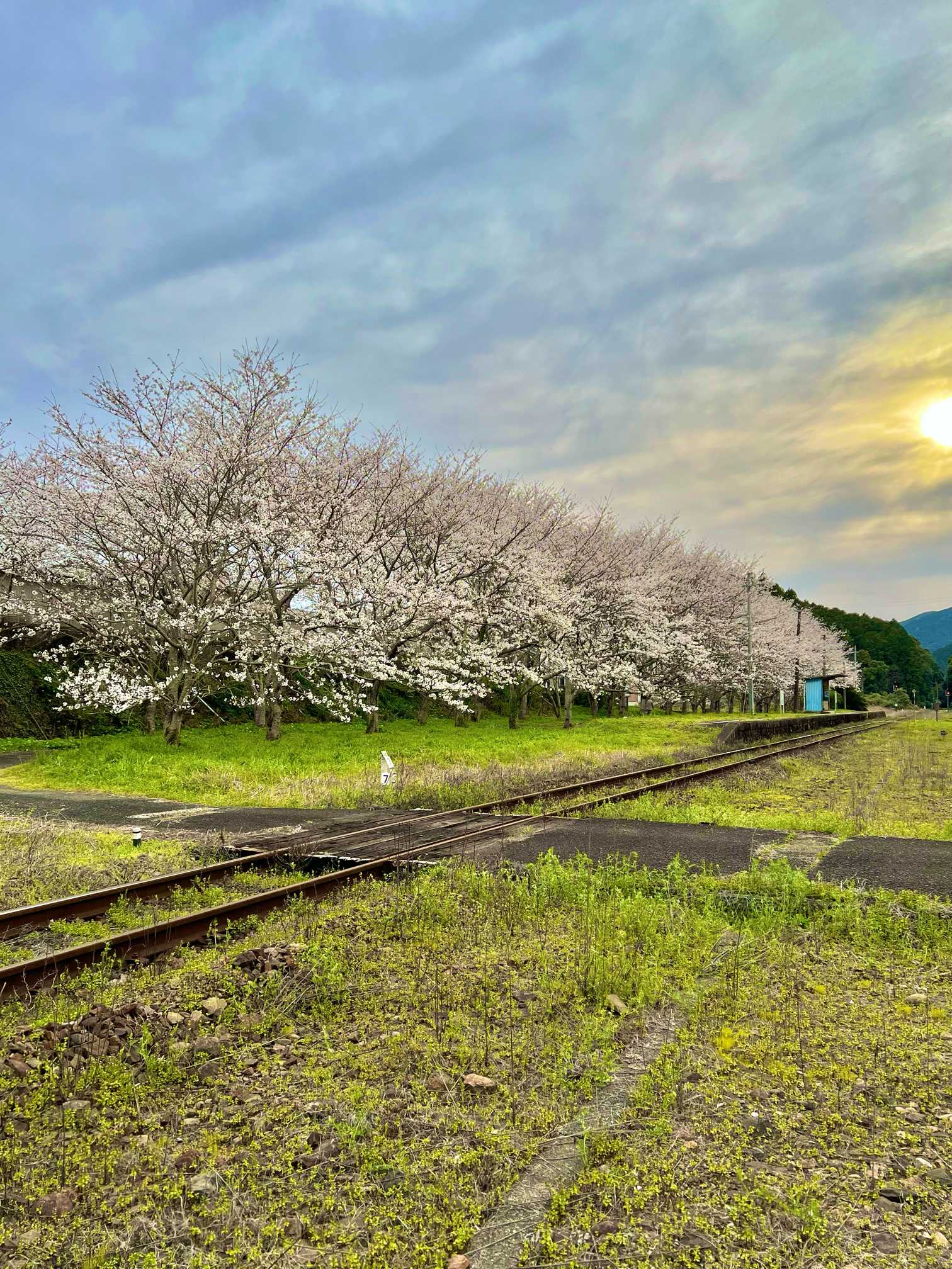 松浦鉄道沿線では桜がある駅が多くありますが、ここ、よしい駅は駅横に桜並木の歩道があります。まさに桜のトンネルです。