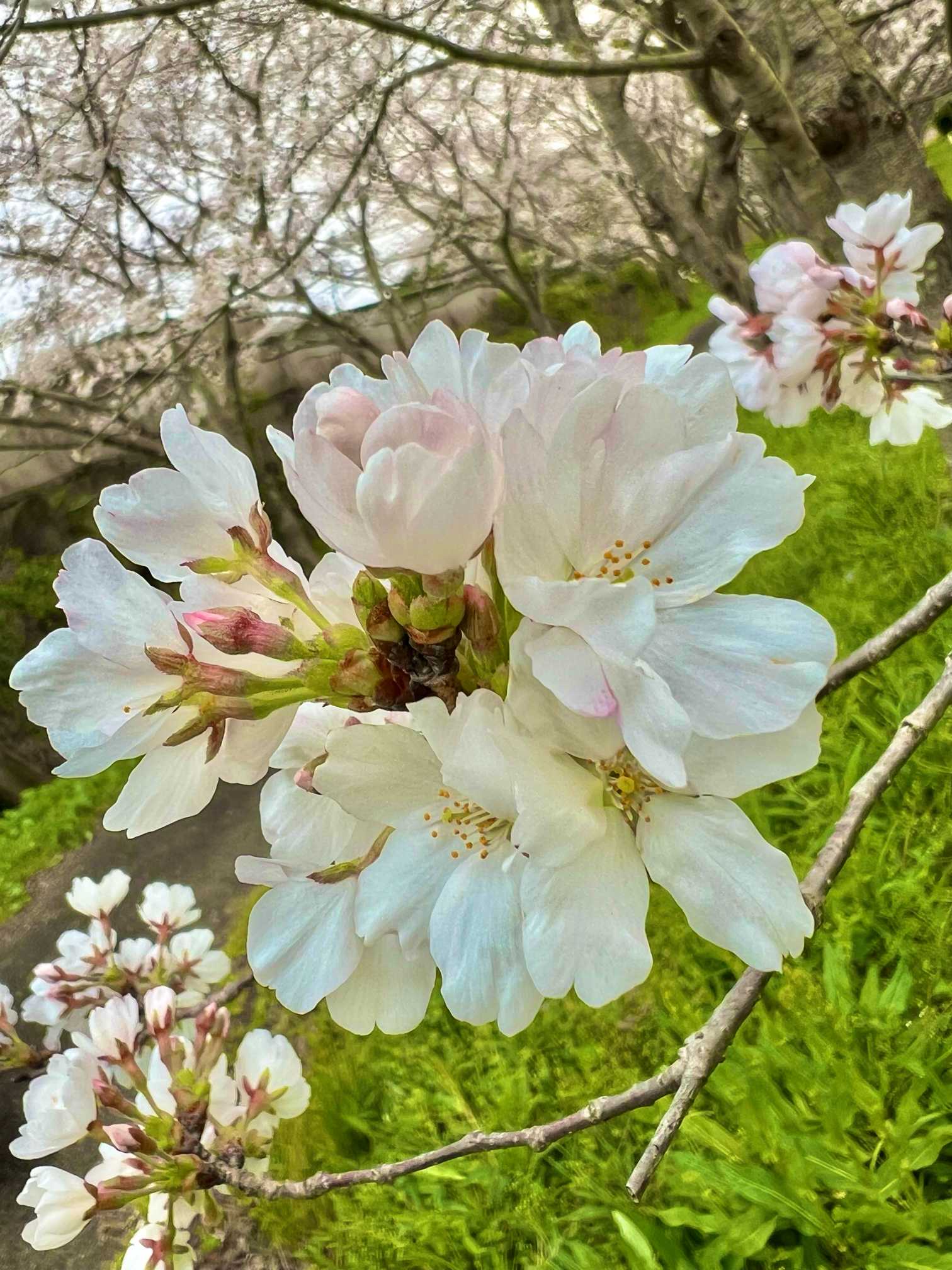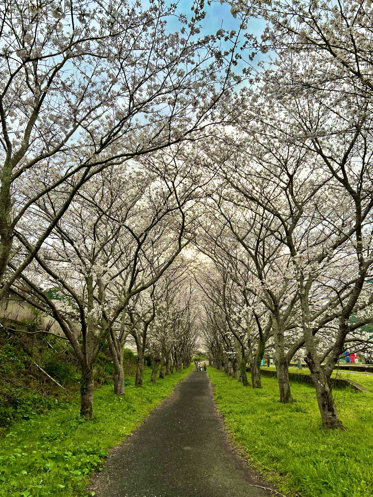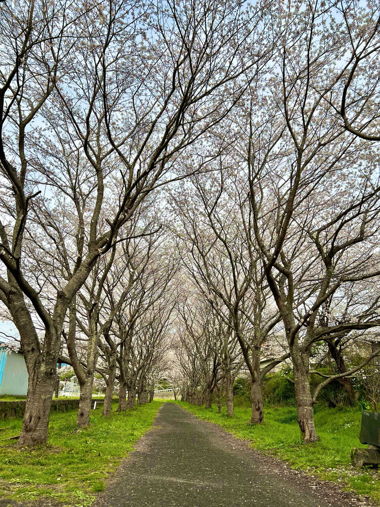 住宅地に通じる歩道は、ホームより長い見事な桜のトンネルです。