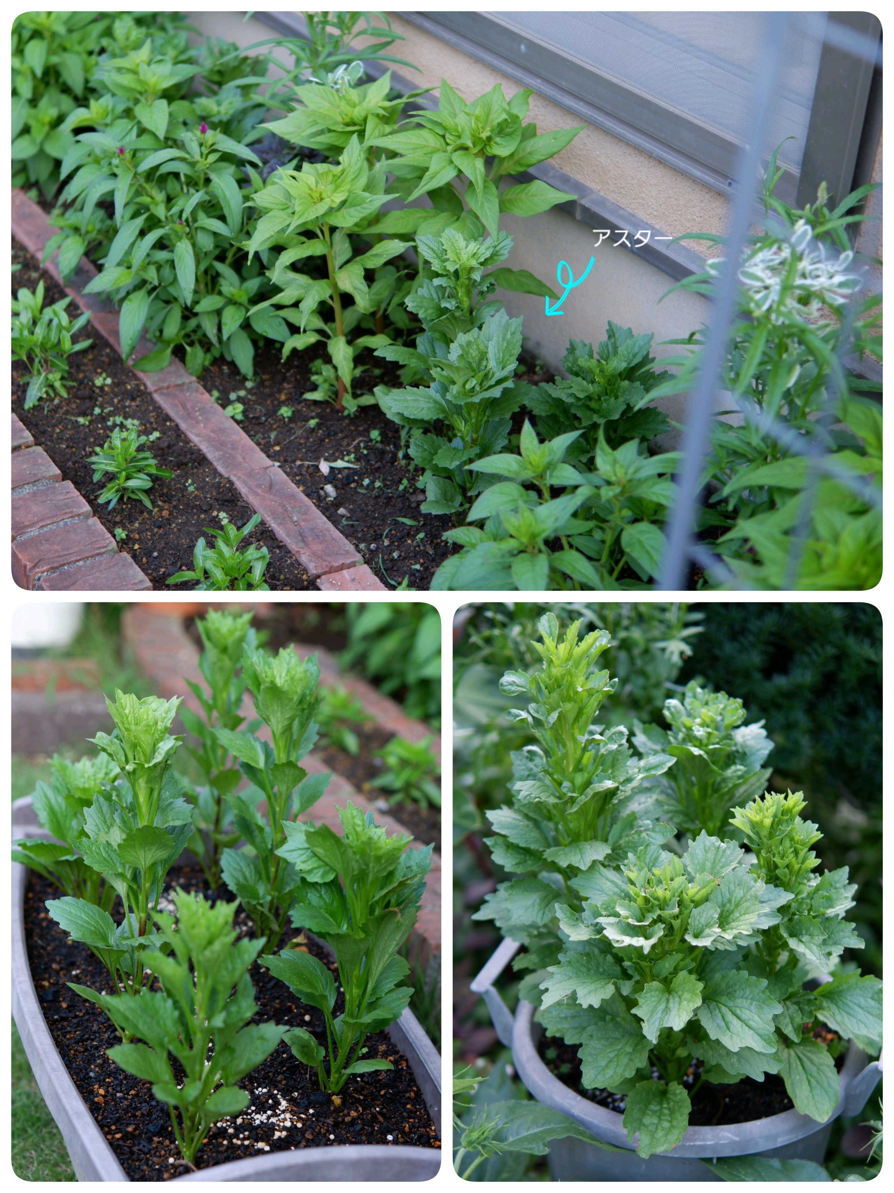 違う色の花が咲いてくれるように、生育具合が違う苗を植えました。
