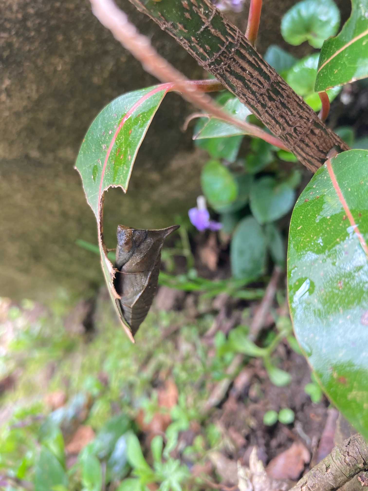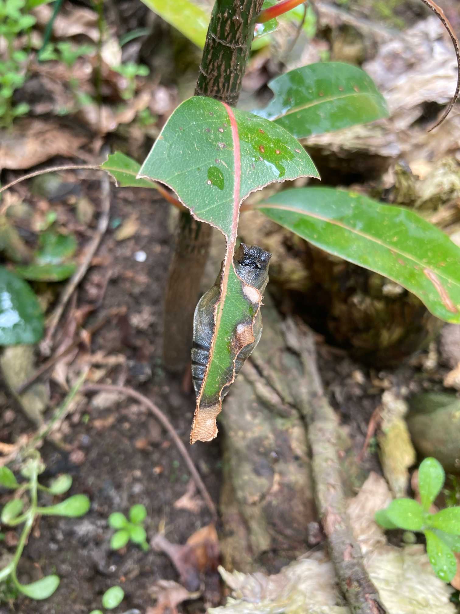 去年9月から観察してるタブの木のアオスジアゲハですが茶色と言う事は、このまま育つのでしょうか?