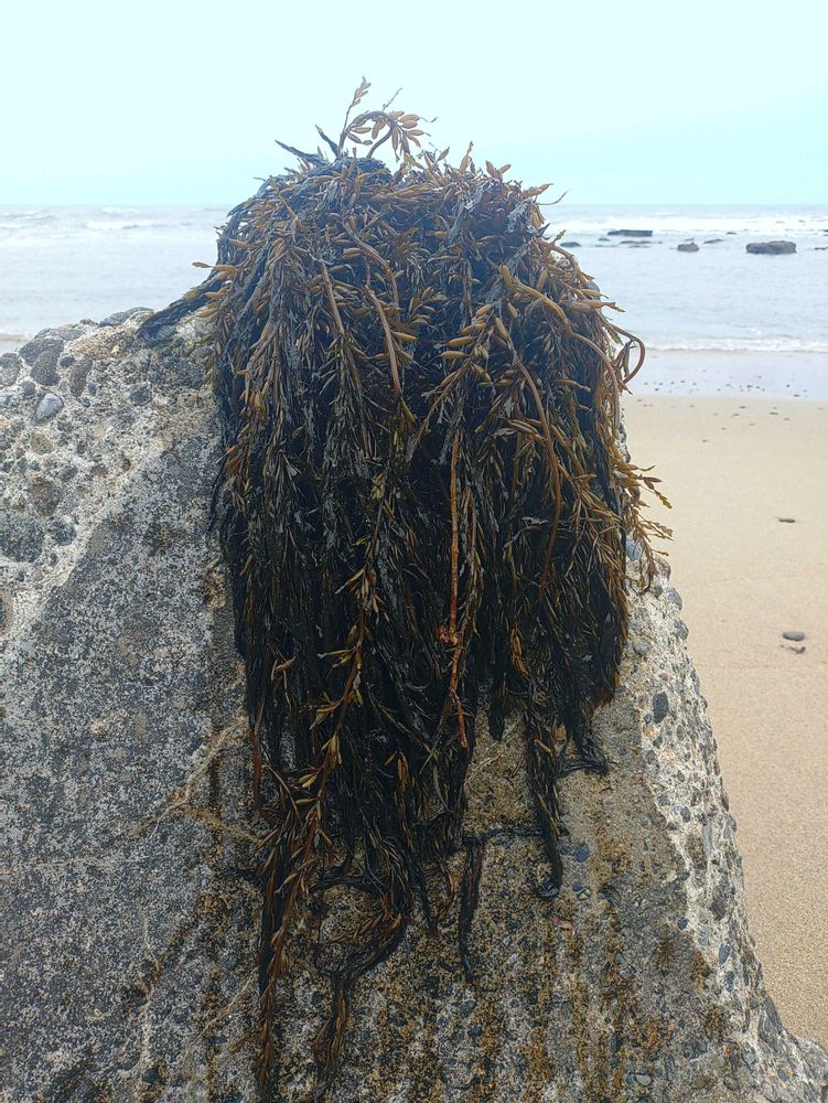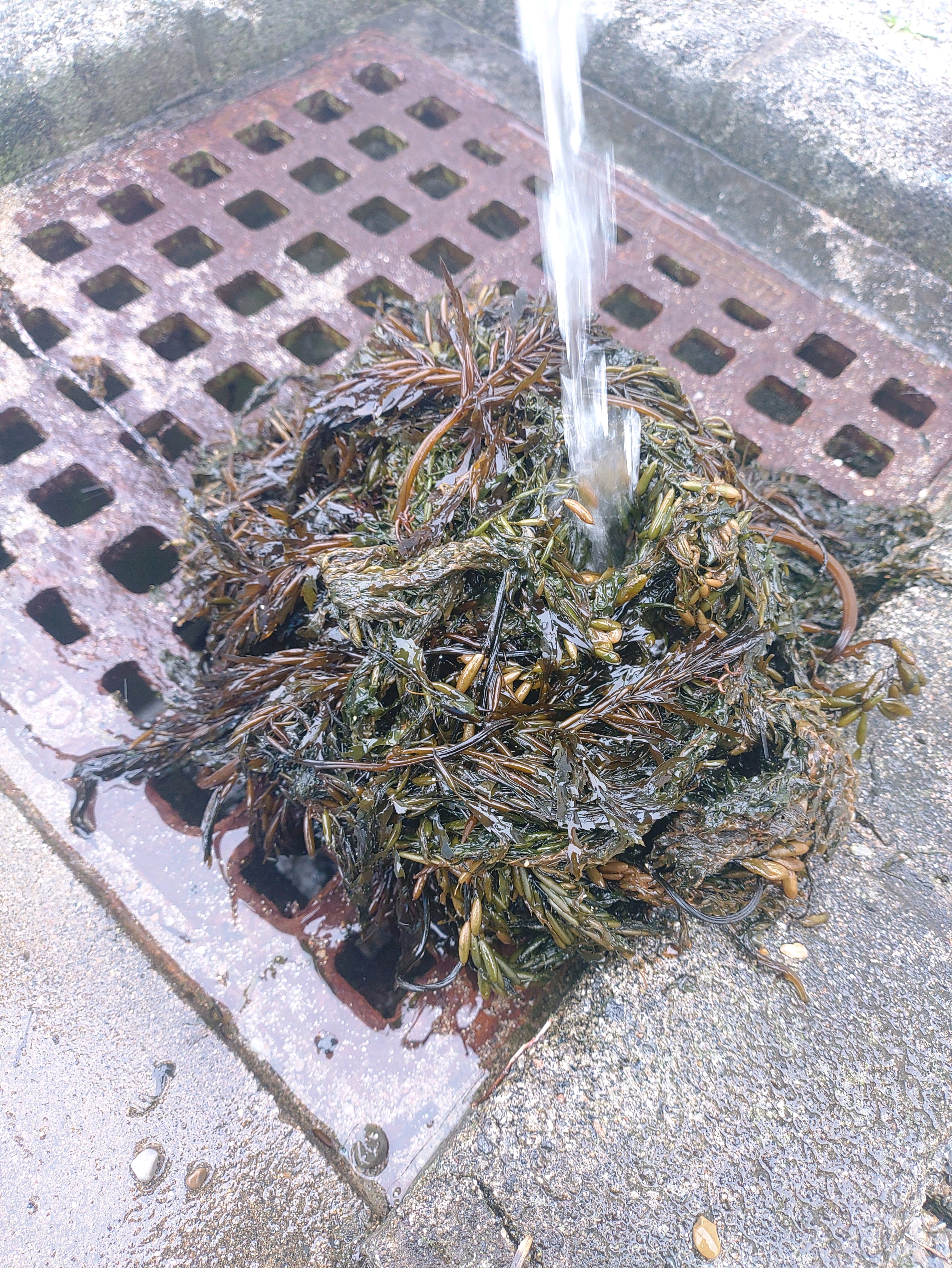 家の下の海岸のあちこちで打ち上げられる海藻類