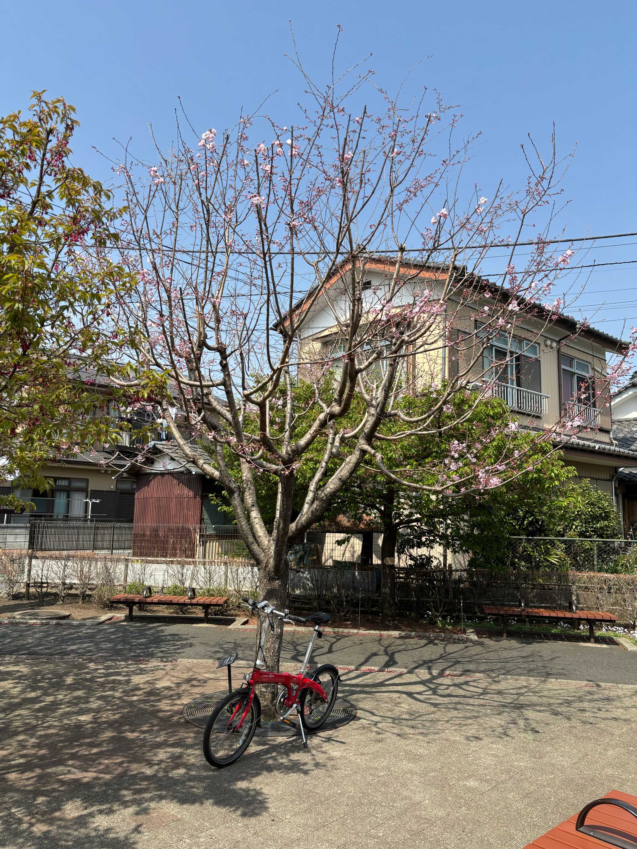 相棒のDAHON🚲も見上げてるよ😅