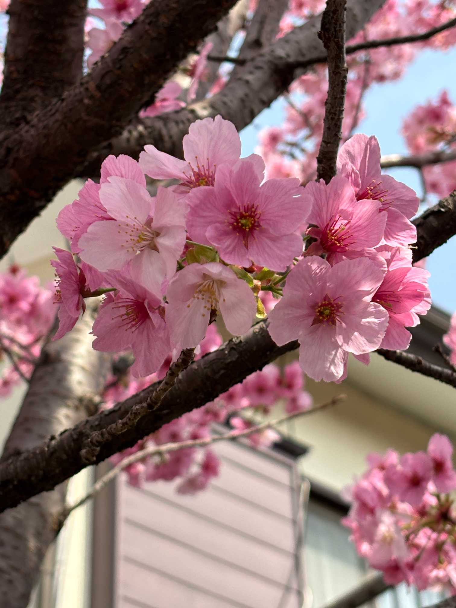割りと上を向いて咲くので青空に映えるね😄