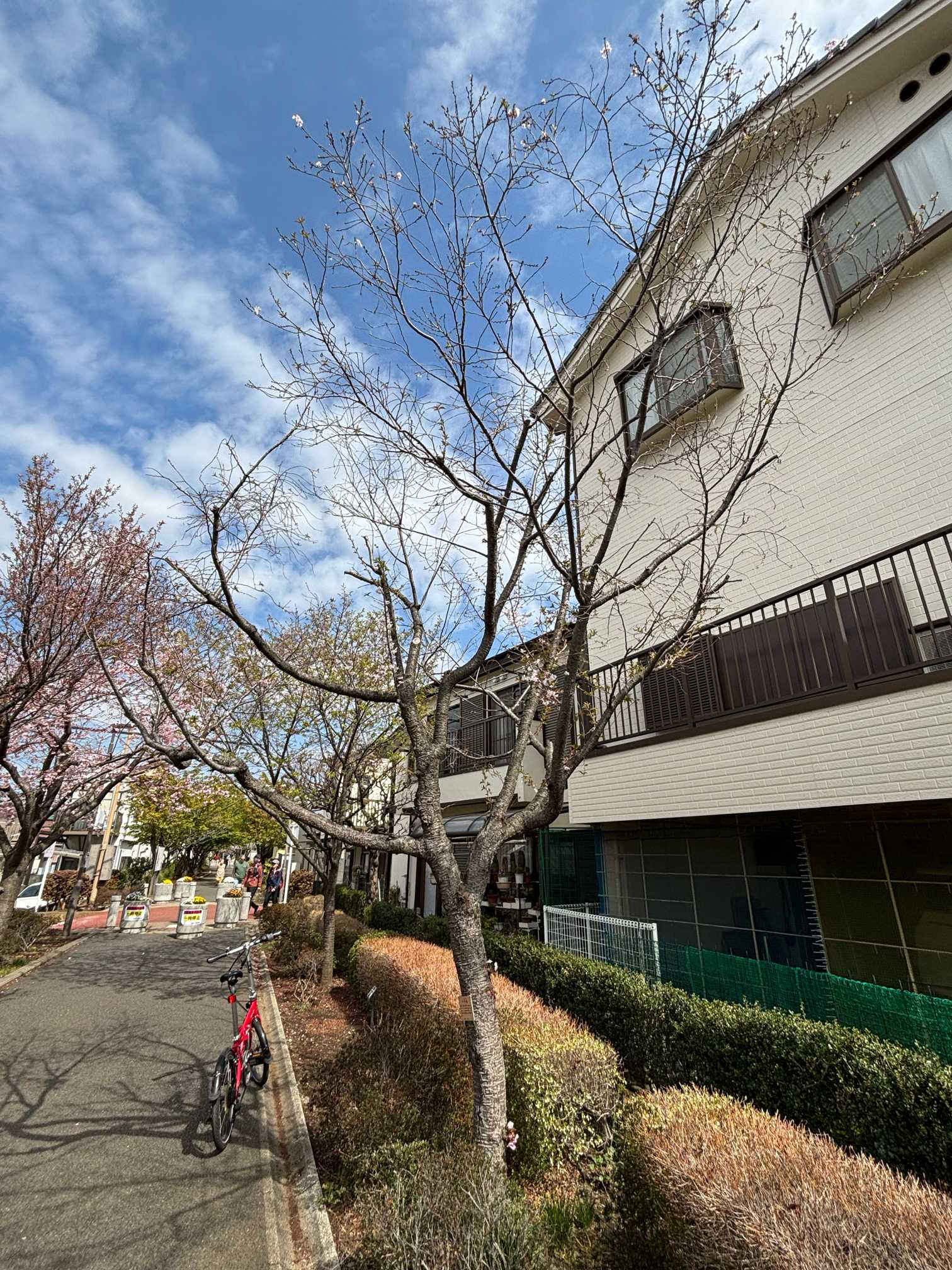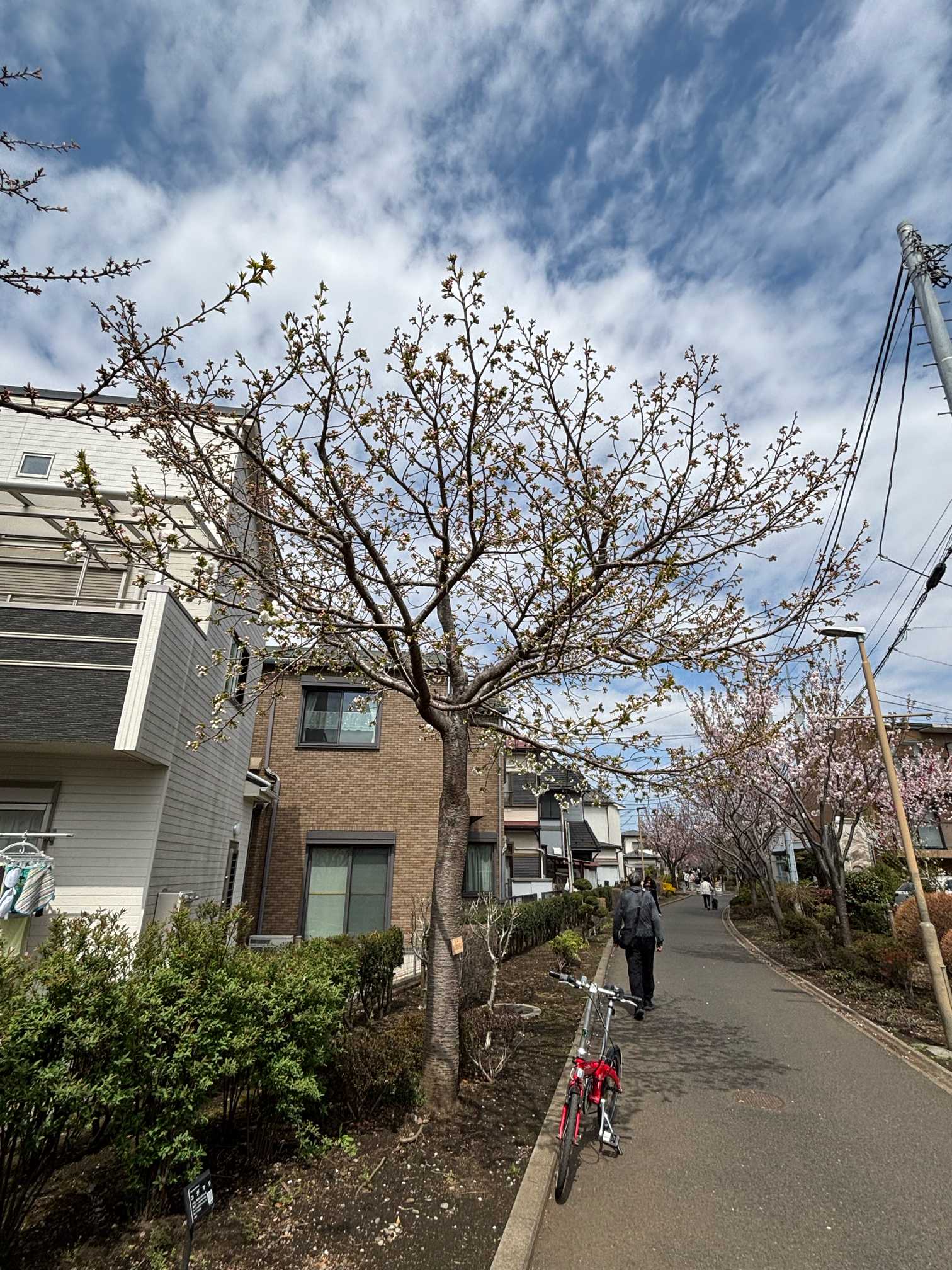 仲よし小道で、多分1本だけのソメイヨシノ。かなりの古木です。枝が剪定されて、花は少ないです
