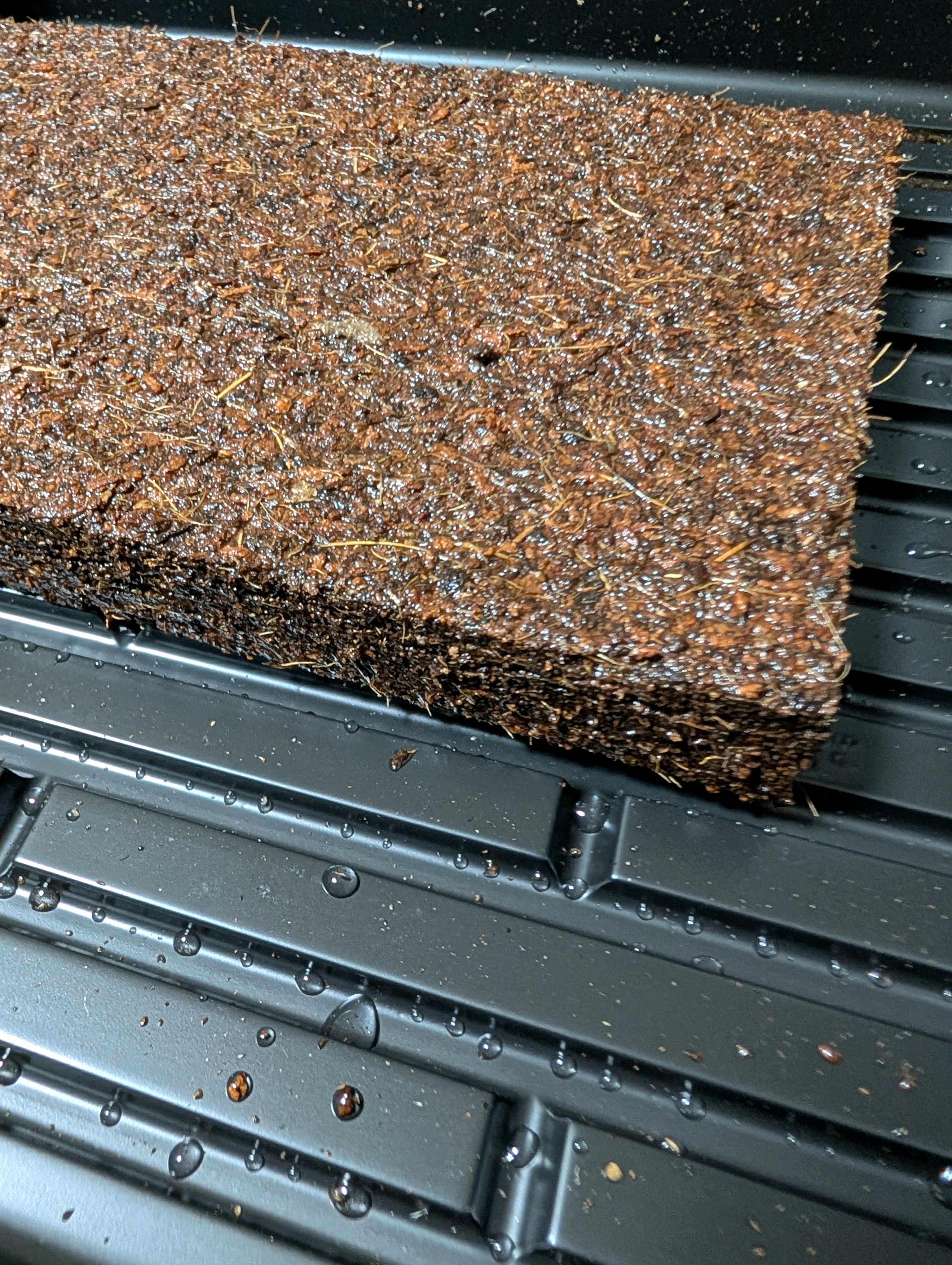 厚さ約5mmのピートバンは吸水15分ほどで三倍ほどの厚みになりました