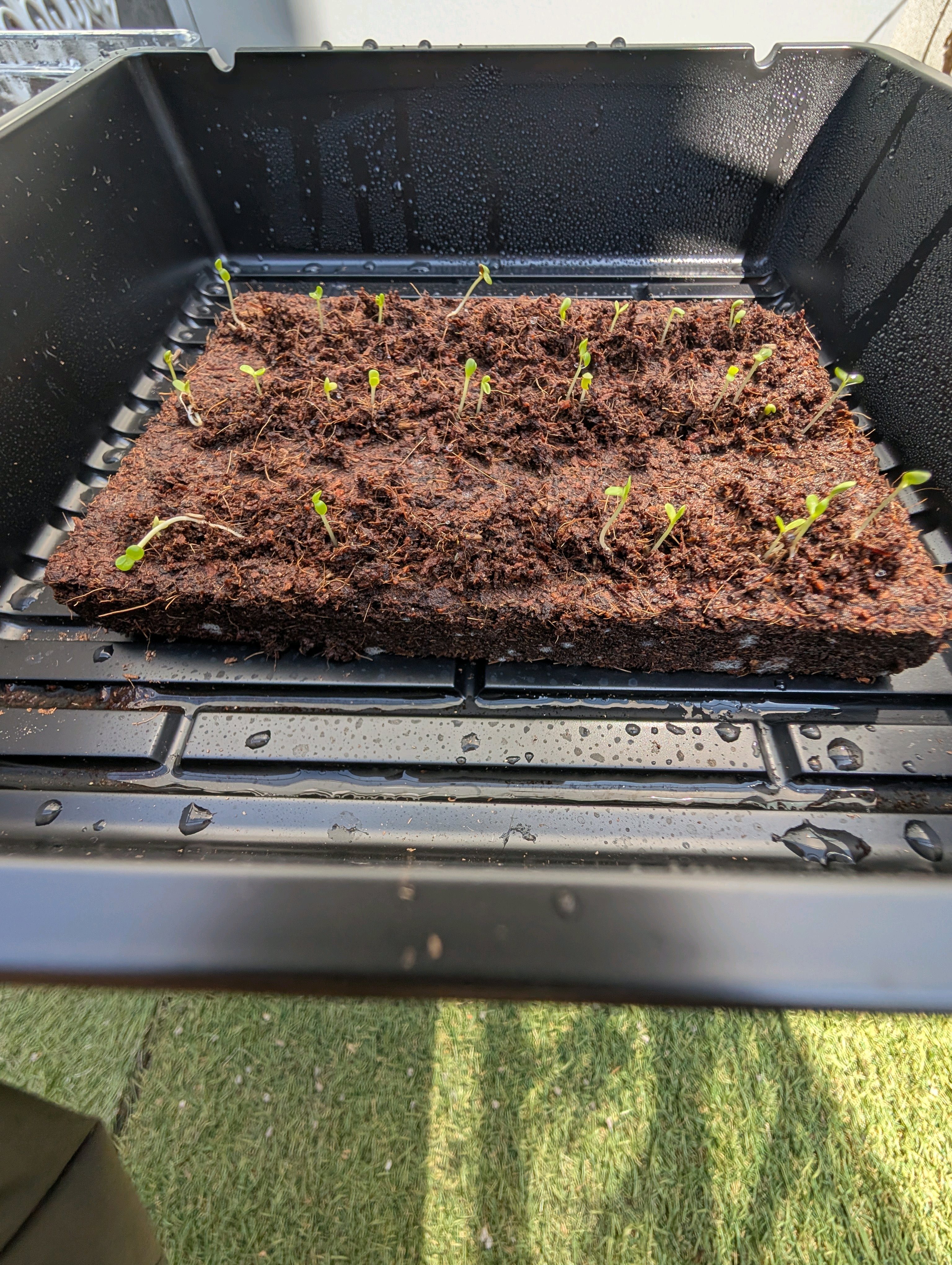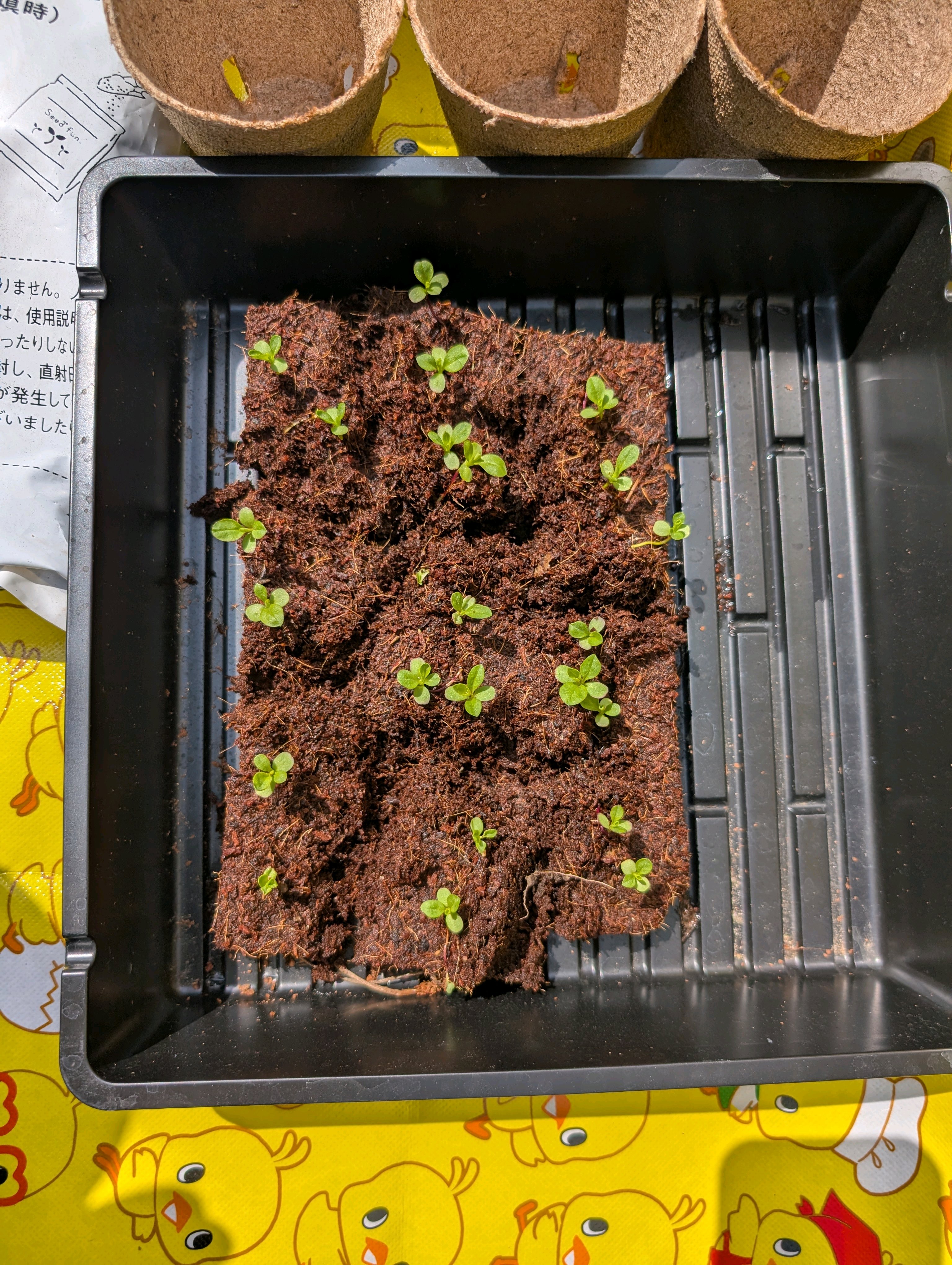 まずざっくりとピートバンを割って根っこを傷つけないように移そうと思います(ここは説明書にあるように芽出し苗を引き抜いて植え替えるというのとは変えました)(⁎ᴗ͈ˬᴗ͈⁎)