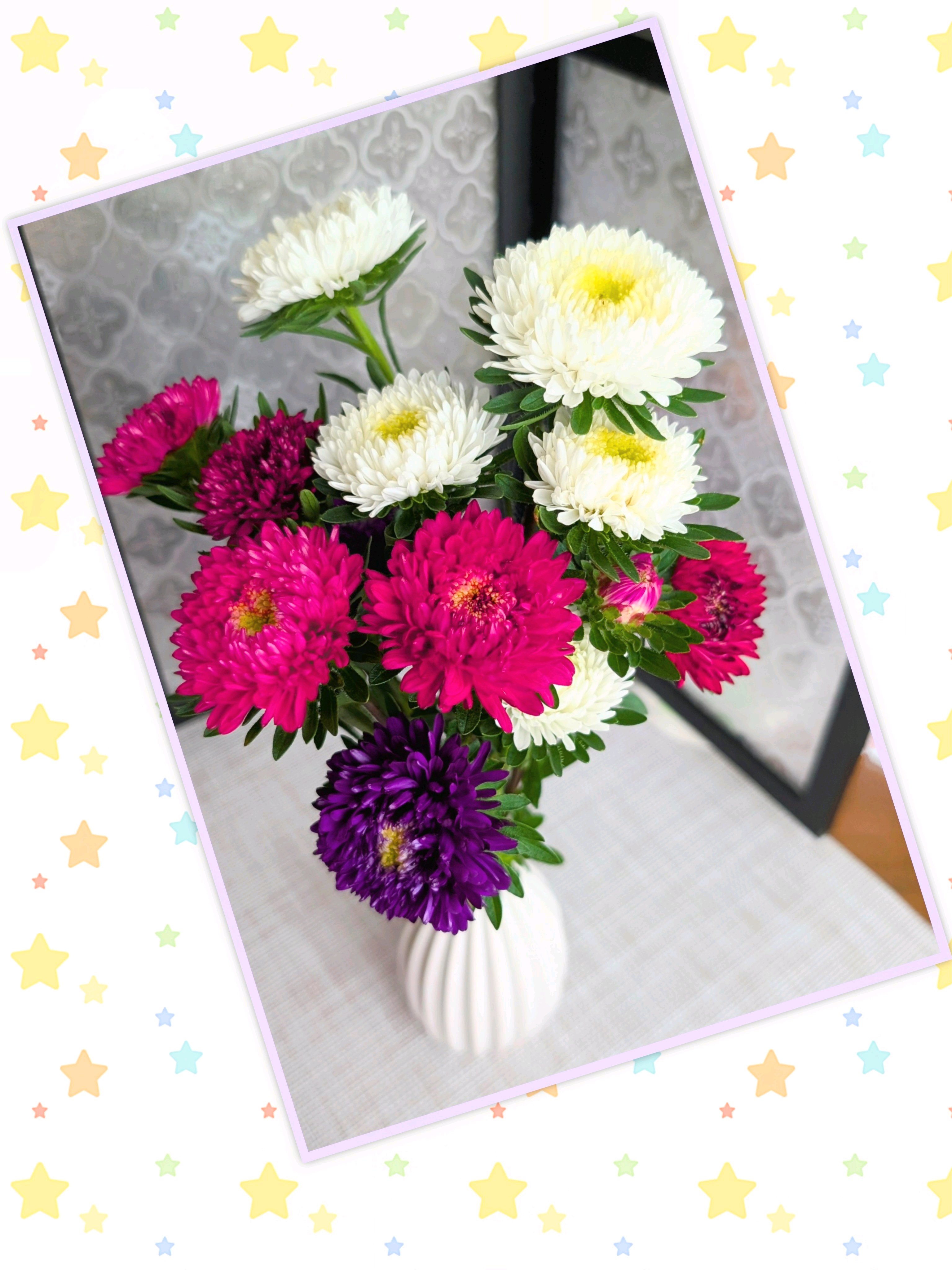 直径7cmの大きなアスターを御先祖様に見ていただけるように育てます(*ˊᗜˋ*)/✨