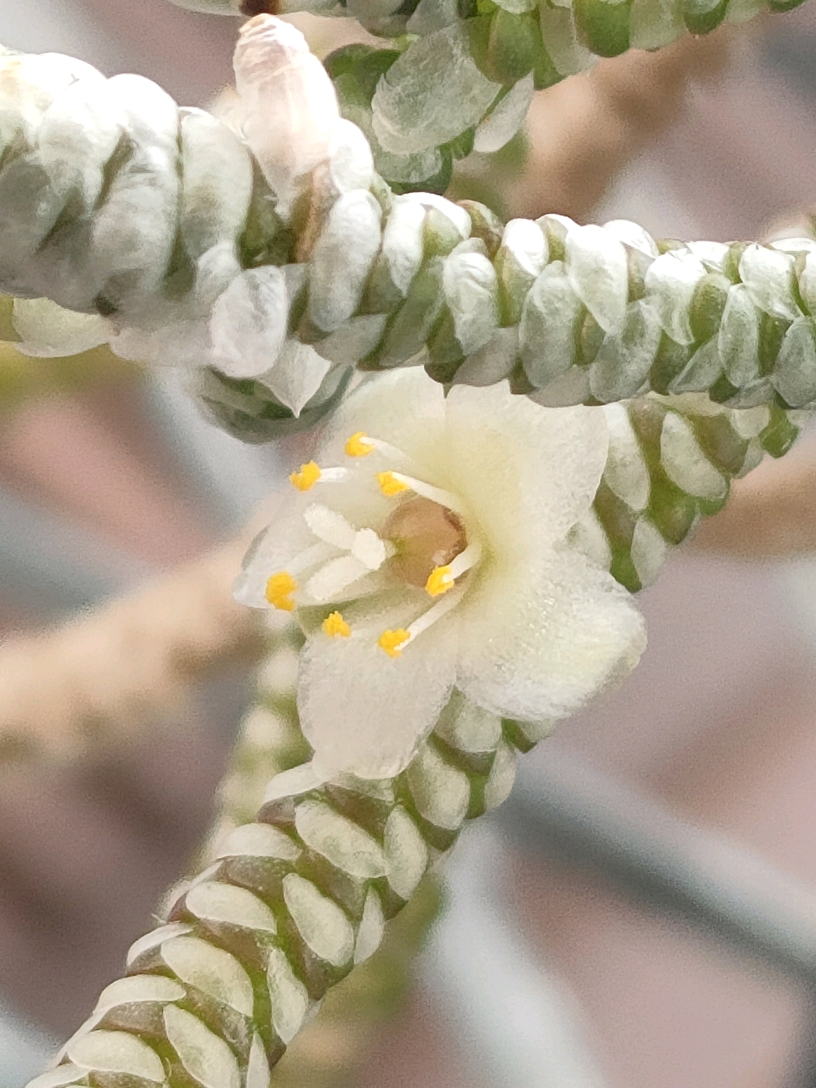 クイナリアは上部の面積が広い芋のような塊根から、枝分かれしない短めのシュート(?)を多数生やすのが一般的です。これは全く違う。