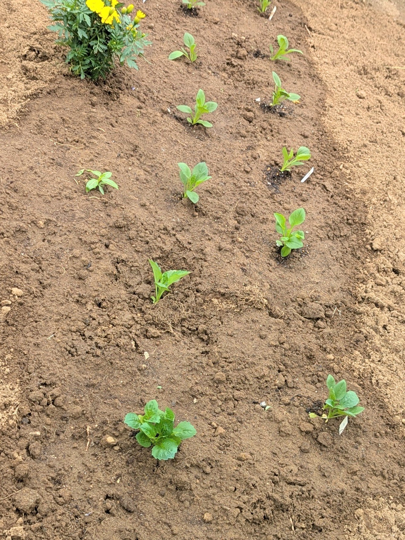発芽は80本くらいでしたので、ジフィーポット以外の苗はボランティアで参加している花壇などに植えさせて貰いました