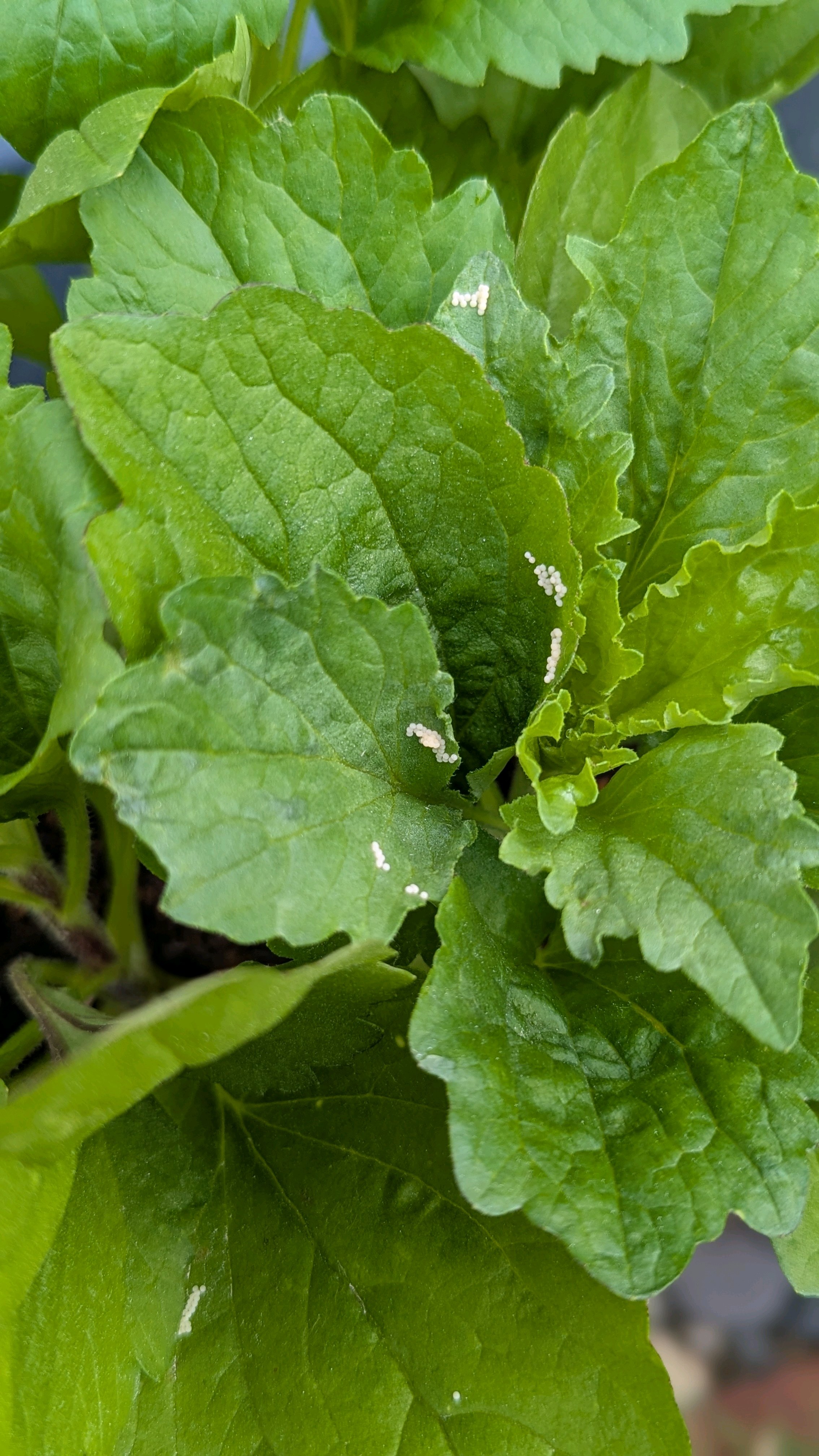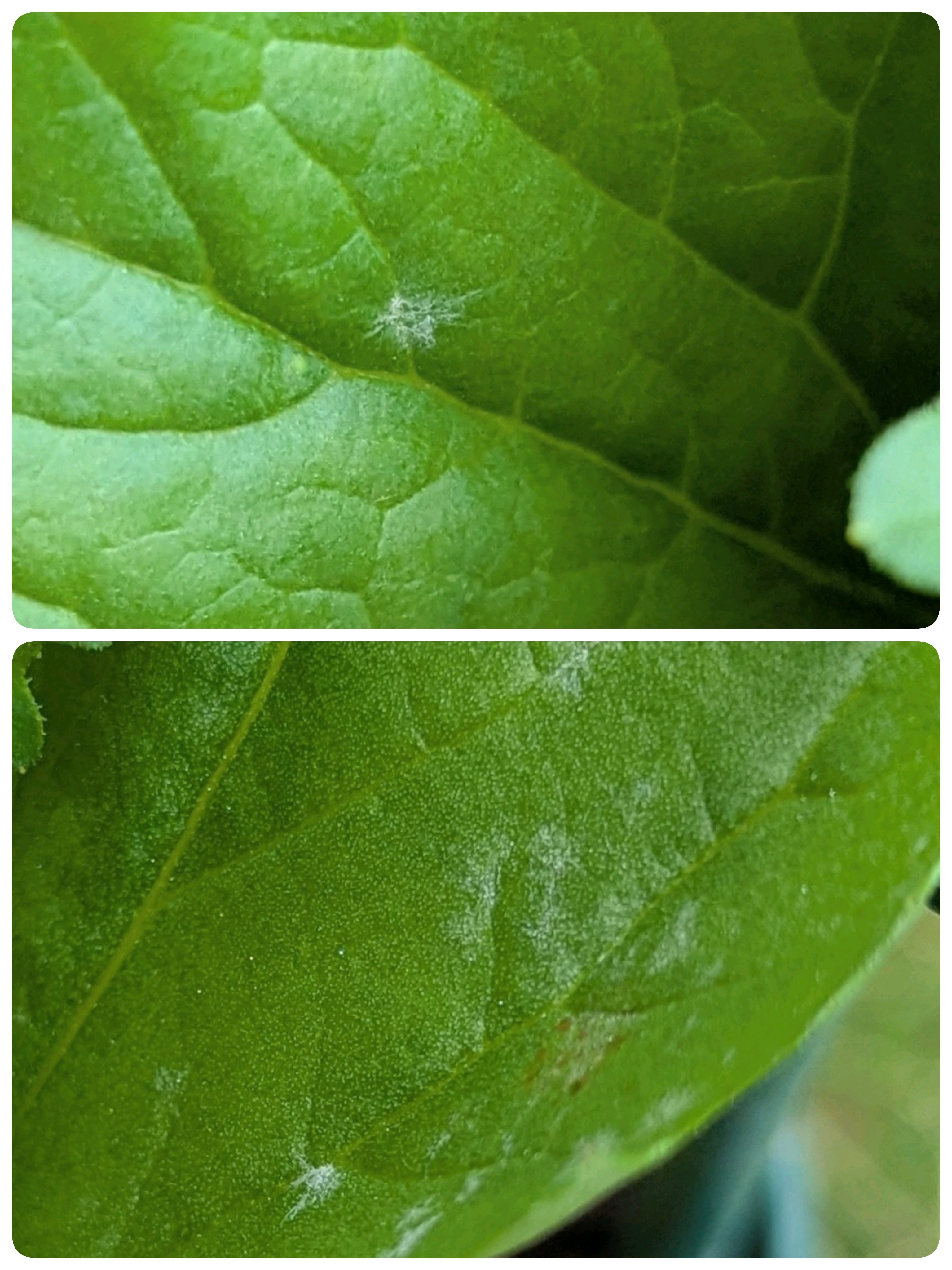 今朝液肥をあげようとしたら葉っぱに白いツブツブ発見👁️🗨️