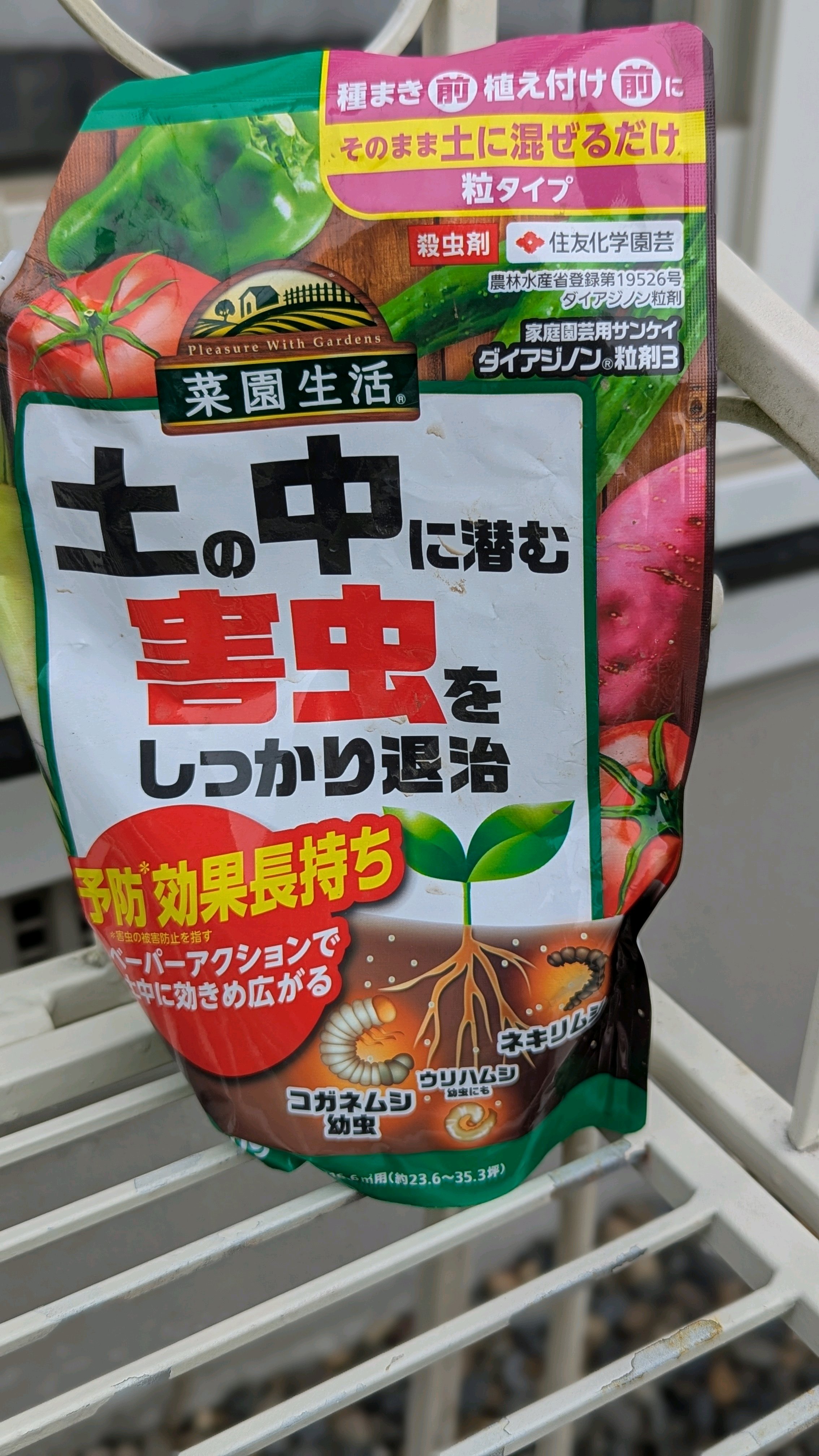 卵は全て取り上げられなかったので、株元に〝ダイアジノン粒剤3〟を撒いておきました