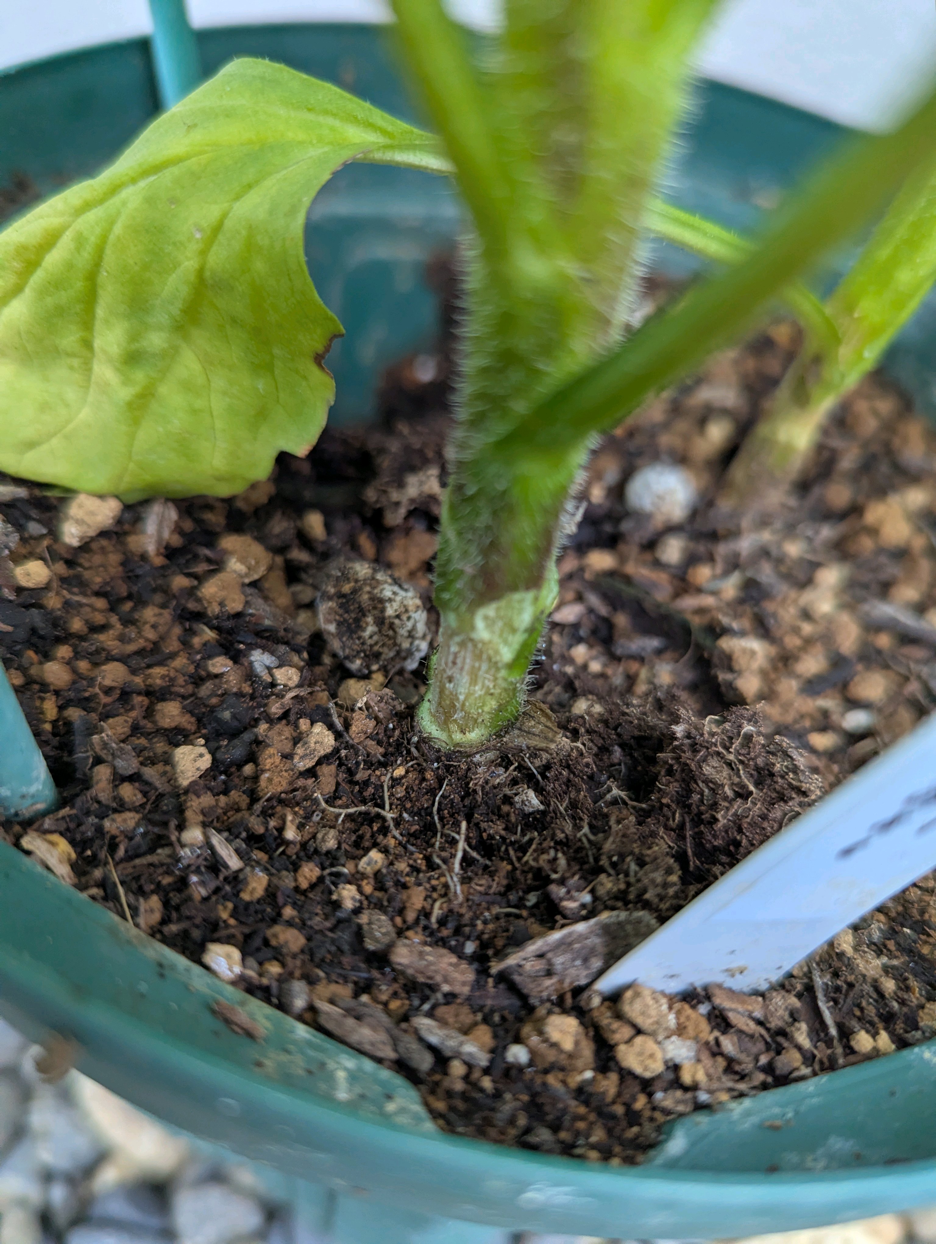 先日1本枯れてしまった鉢…気になって見てみたら、残っている株の根元に“かじられた”ような形跡が🪴