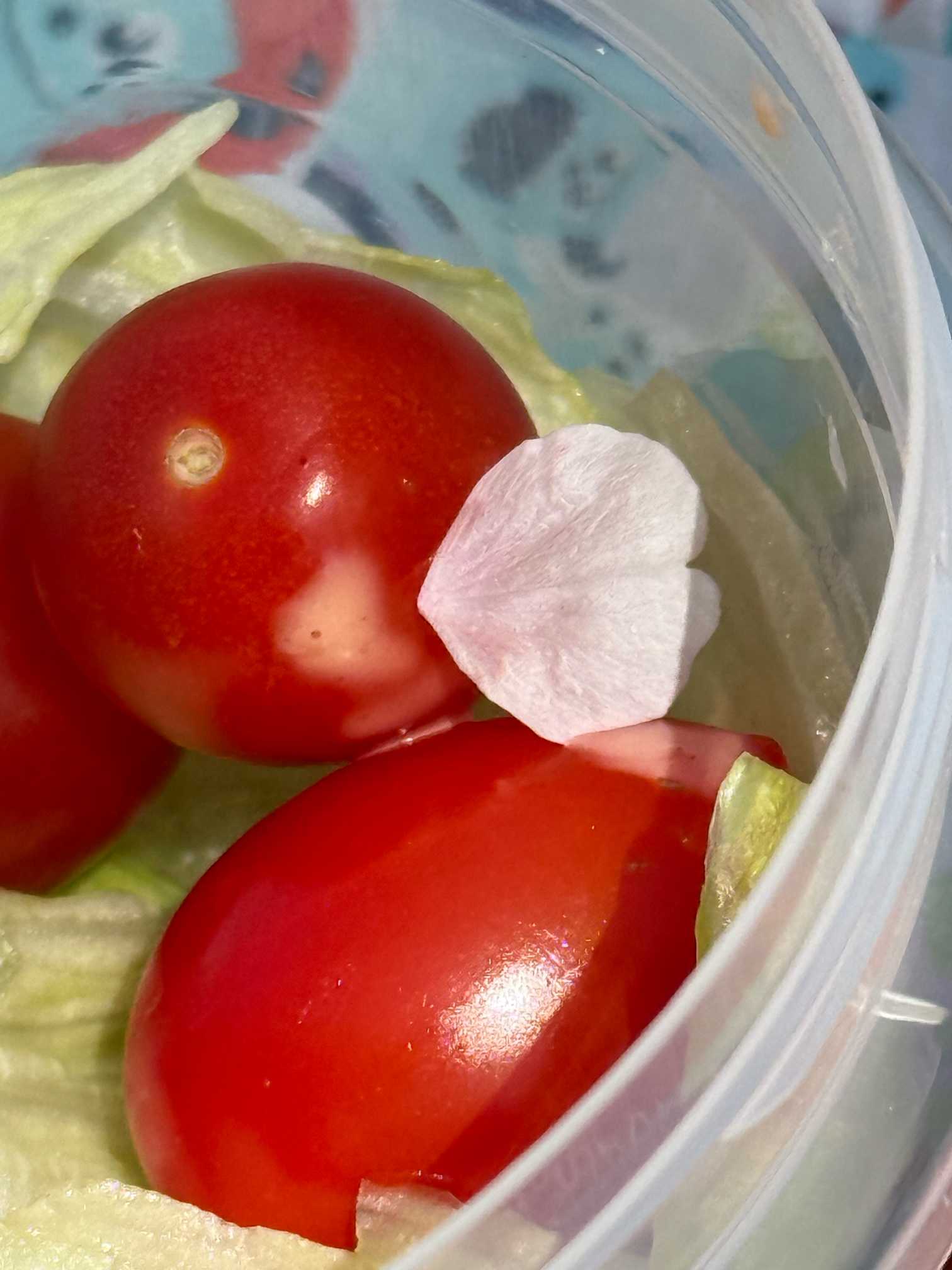 あれっサラダ🥗の上に桜🌸の花びら落ちて来ました