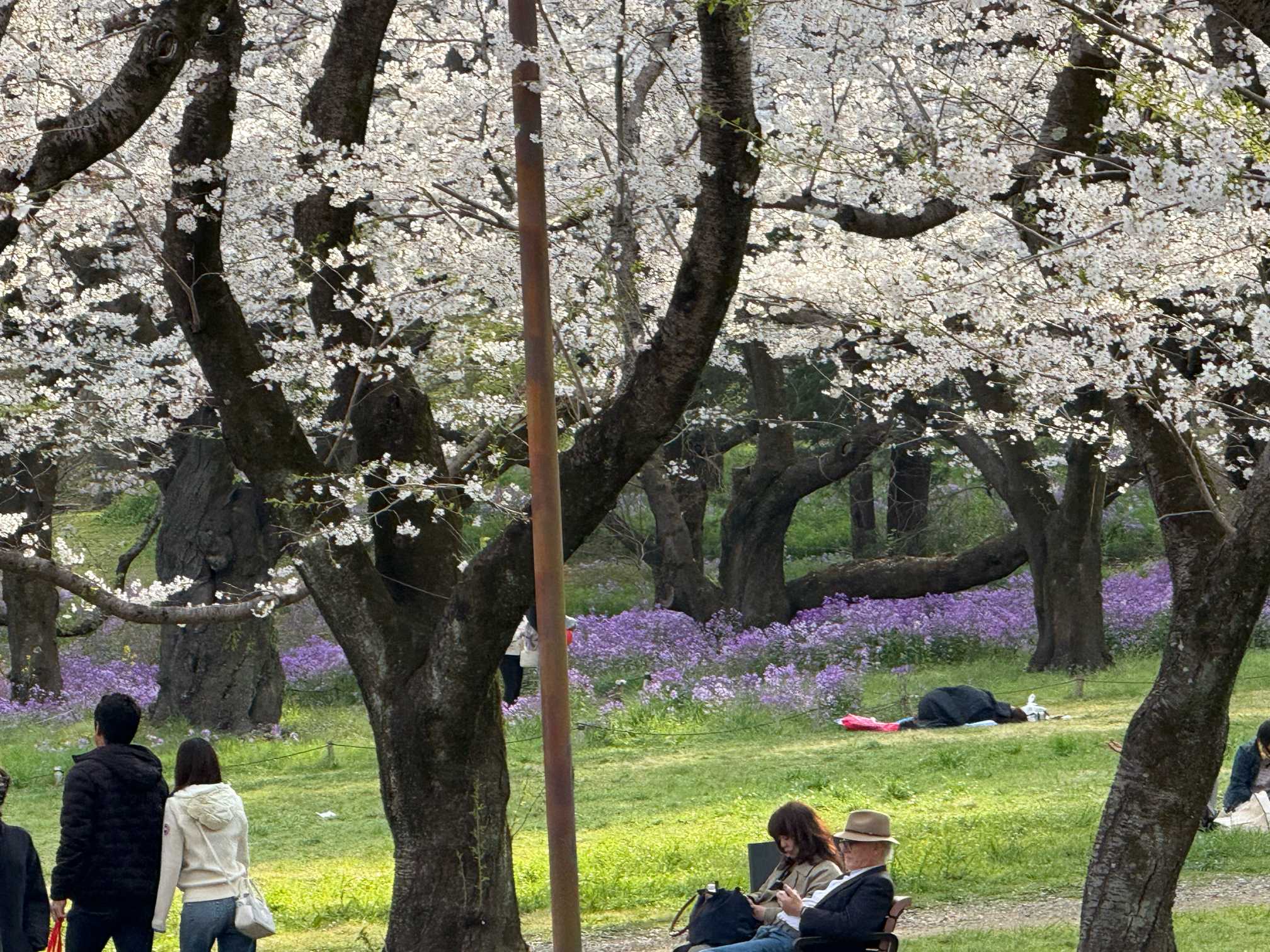 陽光桜とソメイヨシノの競演