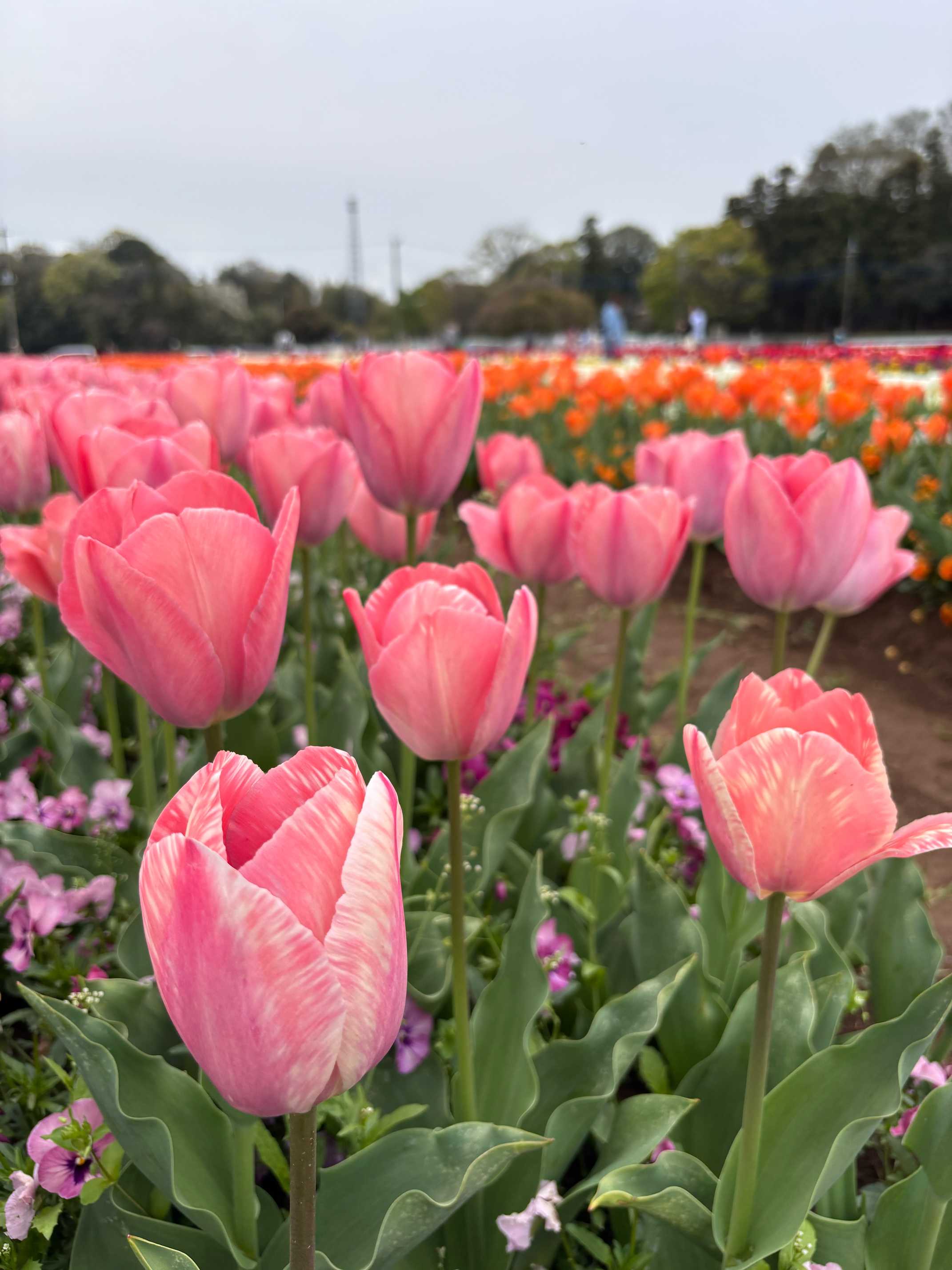 チューリップ🌷とチューリップ🌷の間に同じ系統の色のパンジーが植えてありました それが又見事で全体的に見るととっても素敵💓😊💕