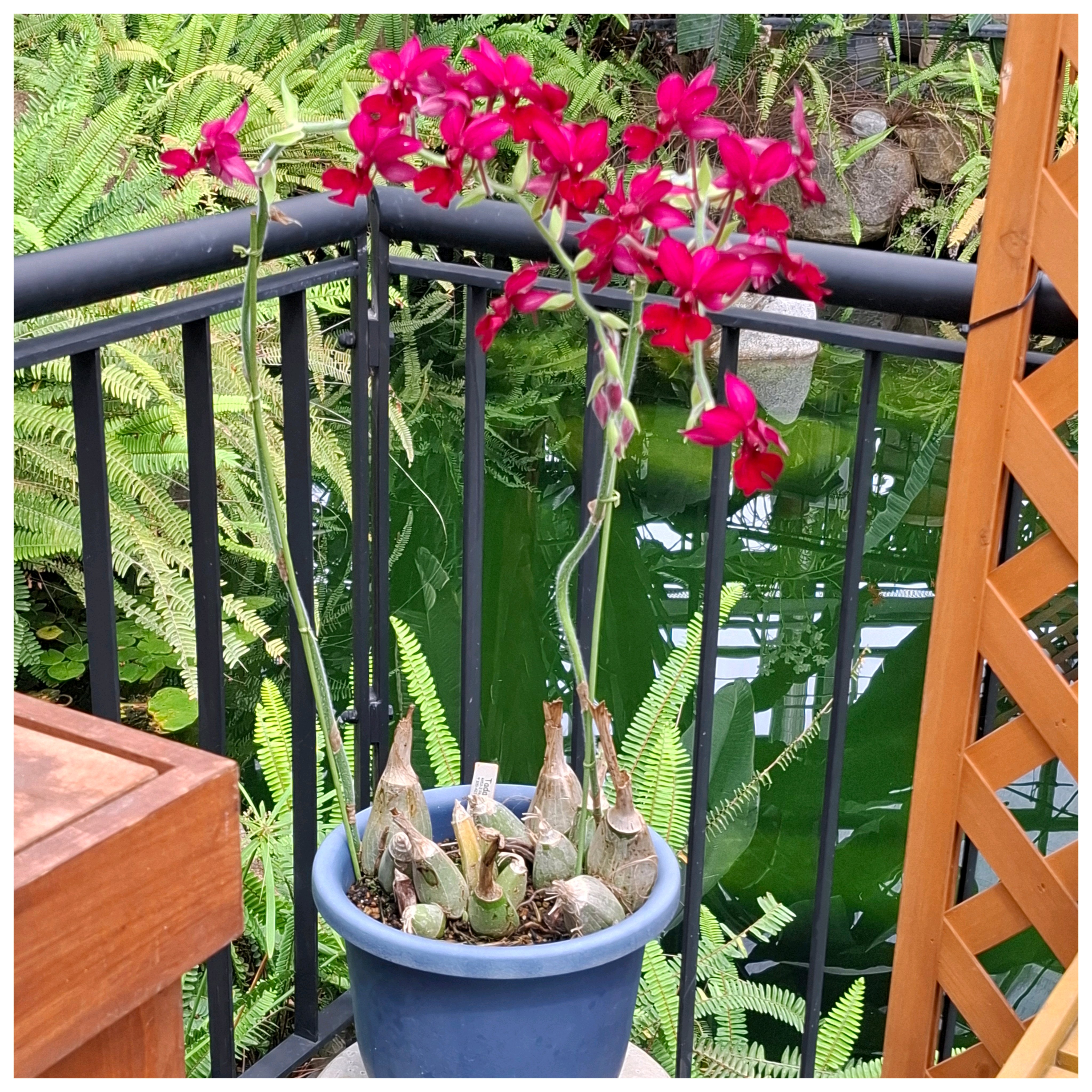 1枚目の紫のランは空気中? 鉢なし?😳