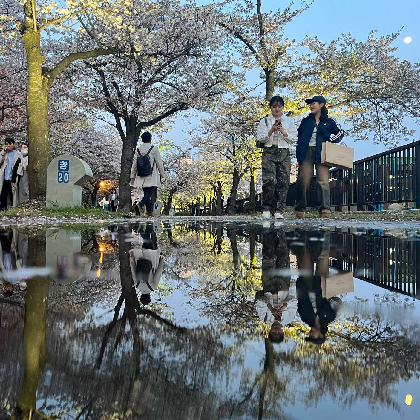 夜桜🌸の水鏡、最高⤴️⤴️ですね〜😍