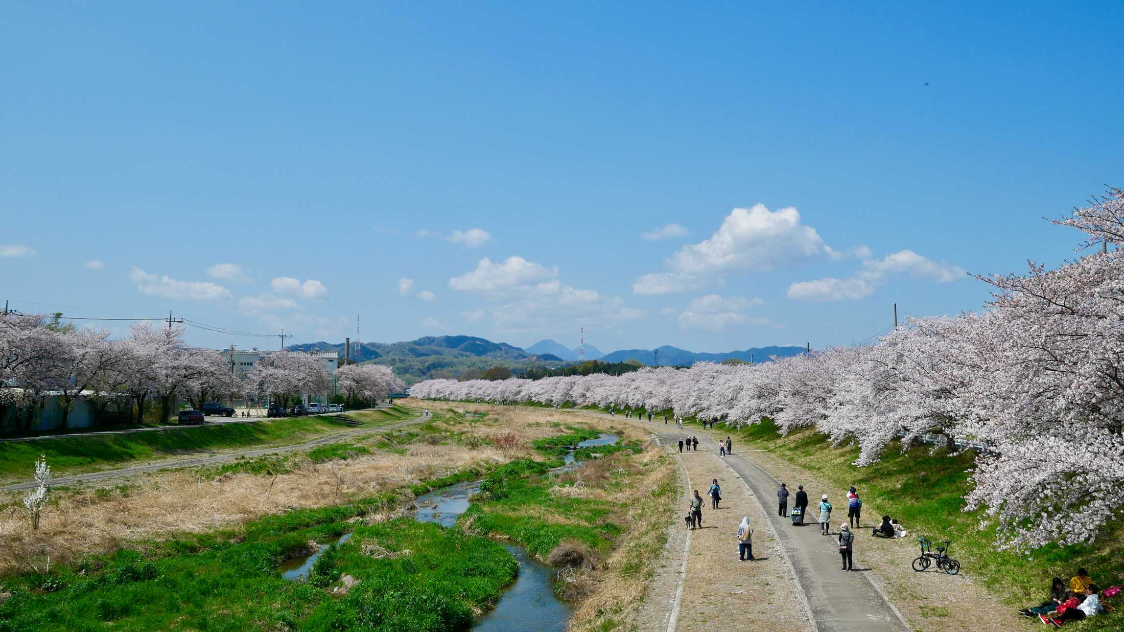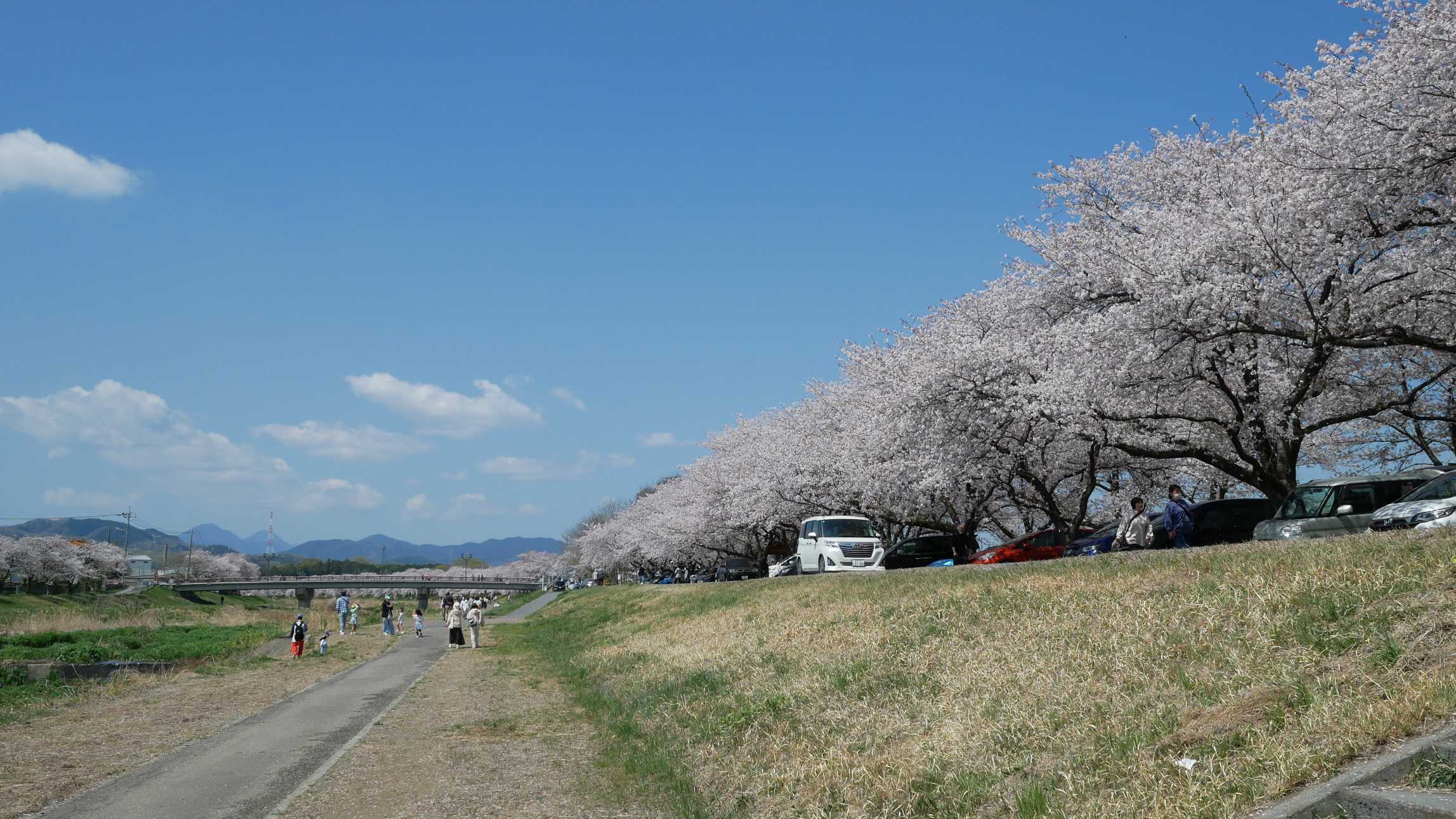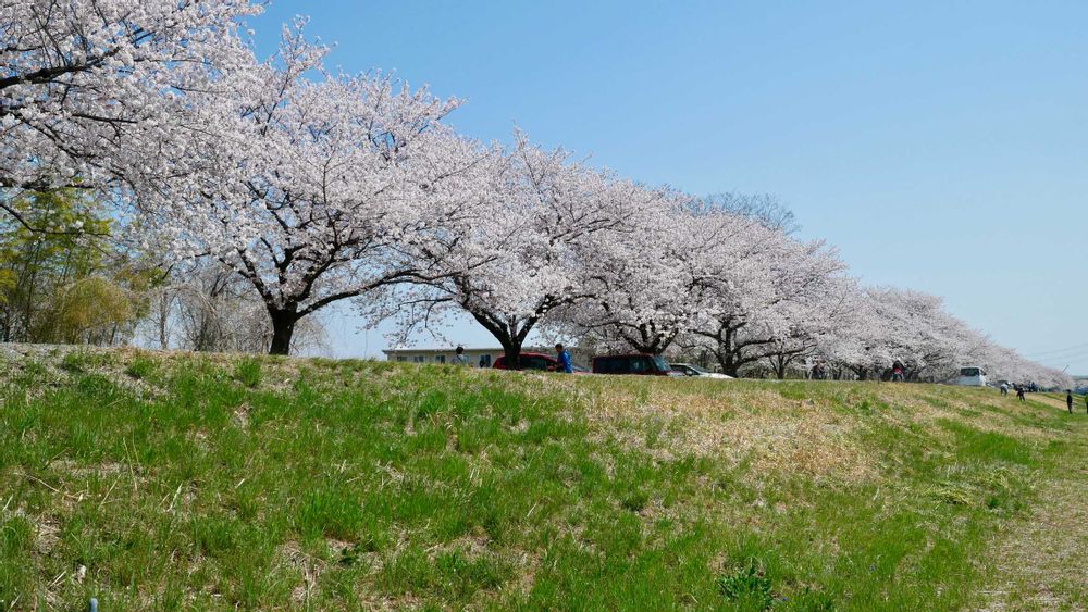 本庄児玉ICから車で15分程度の小山川の河畔に繋がる 桜並木は、約1100本有ると言う正真正銘の千本桜🌸 満開を見て来ました🤗🤗