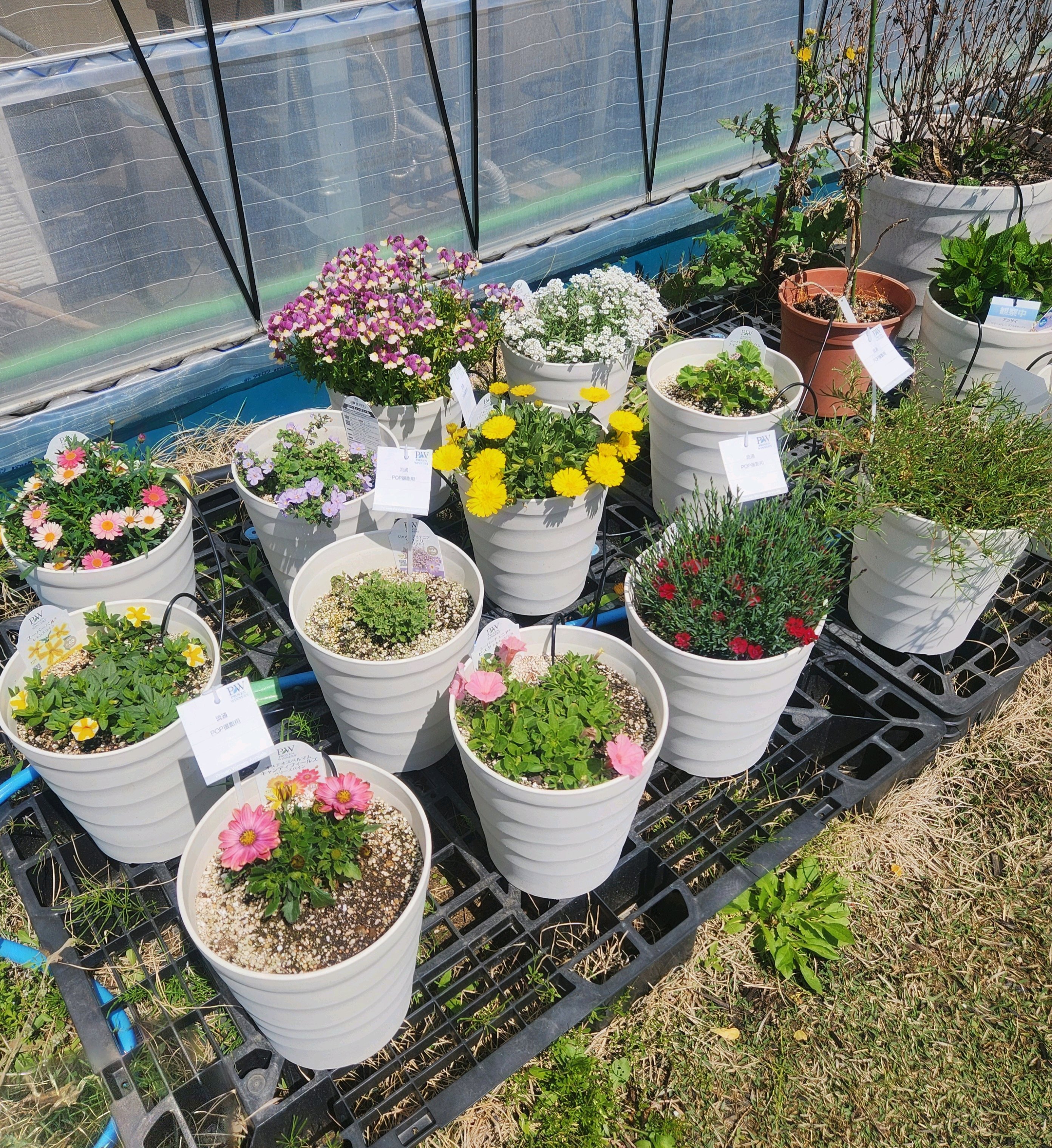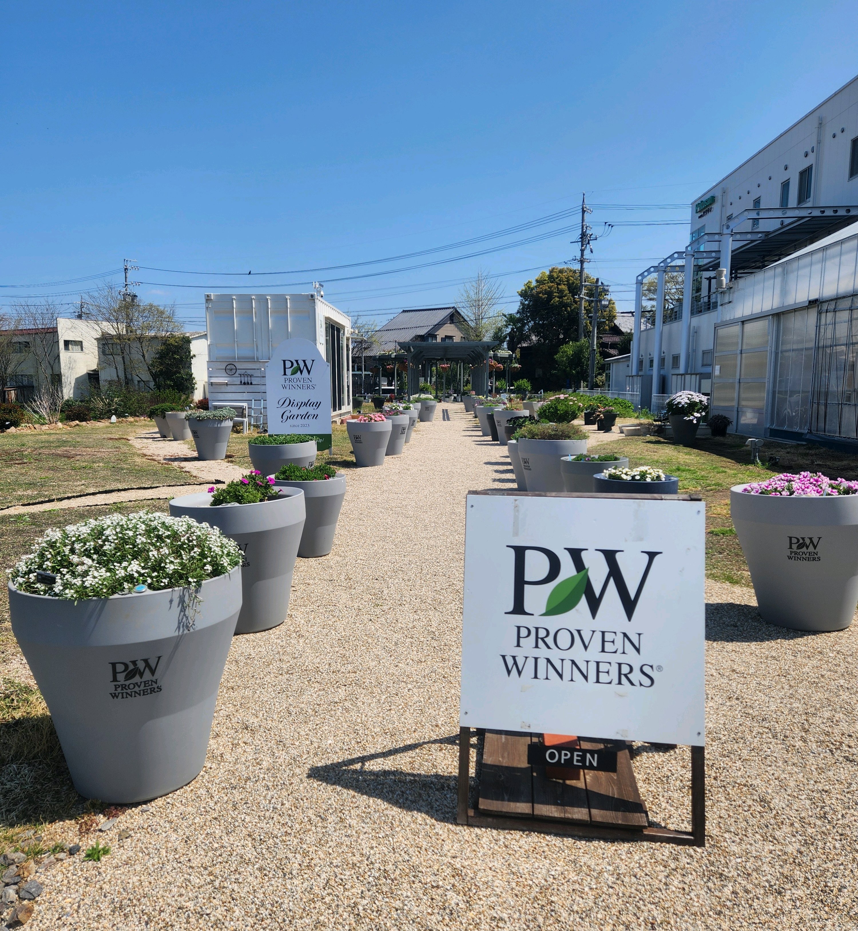 PWガーデンストア春の苗がいっぱいです。 ふPWディスプレイガーデンも春の装いでした。 …敷地を拡張中のようでした。