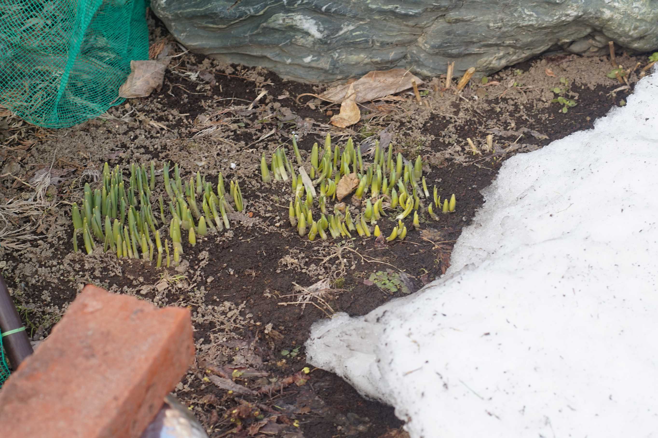 まず先に出てきた水仙はもう雪の下で育ってこんな状態…水仙は強いし株を小さくしてもすぐ増えるし生命力がすごい👏